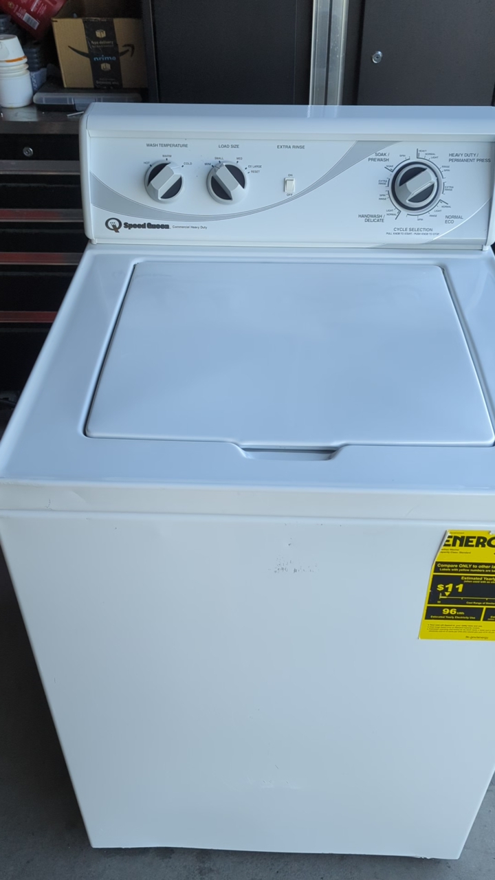 PayPalSpeed Queen washing machine with mechanical timer and selectable load size. Build date of Nov 2017 according to the serial number. Runs perfect. Can share videos of it running through a cycle. Has a couple cosmetic dings as shown in pictures.