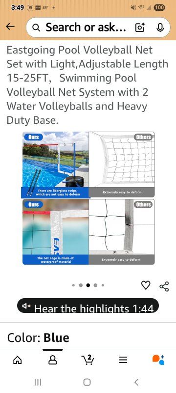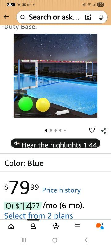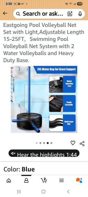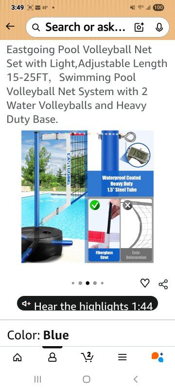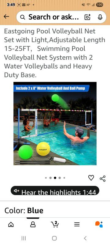 VenmoNew in Box! Volleyball Pool Net Set with Base and Lights