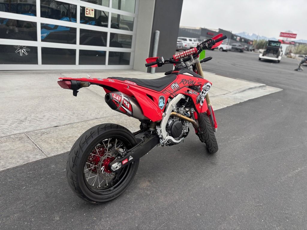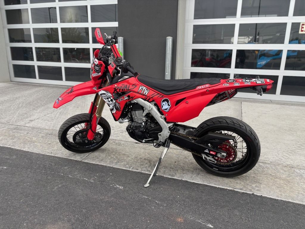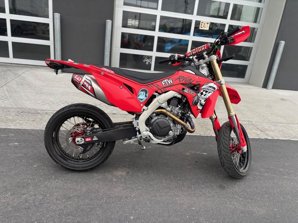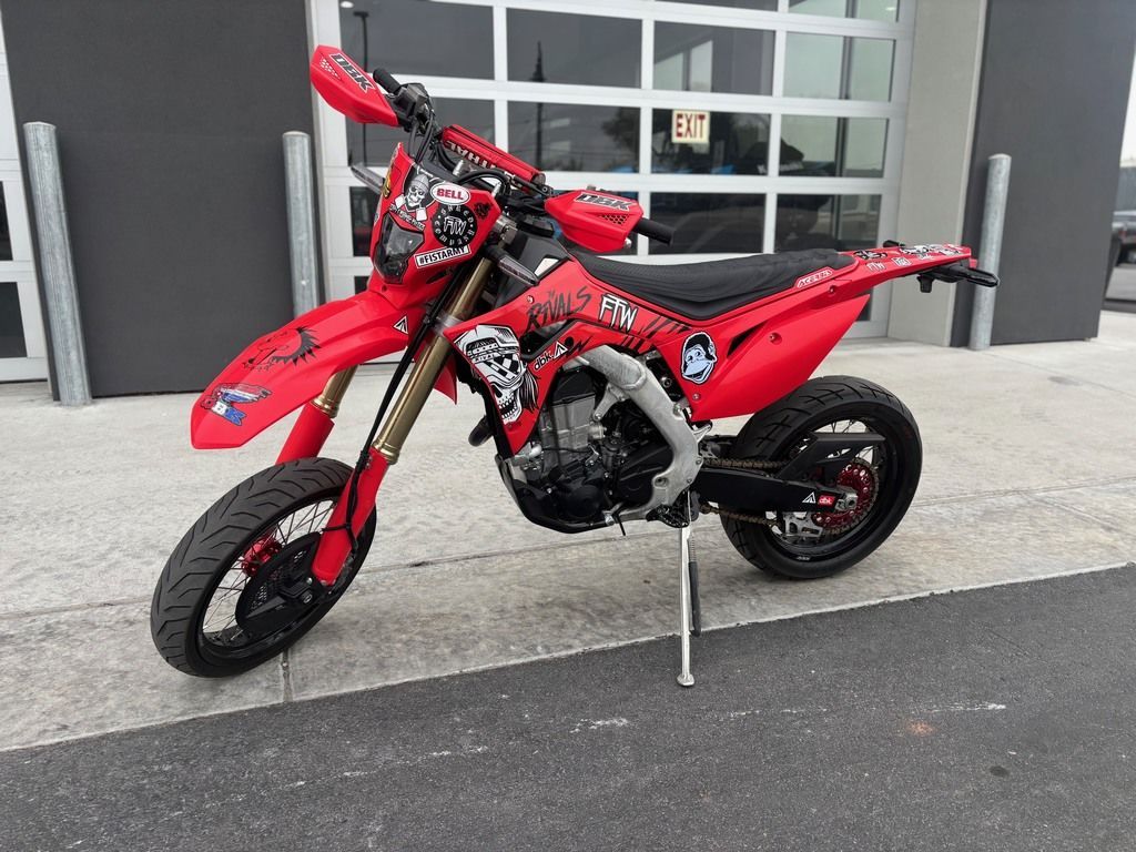 Used 2023 Honda CRF450RL Dirt Bike For Sale In Salt Lake City, UT This Pre-Owned 2023 Honda CRF450RL Dirt Bike is for sale at Karl Malone Powersports SLC conveniently located in Salt Lake City, Utah. This model comes equipped with Supermoto wheels and tires plus a full system Yoshimura exhaust! Our knowledgeable team is eager to assist you, so don’t hesitate to contact us today to schedule an appointment. If this isn't the exact Honda Dirt Bike you're looking for don't hesitate to go back and revise your search. We're sure to have the perfect Dirt Bike for you in our showroom in Utah. We invite you to visit us at Utah’s premier Honda dealer for new and pre-owned Dirt Bikes for sale. Let us help you find the ideal Dirt Bike to take home today! Karl Malone Powersports SLC Address: 1379 W 3300 S, Salt Lake City, UT 84119 Phone: (801) 972-8725 2023 Honda CRF450RL RIDE IT ALL Building a great dual-sport bike has to be one of the toughest jobs in motorcycling, but also one of the most rewarding. And that’s why we’re so proud of our Honda CRF450RL. When it comes to versatility and features, it’s way better than just a motocrosser with a license plate. And when it comes to off-road riding, it offers stellar performance where others compromise. Why is this bike so good? One reason is because we start with our CRF450X, with its six-speed transmission and excellent chassis geometry. And it’s not what we’ve added, but what we haven’t—which is how we’ve kept the CRF450RL light and nimble. What you get is a true dirt bike that can handle a wide range of terrain, that’s built for long-term reliability, and that lets you ride just about any trail or terrain a motorcycle can handle—including pavement, which makes finding fuel (or lunch) a lot easier. So, ditch the pickup or the trailer: discover the world on a Honda CRF450RL. Features may include: VERSATILITY FULLY STREET LEGAL & OFF-ROAD CAPABLE The CRF450RL is equipped with a catalytic converter and is fully street legal in all 50 states—and off-road capable just about anywhere on the planet. That means you can ride it wherever it’s legal to operate a motor vehicle—in state and national parks, on the road, on public lands. Plus, you don’t need to haul your bike to the trailhead in a truck or on a trailer. CONVENIENCE ELECTRIC START An electric start system ensures trouble-free starting in all conditions. The electric starter also drives the clutch side of the crankshaft to provide superior lubrication to starter gears while producing a narrow engine with a short, strong crank. PERFORMANCE 450cc UNICAM® ENGINE The CRF450RL’s Unicam® cylinder-head combines the best of single- and double-overhead-cam designs, and shares its DNA with our championship-winning CRF450R. The configuration saves weight compared to a dual-overhead-camshaft motor, and the camshaft sits lower in the head for a more compact engine and a lower center of gravi