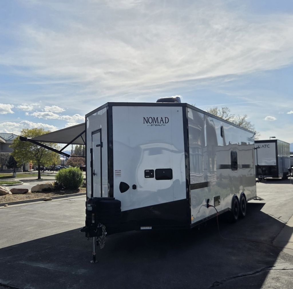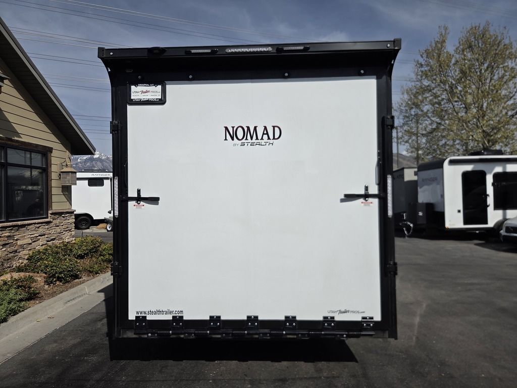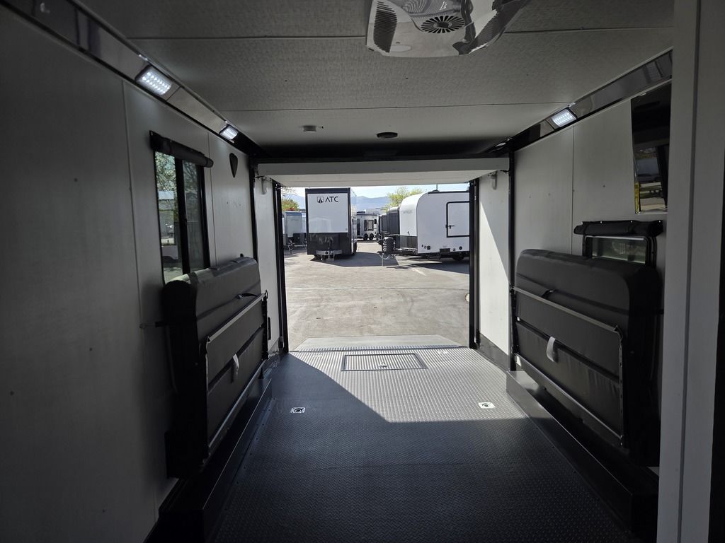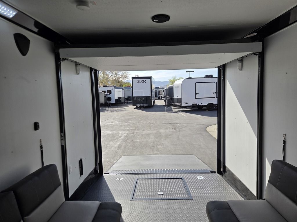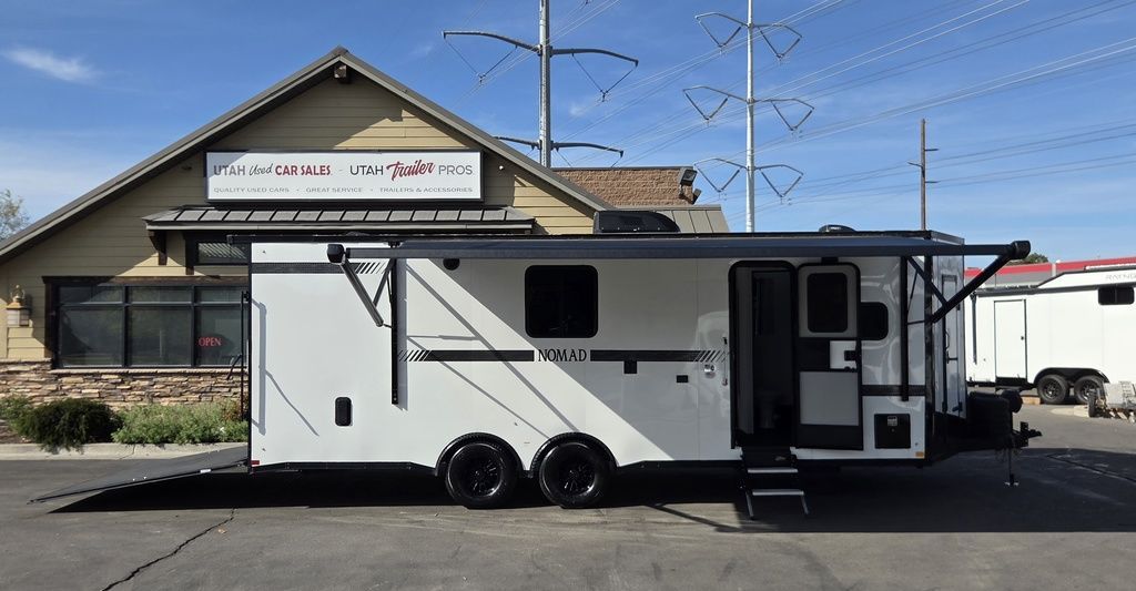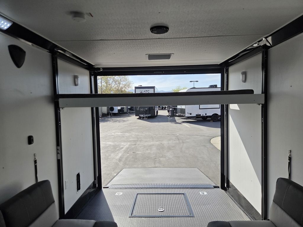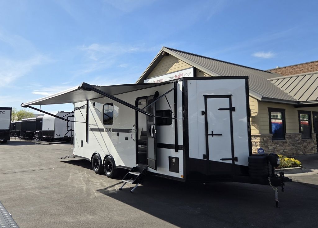 LIMITED TIME $572 A MONTH WITH ZERO DOWN WITH OUR SPECIAL LOCAL CREDIT UNION PARTNER!!! NO PRE-PAYMENT PENALTIES!!! !! NEW NOMAD 24FK MODEL!!! WILL FIT ANY STOCK SIDE BY SIDE UTV!!! 12,000# GVWR/6k AXLES!!! FULLY INSULATED!!! HEATING AND A/C!!! STEREO!!! 7FT-6" Interior Height/ 36" Wedge Front 2x6 Tube Steel Main Rails 16" O/C Floor Tube Crossmembers 16" O/C Steel Tube Wall Studs 24" O/C Tube Steel Roof Bows 18" Extended Triple Tube A-Frame Lippert Torsion Axles w/32 Deg Down Start Angle 6000# Axles w/ST235/80R16 Tires (TA4) 40" Spread Axles Electric Brakes 2-5/16 Adjustable A-Frame Coupler 5000# Electric A-Frame Tongue Jack 4000# Rear Cableless Ramp Door w/Steel Flap (2) Roof Vent in Living/Garage Area (1) Prep & Wired for A/C - Main A/C only 12V Roof Vent in Bathroom Painted Tongue/Rear Sill Black (1) Pair Rear Stab Jacks Rear Flare w/(2) 12V Loading Lights 48" Beavertail ****PLUMBING****46 Gallon Fresh Water Tank (2) 43 Gallon Waste Holding Tank Sewer Hose Storage Compartment Double 20# LP Bottle w/Cover on A-Frame 6 Gallon DSI LP Gas/Electric Water Heater 12V Water Pump City/Gravity Water Fill Hook Up Outside Shower and RV Toilet Bathroom Mirror & Robe Hooks 24x36 Shower w/Shower Curtain & Surround Drop-In Cook Top Large Single Bowl Kitchen Sink Tank and Battery Monitor Panel ****ELECTRICAL****7-Way Electical Plug LED Strip Taillights/Marker Lights 12V Deluxe LED Lighting 45 Amp RV Power Center w/12V Converter 30 Amp Motorbase Plug Detachable Twistlock Power Cord Battery Box Only (Battery not included) 110V GFI Receptacle in Kitchen Area (2) 110V Receptacles in Garage Area Dual USB Ports in Kitchen 6 Cubic Foot Refrigerator Microwave Oven 35K BTU Furnace 110V Exterior GFI Receptacle TV Prep Package - Includes: Coax Cable Outlets - Interior & Exterior Omnidirectional TV Antenna UHF/VHF 110V 4FT LED Cove Lights in Living/Garage Area Smoke, CO, & LP Detector & Fire Extinguisher *INTERIOR*3/4" Drymax Floor & 3/8" Wht Vinyl Walls Ploystyrene Foam Insulation-Walls & Ceiling ATP Rubber Floor Covering White Vinyl Ceiling Liner w/Black Cove Molding Black Kitchen L-Base Cabinet w/Laminate C-Top Black Kitchen L-Overhead Cabinet (4) 5000# Recessed D-Rings Large Front Storage Area w/Shelf (1) Pair Black Aluminum Directional Vents ****ROOF****Seamless Aluminum Flat Top Roof LED Marker Lights Rear Flare w/(2) 12V Loading Lights ***METAL**.080 Screwless Armor Shield Composite Skin STD Colors:Crystal White, Black, Matte Black Windstar Silver, Victory Red, Pewter, Charcoal 3" Heavy Duty Flat Top Trim 3" Flat Bottom Trim & 6" Barrier Tape All Black Exterior Trim & ATP Fenders 24" Tall Slanted Diamond Plate Stoneguard 24" Tall Diamond Plate along sides at bottom (1) Pair Black Aluminum Directional Vents *DOORS & WINDOWS****26W x 78H Radius Corner Deluxe RV Door w/Window & Screen Aluminum Door Holdback Double Fold Out RV Step 4000# Rear Cableless Ramp Door w/Steel Flap All Black Zinc Coated Door Hardware 24Wx72H Door w/Barlock in Front Storage 30x15 Window in Kitchen Area 30x30 Window in Living/Garage Area 30x22 Egress Window in Living/Garage Area Window Coverings - In Garage Area (Only) ****FINAL*LED Strip Tailights/Marker Lights 12V Deluxe LED Lightning Black Aluminum Wheels w/Radial Tires & Black Center Caps Recessed Spare Tire Compartment Limited 3 Year Structural Warranty 01-OPT1.952 Platinum Package Includes: Deluxe Stereo Package with: AM/FM/CD/DVD/USB/MP3/WMA Capable Stereo, (4) Hi Output Weatherproof Speakers (2) Interior & (2) Exterior 43" TV w/swivel bracket Rear Hide-A-Screen Solar Port HappiJac Bed Lift System: (Includes (1) Queen Mattress Setup) 7SE103718