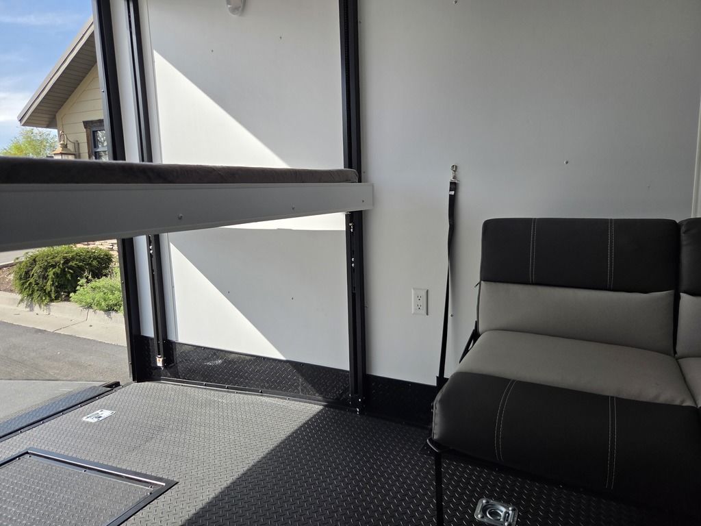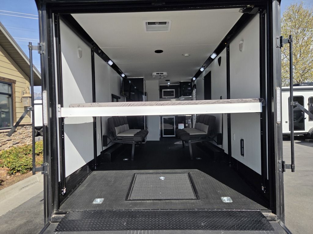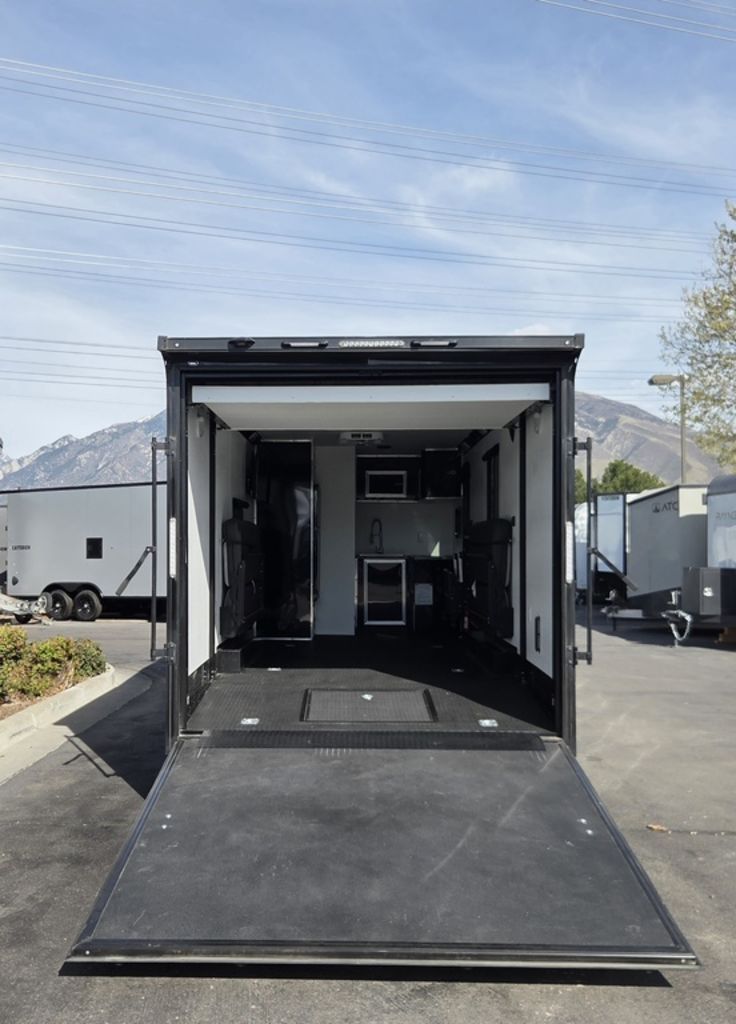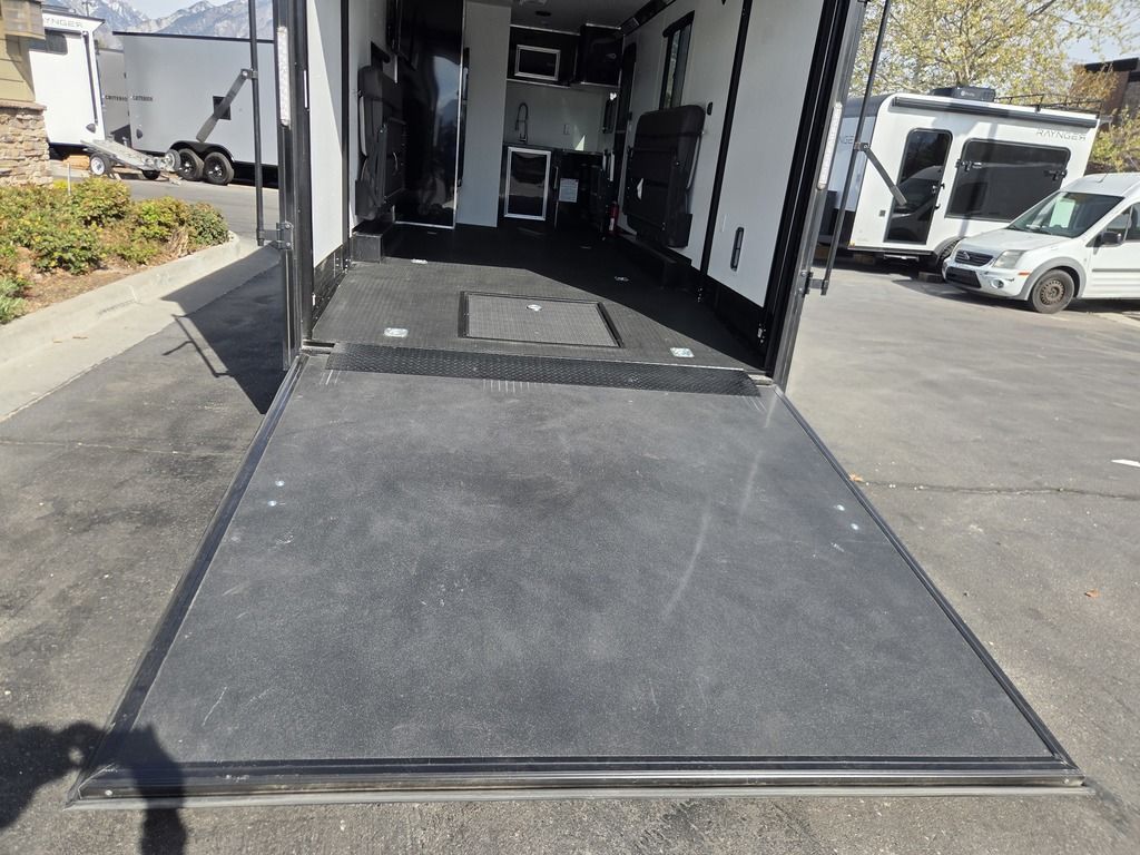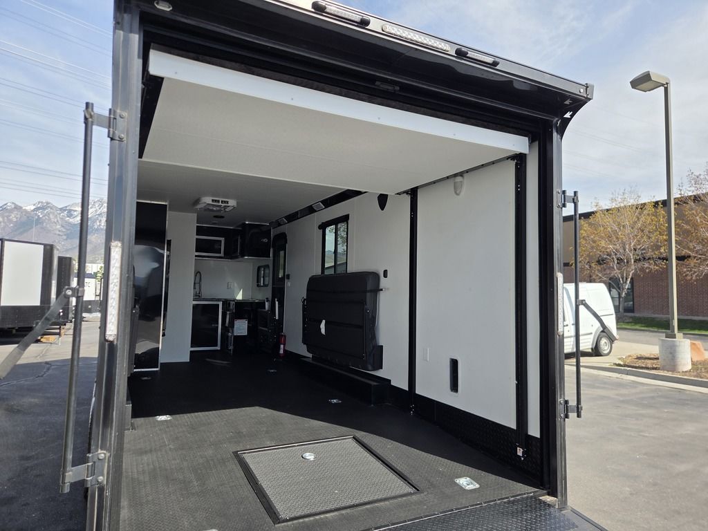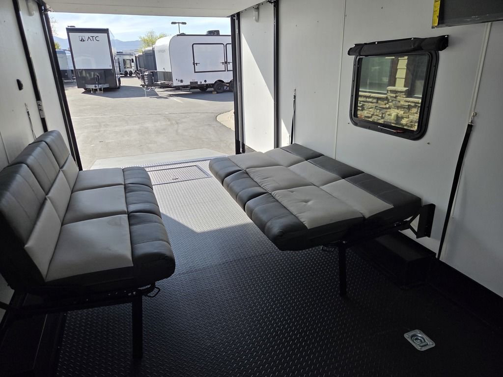 LIMITED TIME $572 A MONTH WITH ZERO DOWN WITH OUR SPECIAL LOCAL CREDIT UNION PARTNER!!! NO PRE-PAYMENT PENALTIES!!! !! NEW NOMAD 24FK MODEL!!! WILL FIT ANY STOCK SIDE BY SIDE UTV!!! 12,000# GVWR/6k AXLES!!! FULLY INSULATED!!! HEATING AND A/C!!! STEREO!!! 7FT-6" Interior Height/ 36" Wedge Front 2x6 Tube Steel Main Rails 16" O/C Floor Tube Crossmembers 16" O/C Steel Tube Wall Studs 24" O/C Tube Steel Roof Bows 18" Extended Triple Tube A-Frame Lippert Torsion Axles w/32 Deg Down Start Angle 6000# Axles w/ST235/80R16 Tires (TA4) 40" Spread Axles Electric Brakes 2-5/16 Adjustable A-Frame Coupler 5000# Electric A-Frame Tongue Jack 4000# Rear Cableless Ramp Door w/Steel Flap (2) Roof Vent in Living/Garage Area (1) Prep & Wired for A/C - Main A/C only 12V Roof Vent in Bathroom Painted Tongue/Rear Sill Black (1) Pair Rear Stab Jacks Rear Flare w/(2) 12V Loading Lights 48" Beavertail ****PLUMBING****46 Gallon Fresh Water Tank (2) 43 Gallon Waste Holding Tank Sewer Hose Storage Compartment Double 20# LP Bottle w/Cover on A-Frame 6 Gallon DSI LP Gas/Electric Water Heater 12V Water Pump City/Gravity Water Fill Hook Up Outside Shower and RV Toilet Bathroom Mirror & Robe Hooks 24x36 Shower w/Shower Curtain & Surround Drop-In Cook Top Large Single Bowl Kitchen Sink Tank and Battery Monitor Panel ****ELECTRICAL****7-Way Electical Plug LED Strip Taillights/Marker Lights 12V Deluxe LED Lighting 45 Amp RV Power Center w/12V Converter 30 Amp Motorbase Plug Detachable Twistlock Power Cord Battery Box Only (Battery not included) 110V GFI Receptacle in Kitchen Area (2) 110V Receptacles in Garage Area Dual USB Ports in Kitchen 6 Cubic Foot Refrigerator Microwave Oven 35K BTU Furnace 110V Exterior GFI Receptacle TV Prep Package - Includes: Coax Cable Outlets - Interior & Exterior Omnidirectional TV Antenna UHF/VHF 110V 4FT LED Cove Lights in Living/Garage Area Smoke, CO, & LP Detector & Fire Extinguisher *INTERIOR*3/4" Drymax Floor & 3/8" Wht Vinyl Walls Ploystyrene Foam Insulation-Walls & Ceiling ATP Rubber Floor Covering White Vinyl Ceiling Liner w/Black Cove Molding Black Kitchen L-Base Cabinet w/Laminate C-Top Black Kitchen L-Overhead Cabinet (4) 5000# Recessed D-Rings Large Front Storage Area w/Shelf (1) Pair Black Aluminum Directional Vents ****ROOF****Seamless Aluminum Flat Top Roof LED Marker Lights Rear Flare w/(2) 12V Loading Lights ***METAL**.080 Screwless Armor Shield Composite Skin STD Colors:Crystal White, Black, Matte Black Windstar Silver, Victory Red, Pewter, Charcoal 3" Heavy Duty Flat Top Trim 3" Flat Bottom Trim & 6" Barrier Tape All Black Exterior Trim & ATP Fenders 24" Tall Slanted Diamond Plate Stoneguard 24" Tall Diamond Plate along sides at bottom (1) Pair Black Aluminum Directional Vents *DOORS & WINDOWS****26W x 78H Radius Corner Deluxe RV Door w/Window & Screen Aluminum Door Holdback Double Fold Out RV Step 4000# Rear Cableless Ramp Door w/Steel Flap All Black Zinc Coated Door Hardware 24Wx72H Door w/Barlock in Front Storage 30x15 Window in Kitchen Area 30x30 Window in Living/Garage Area 30x22 Egress Window in Living/Garage Area Window Coverings - In Garage Area (Only) ****FINAL*LED Strip Tailights/Marker Lights 12V Deluxe LED Lightning Black Aluminum Wheels w/Radial Tires & Black Center Caps Recessed Spare Tire Compartment Limited 3 Year Structural Warranty 01-OPT1.952 Platinum Package Includes: Deluxe Stereo Package with: AM/FM/CD/DVD/USB/MP3/WMA Capable Stereo, (4) Hi Output Weatherproof Speakers (2) Interior & (2) Exterior 43" TV w/swivel bracket Rear Hide-A-Screen Solar Port HappiJac Bed Lift System: (Includes (1) Queen Mattress Setup) 7SE103718