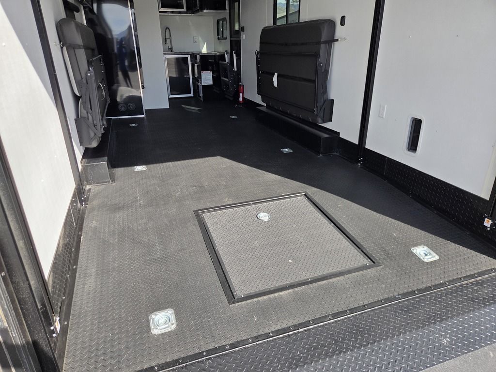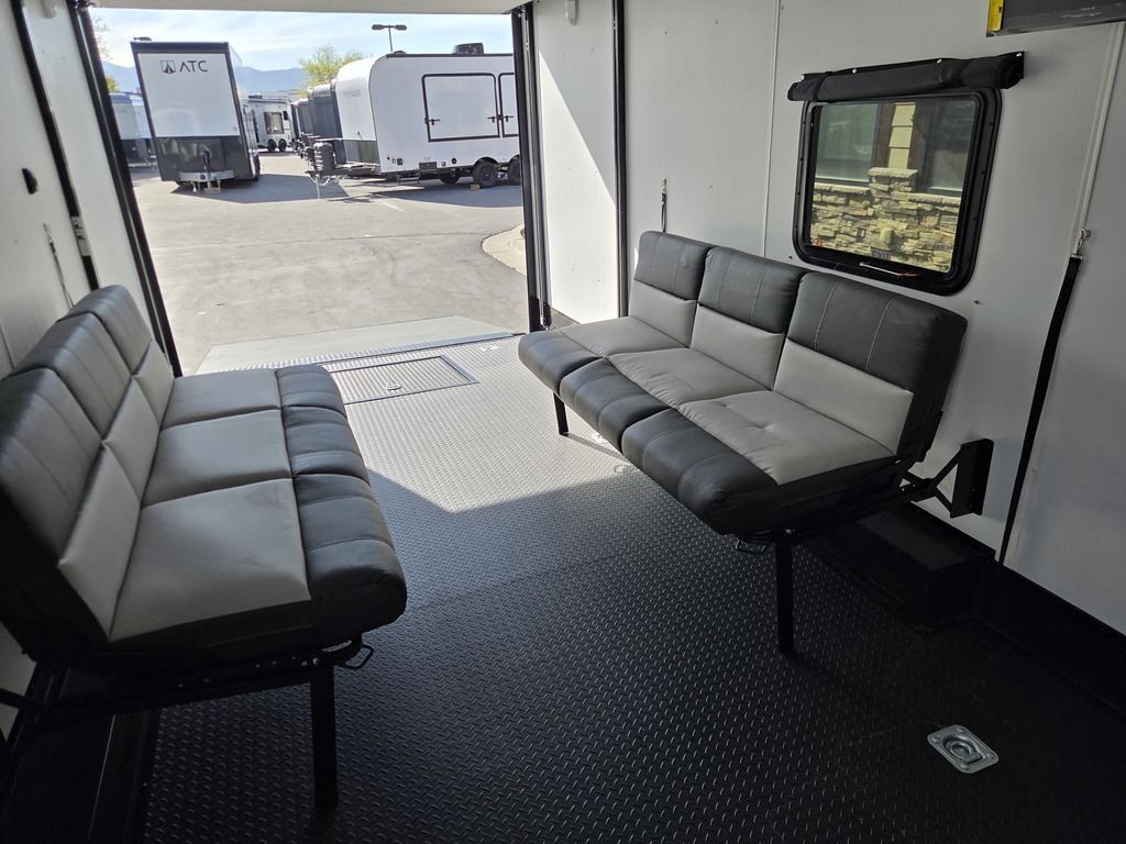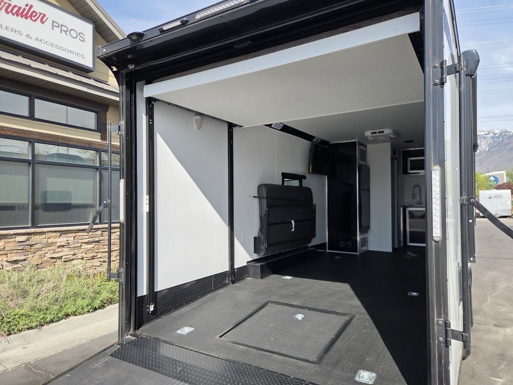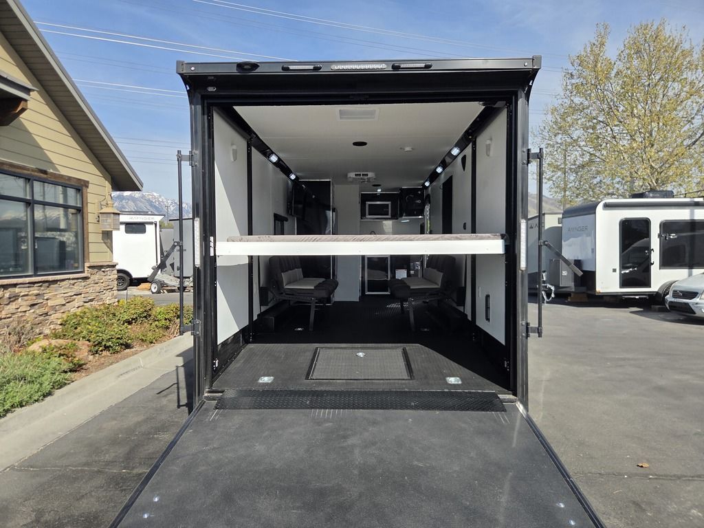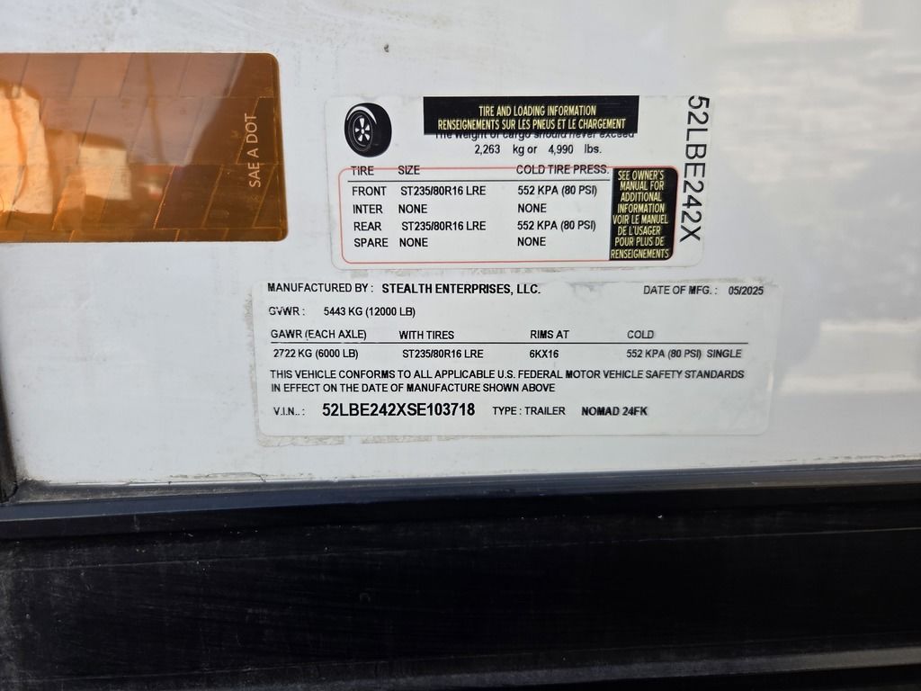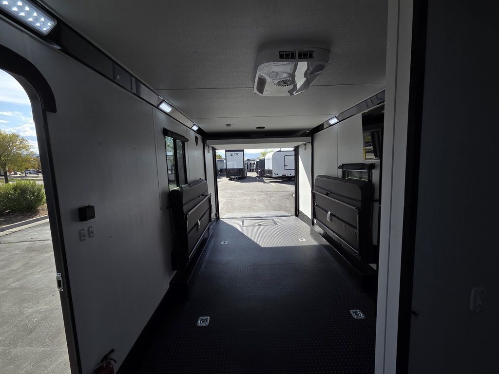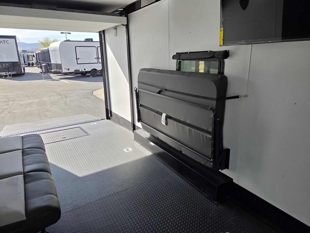LIMITED TIME $572 A MONTH WITH ZERO DOWN WITH OUR SPECIAL LOCAL CREDIT UNION PARTNER!!! NO PRE-PAYMENT PENALTIES!!! !! NEW NOMAD 24FK MODEL!!! WILL FIT ANY STOCK SIDE BY SIDE UTV!!! 12,000# GVWR/6k AXLES!!! FULLY INSULATED!!! HEATING AND A/C!!! STEREO!!! 7FT-6" Interior Height/ 36" Wedge Front 2x6 Tube Steel Main Rails 16" O/C Floor Tube Crossmembers 16" O/C Steel Tube Wall Studs 24" O/C Tube Steel Roof Bows 18" Extended Triple Tube A-Frame Lippert Torsion Axles w/32 Deg Down Start Angle 6000# Axles w/ST235/80R16 Tires (TA4) 40" Spread Axles Electric Brakes 2-5/16 Adjustable A-Frame Coupler 5000# Electric A-Frame Tongue Jack 4000# Rear Cableless Ramp Door w/Steel Flap (2) Roof Vent in Living/Garage Area (1) Prep & Wired for A/C - Main A/C only 12V Roof Vent in Bathroom Painted Tongue/Rear Sill Black (1) Pair Rear Stab Jacks Rear Flare w/(2) 12V Loading Lights 48" Beavertail ****PLUMBING****46 Gallon Fresh Water Tank (2) 43 Gallon Waste Holding Tank Sewer Hose Storage Compartment Double 20# LP Bottle w/Cover on A-Frame 6 Gallon DSI LP Gas/Electric Water Heater 12V Water Pump City/Gravity Water Fill Hook Up Outside Shower and RV Toilet Bathroom Mirror & Robe Hooks 24x36 Shower w/Shower Curtain & Surround Drop-In Cook Top Large Single Bowl Kitchen Sink Tank and Battery Monitor Panel ****ELECTRICAL****7-Way Electical Plug LED Strip Taillights/Marker Lights 12V Deluxe LED Lighting 45 Amp RV Power Center w/12V Converter 30 Amp Motorbase Plug Detachable Twistlock Power Cord Battery Box Only (Battery not included) 110V GFI Receptacle in Kitchen Area (2) 110V Receptacles in Garage Area Dual USB Ports in Kitchen 6 Cubic Foot Refrigerator Microwave Oven 35K BTU Furnace 110V Exterior GFI Receptacle TV Prep Package - Includes: Coax Cable Outlets - Interior & Exterior Omnidirectional TV Antenna UHF/VHF 110V 4FT LED Cove Lights in Living/Garage Area Smoke, CO, & LP Detector & Fire Extinguisher *INTERIOR*3/4" Drymax Floor & 3/8" Wht Vinyl Walls Ploystyrene Foam Insulation-Walls & Ceiling ATP Rubber Floor Covering White Vinyl Ceiling Liner w/Black Cove Molding Black Kitchen L-Base Cabinet w/Laminate C-Top Black Kitchen L-Overhead Cabinet (4) 5000# Recessed D-Rings Large Front Storage Area w/Shelf (1) Pair Black Aluminum Directional Vents ****ROOF****Seamless Aluminum Flat Top Roof LED Marker Lights Rear Flare w/(2) 12V Loading Lights ***METAL**.080 Screwless Armor Shield Composite Skin STD Colors:Crystal White, Black, Matte Black Windstar Silver, Victory Red, Pewter, Charcoal 3" Heavy Duty Flat Top Trim 3" Flat Bottom Trim & 6" Barrier Tape All Black Exterior Trim & ATP Fenders 24" Tall Slanted Diamond Plate Stoneguard 24" Tall Diamond Plate along sides at bottom (1) Pair Black Aluminum Directional Vents *DOORS & WINDOWS****26W x 78H Radius Corner Deluxe RV Door w/Window & Screen Aluminum Door Holdback Double Fold Out RV Step 4000# Rear Cableless Ramp Door w/Steel Flap All Black Zinc Coated Door Hardware 24Wx72H Door w/Barlock in Front Storage 30x15 Window in Kitchen Area 30x30 Window in Living/Garage Area 30x22 Egress Window in Living/Garage Area Window Coverings - In Garage Area (Only) ****FINAL*LED Strip Tailights/Marker Lights 12V Deluxe LED Lightning Black Aluminum Wheels w/Radial Tires & Black Center Caps Recessed Spare Tire Compartment Limited 3 Year Structural Warranty 01-OPT1.952 Platinum Package Includes: Deluxe Stereo Package with: AM/FM/CD/DVD/USB/MP3/WMA Capable Stereo, (4) Hi Output Weatherproof Speakers (2) Interior & (2) Exterior 43" TV w/swivel bracket Rear Hide-A-Screen Solar Port HappiJac Bed Lift System: (Includes (1) Queen Mattress Setup) 7SE103718
