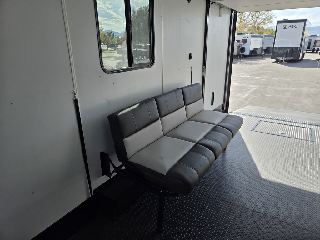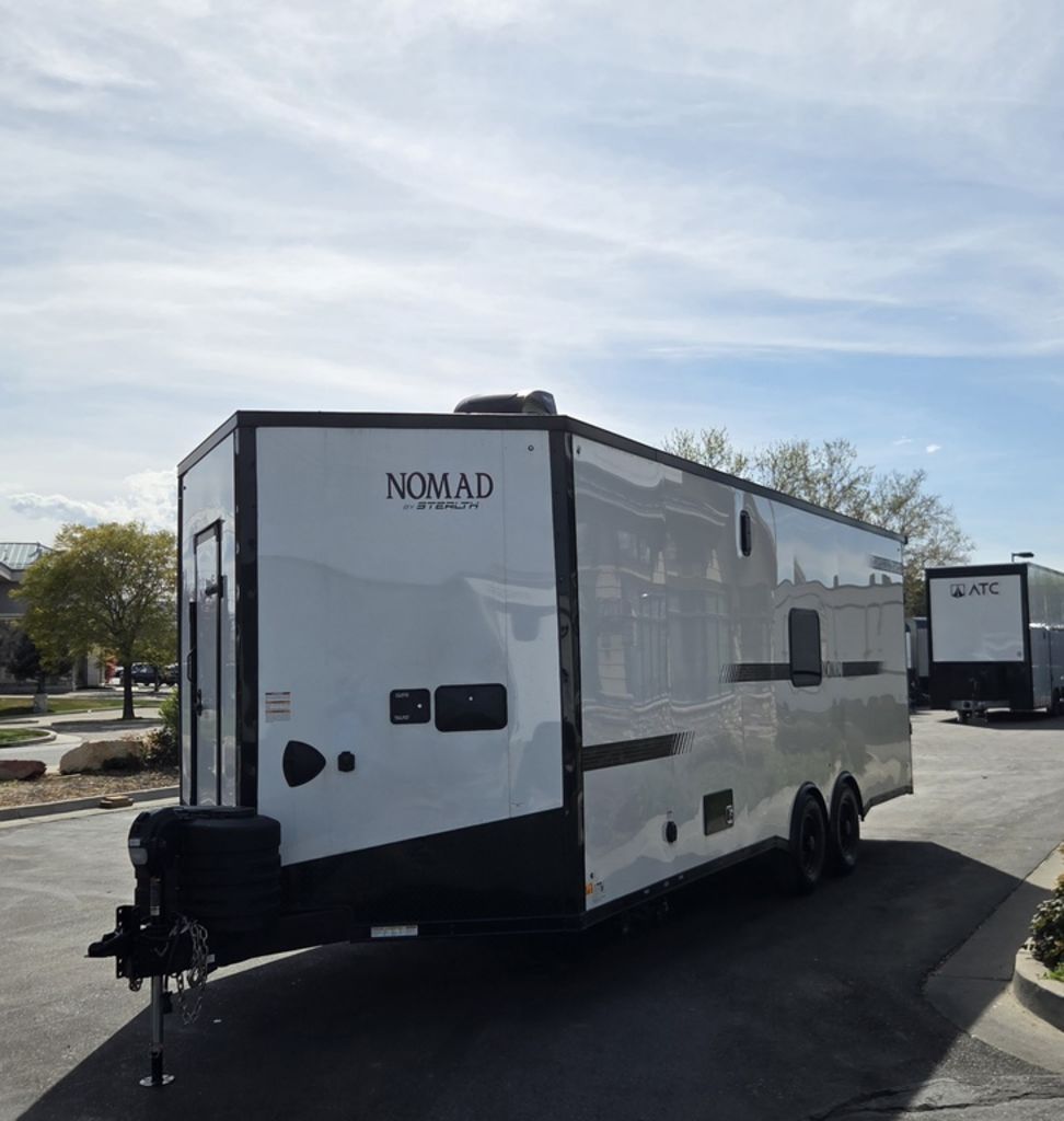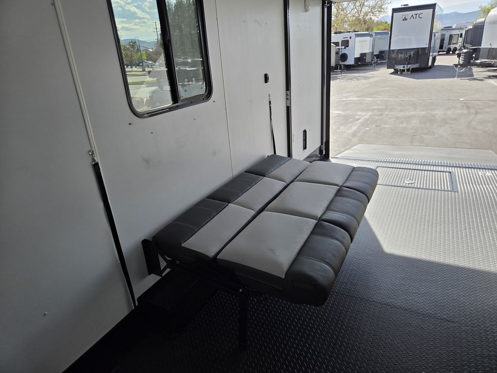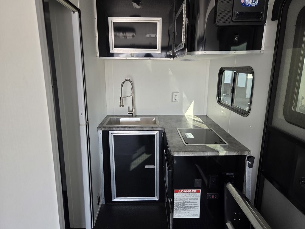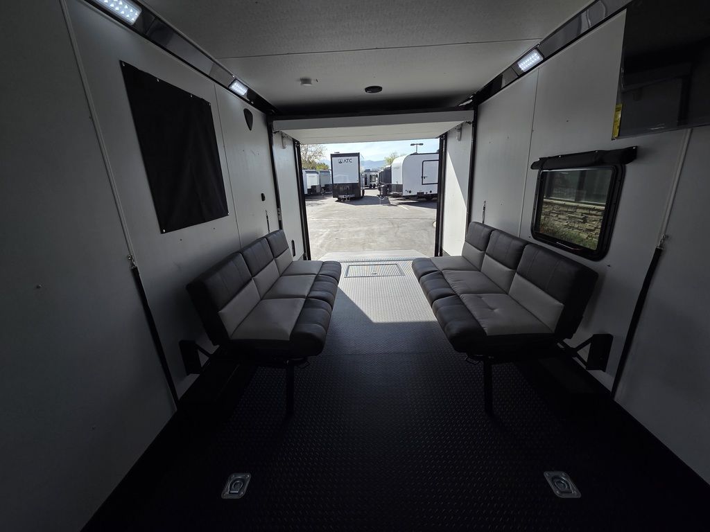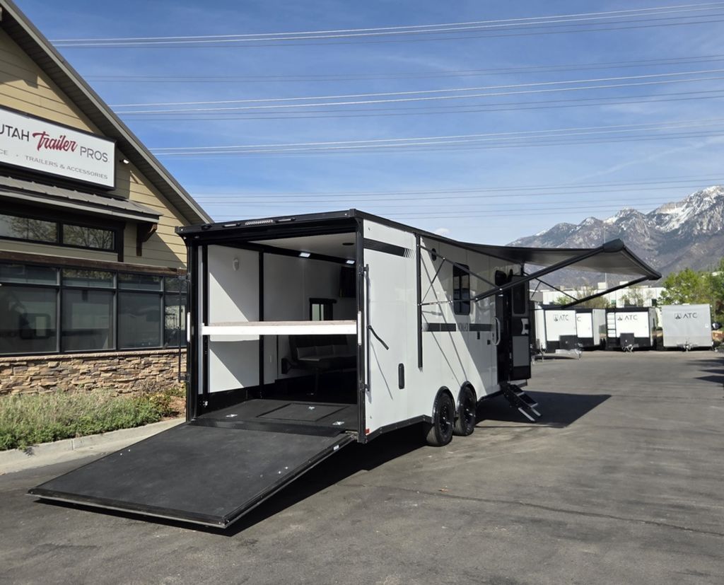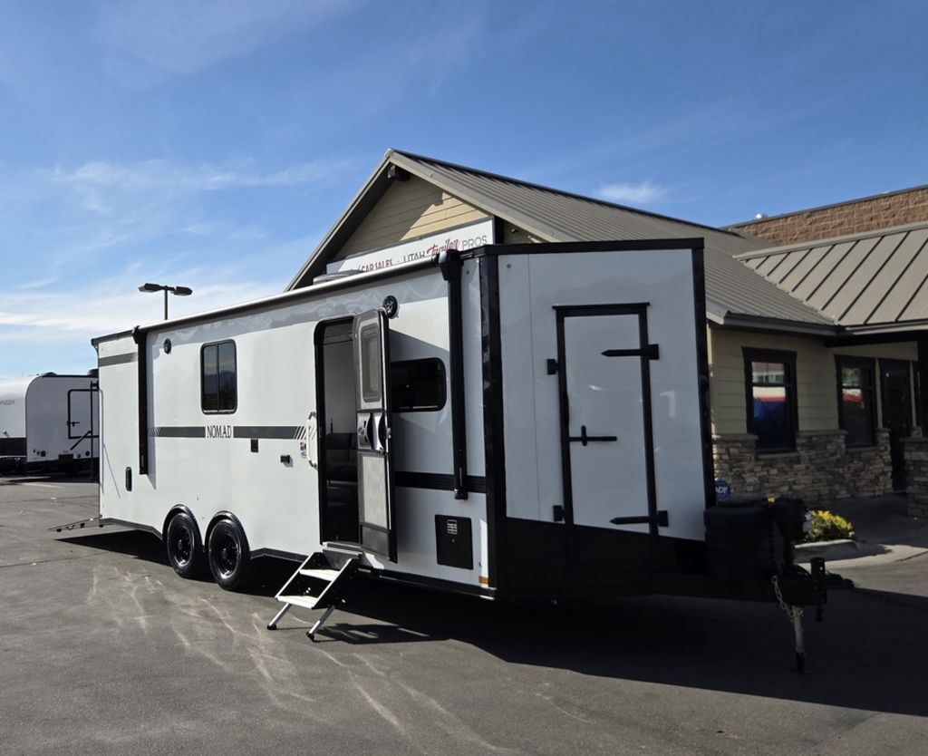 LIMITED TIME $572 A MONTH WITH ZERO DOWN WITH OUR SPECIAL LOCAL CREDIT UNION PARTNER!!! NO PRE-PAYMENT PENALTIES!!! !! NEW NOMAD 24FK MODEL!!! WILL FIT ANY STOCK SIDE BY SIDE UTV!!! 12,000# GVWR/6k AXLES!!! FULLY INSULATED!!! HEATING AND A/C!!! STEREO!!! 7FT-6" Interior Height/ 36" Wedge Front 2x6 Tube Steel Main Rails 16" O/C Floor Tube Crossmembers 16" O/C Steel Tube Wall Studs 24" O/C Tube Steel Roof Bows 18" Extended Triple Tube A-Frame Lippert Torsion Axles w/32 Deg Down Start Angle 6000# Axles w/ST235/80R16 Tires (TA4) 40" Spread Axles Electric Brakes 2-5/16 Adjustable A-Frame Coupler 5000# Electric A-Frame Tongue Jack 4000# Rear Cableless Ramp Door w/Steel Flap (2) Roof Vent in Living/Garage Area (1) Prep & Wired for A/C - Main A/C only 12V Roof Vent in Bathroom Painted Tongue/Rear Sill Black (1) Pair Rear Stab Jacks Rear Flare w/(2) 12V Loading Lights 48" Beavertail ****PLUMBING****46 Gallon Fresh Water Tank (2) 43 Gallon Waste Holding Tank Sewer Hose Storage Compartment Double 20# LP Bottle w/Cover on A-Frame 6 Gallon DSI LP Gas/Electric Water Heater 12V Water Pump City/Gravity Water Fill Hook Up Outside Shower and RV Toilet Bathroom Mirror & Robe Hooks 24x36 Shower w/Shower Curtain & Surround Drop-In Cook Top Large Single Bowl Kitchen Sink Tank and Battery Monitor Panel ****ELECTRICAL****7-Way Electical Plug LED Strip Taillights/Marker Lights 12V Deluxe LED Lighting 45 Amp RV Power Center w/12V Converter 30 Amp Motorbase Plug Detachable Twistlock Power Cord Battery Box Only (Battery not included) 110V GFI Receptacle in Kitchen Area (2) 110V Receptacles in Garage Area Dual USB Ports in Kitchen 6 Cubic Foot Refrigerator Microwave Oven 35K BTU Furnace 110V Exterior GFI Receptacle TV Prep Package - Includes: Coax Cable Outlets - Interior & Exterior Omnidirectional TV Antenna UHF/VHF 110V 4FT LED Cove Lights in Living/Garage Area Smoke, CO, & LP Detector & Fire Extinguisher *INTERIOR*3/4" Drymax Floor & 3/8" Wht Vinyl Walls Ploystyrene Foam Insulation-Walls & Ceiling ATP Rubber Floor Covering White Vinyl Ceiling Liner w/Black Cove Molding Black Kitchen L-Base Cabinet w/Laminate C-Top Black Kitchen L-Overhead Cabinet (4) 5000# Recessed D-Rings Large Front Storage Area w/Shelf (1) Pair Black Aluminum Directional Vents ****ROOF****Seamless Aluminum Flat Top Roof LED Marker Lights Rear Flare w/(2) 12V Loading Lights ***METAL**.080 Screwless Armor Shield Composite Skin STD Colors:Crystal White, Black, Matte Black Windstar Silver, Victory Red, Pewter, Charcoal 3" Heavy Duty Flat Top Trim 3" Flat Bottom Trim & 6" Barrier Tape All Black Exterior Trim & ATP Fenders 24" Tall Slanted Diamond Plate Stoneguard 24" Tall Diamond Plate along sides at bottom (1) Pair Black Aluminum Directional Vents *DOORS & WINDOWS****26W x 78H Radius Corner Deluxe RV Door w/Window & Screen Aluminum Door Holdback Double Fold Out RV Step 4000# Rear Cableless Ramp Door w/Steel Flap All Black Zinc Coated Door Hardware 24Wx72H Door w/Barlock in Front Storage 30x15 Window in Kitchen Area 30x30 Window in Living/Garage Area 30x22 Egress Window in Living/Garage Area Window Coverings - In Garage Area (Only) ****FINAL*LED Strip Tailights/Marker Lights 12V Deluxe LED Lightning Black Aluminum Wheels w/Radial Tires & Black Center Caps Recessed Spare Tire Compartment Limited 3 Year Structural Warranty 01-OPT1.952 Platinum Package Includes: Deluxe Stereo Package with: AM/FM/CD/DVD/USB/MP3/WMA Capable Stereo, (4) Hi Output Weatherproof Speakers (2) Interior & (2) Exterior 43" TV w/swivel bracket Rear Hide-A-Screen Solar Port HappiJac Bed Lift System: (Includes (1) Queen Mattress Setup) 7SE103718