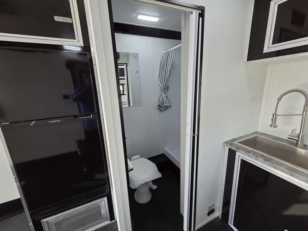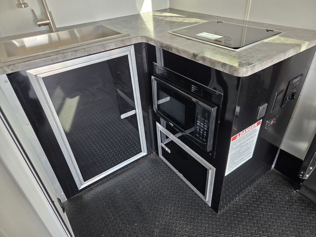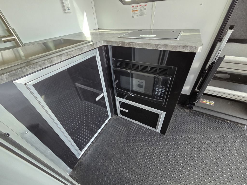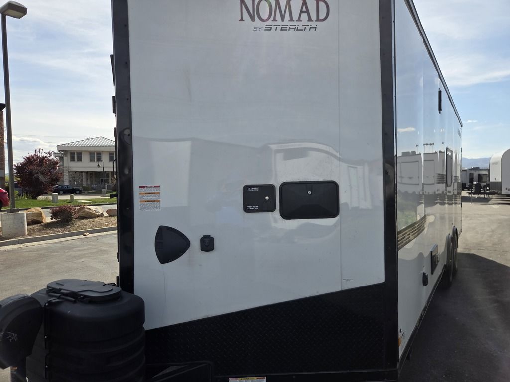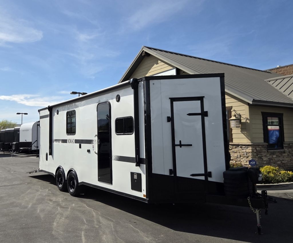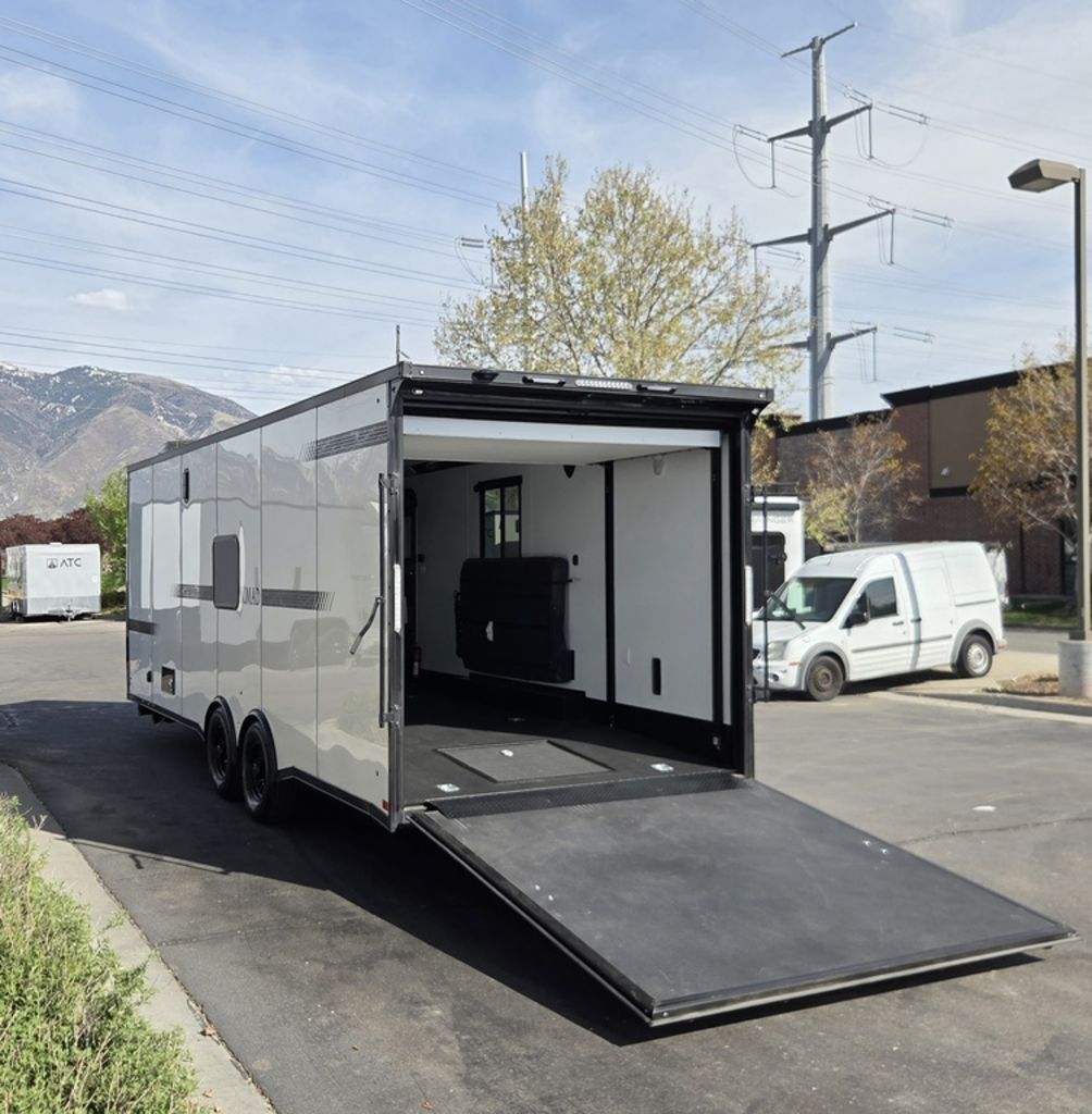 LIMITED TIME $572 A MONTH WITH ZERO DOWN WITH OUR SPECIAL LOCAL CREDIT UNION PARTNER!!! NO PRE-PAYMENT PENALTIES!!! !! NEW NOMAD 24FK MODEL!!! WILL FIT ANY STOCK SIDE BY SIDE UTV!!! 12,000# GVWR/6k AXLES!!! FULLY INSULATED!!! HEATING AND A/C!!! STEREO!!! 7FT-6" Interior Height/ 36" Wedge Front 2x6 Tube Steel Main Rails 16" O/C Floor Tube Crossmembers 16" O/C Steel Tube Wall Studs 24" O/C Tube Steel Roof Bows 18" Extended Triple Tube A-Frame Lippert Torsion Axles w/32 Deg Down Start Angle 6000# Axles w/ST235/80R16 Tires (TA4) 40" Spread Axles Electric Brakes 2-5/16 Adjustable A-Frame Coupler 5000# Electric A-Frame Tongue Jack 4000# Rear Cableless Ramp Door w/Steel Flap (2) Roof Vent in Living/Garage Area (1) Prep & Wired for A/C - Main A/C only 12V Roof Vent in Bathroom Painted Tongue/Rear Sill Black (1) Pair Rear Stab Jacks Rear Flare w/(2) 12V Loading Lights 48" Beavertail ****PLUMBING****46 Gallon Fresh Water Tank (2) 43 Gallon Waste Holding Tank Sewer Hose Storage Compartment Double 20# LP Bottle w/Cover on A-Frame 6 Gallon DSI LP Gas/Electric Water Heater 12V Water Pump City/Gravity Water Fill Hook Up Outside Shower and RV Toilet Bathroom Mirror & Robe Hooks 24x36 Shower w/Shower Curtain & Surround Drop-In Cook Top Large Single Bowl Kitchen Sink Tank and Battery Monitor Panel ****ELECTRICAL****7-Way Electical Plug LED Strip Taillights/Marker Lights 12V Deluxe LED Lighting 45 Amp RV Power Center w/12V Converter 30 Amp Motorbase Plug Detachable Twistlock Power Cord Battery Box Only (Battery not included) 110V GFI Receptacle in Kitchen Area (2) 110V Receptacles in Garage Area Dual USB Ports in Kitchen 6 Cubic Foot Refrigerator Microwave Oven 35K BTU Furnace 110V Exterior GFI Receptacle TV Prep Package - Includes: Coax Cable Outlets - Interior & Exterior Omnidirectional TV Antenna UHF/VHF 110V 4FT LED Cove Lights in Living/Garage Area Smoke, CO, & LP Detector & Fire Extinguisher *INTERIOR*3/4" Drymax Floor & 3/8" Wht Vinyl Walls Ploystyrene Foam Insulation-Walls & Ceiling ATP Rubber Floor Covering White Vinyl Ceiling Liner w/Black Cove Molding Black Kitchen L-Base Cabinet w/Laminate C-Top Black Kitchen L-Overhead Cabinet (4) 5000# Recessed D-Rings Large Front Storage Area w/Shelf (1) Pair Black Aluminum Directional Vents ****ROOF****Seamless Aluminum Flat Top Roof LED Marker Lights Rear Flare w/(2) 12V Loading Lights ***METAL**.080 Screwless Armor Shield Composite Skin STD Colors:Crystal White, Black, Matte Black Windstar Silver, Victory Red, Pewter, Charcoal 3" Heavy Duty Flat Top Trim 3" Flat Bottom Trim & 6" Barrier Tape All Black Exterior Trim & ATP Fenders 24" Tall Slanted Diamond Plate Stoneguard 24" Tall Diamond Plate along sides at bottom (1) Pair Black Aluminum Directional Vents *DOORS & WINDOWS****26W x 78H Radius Corner Deluxe RV Door w/Window & Screen Aluminum Door Holdback Double Fold Out RV Step 4000# Rear Cableless Ramp Door w/Steel Flap All Black Zinc Coated Door Hardware 24Wx72H Door w/Barlock in Front Storage 30x15 Window in Kitchen Area 30x30 Window in Living/Garage Area 30x22 Egress Window in Living/Garage Area Window Coverings - In Garage Area (Only) ****FINAL*LED Strip Tailights/Marker Lights 12V Deluxe LED Lightning Black Aluminum Wheels w/Radial Tires & Black Center Caps Recessed Spare Tire Compartment Limited 3 Year Structural Warranty 01-OPT1.952 Platinum Package Includes: Deluxe Stereo Package with: AM/FM/CD/DVD/USB/MP3/WMA Capable Stereo, (4) Hi Output Weatherproof Speakers (2) Interior & (2) Exterior 43" TV w/swivel bracket Rear Hide-A-Screen Solar Port HappiJac Bed Lift System: (Includes (1) Queen Mattress Setup) 7SE103718