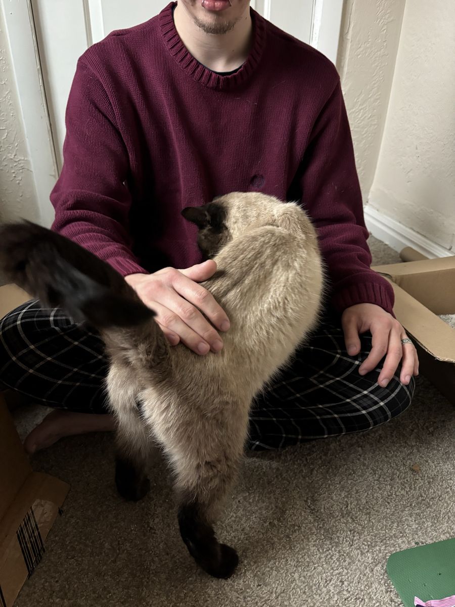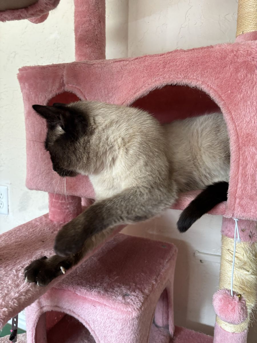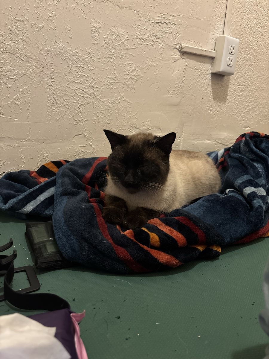 Winston is a beautiful seal point/siamese looking cat. He is a neutered male, estimated to be roughly 4yr old. He is up to date in all vaccines. My fiancée and I have known this cat for about two years, he was a stray in a colony that lives around our lane. In January we found him looking very sick and injured, and he appeared to have been outcasted by the colony. We cared for him overnight, then took him in to WCAS when we saw that we wouldn’t be able to help him from home. Once he recovered we brought him in planning to foster to adopt. Unfortunately, his past trauma with the cats outside, along with some territorial behavior from our cat we’ve already had, our apartment just wasn’t a good fit for him. He is the sweetest boy and so handsome, it is heartbreaking to have to say goodbye to him, but we believe being in a household better suited to his needs will give him a better and happier life than with us. We think he would be best suited for a single cat household, or somewhere that could accommodate the time and space he needs to work thru these issues with other cats. Winston is a big lover and very social. He loves to cuddle in bed and has gotten more active in playtime the longer he’s been with us. He would really be a ray of light into anyone’s life. If it’s not too much to ask, we would love to get occasional updates from whoever ends up adopting him. Of course this isn’t a deal breaker, we have just grown very close to him and would love to see that he’s adjusting well to his new home. As I said, we are fostering thru Weber County Animal Services. They require a $55 adoption fee and need to see some form of ID. If you were to adopt him, we would meet you at the shelter and hand him over once you’ve completed the paperwork with them. Please reach out if you have any additional questions :)