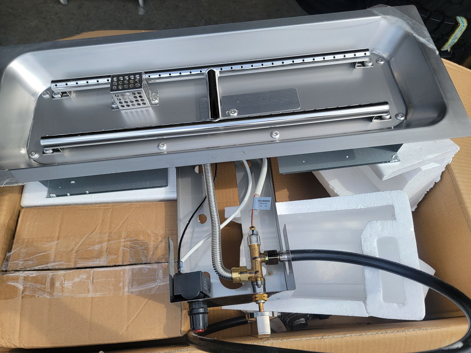 New in Box Drop In Propane Burner Element For Fire Table , compatible with standard 20-pound propane cylinders, providing clean, smoke-free, and ash-free warmth. Includes Fire Rock. 28x9.5". $100