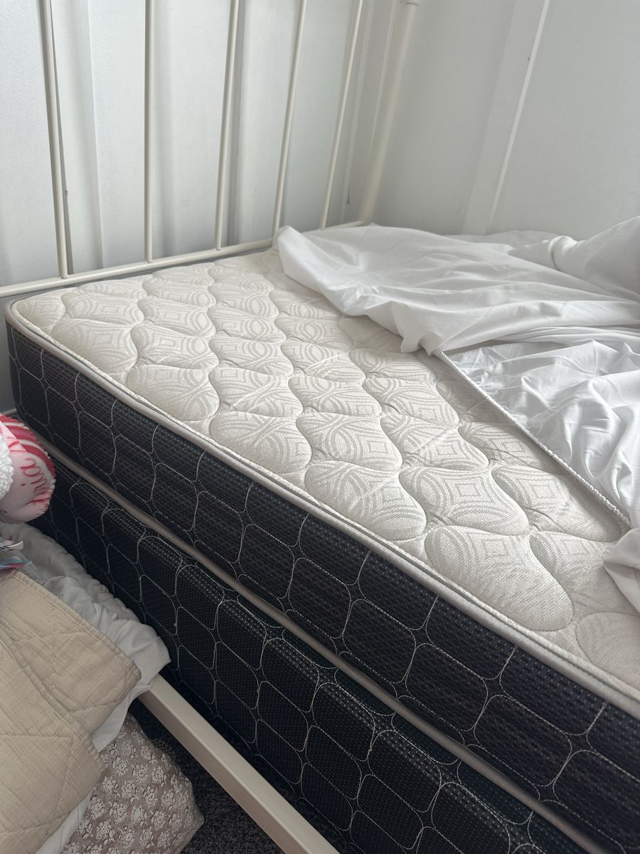 VenmoTwin bed frame, brand new mattress and box spring. Purchased for my spare room but have decided I don’t need it.