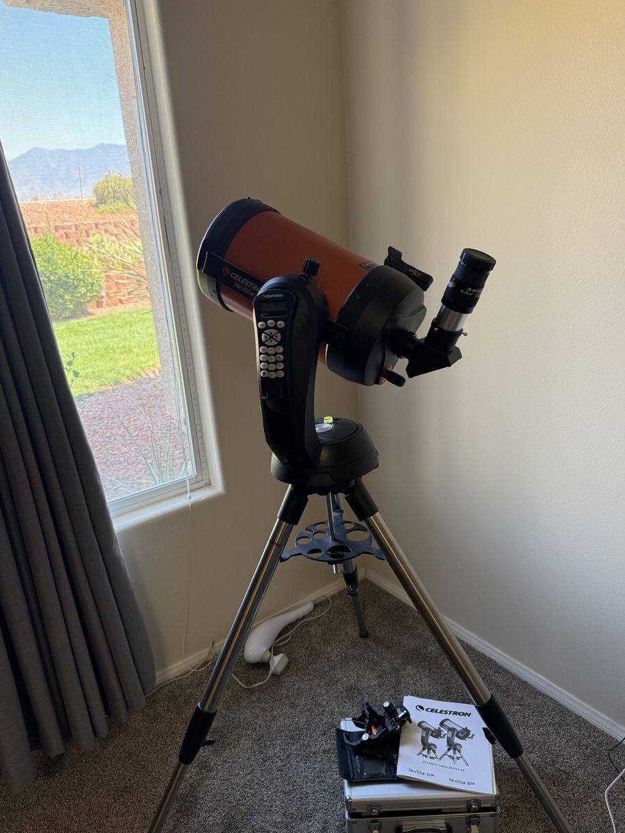 Like new telescope. Only used twice. 1 year old with multiple eyepieces and many accessories. Must be able to pick up. No deliveries.