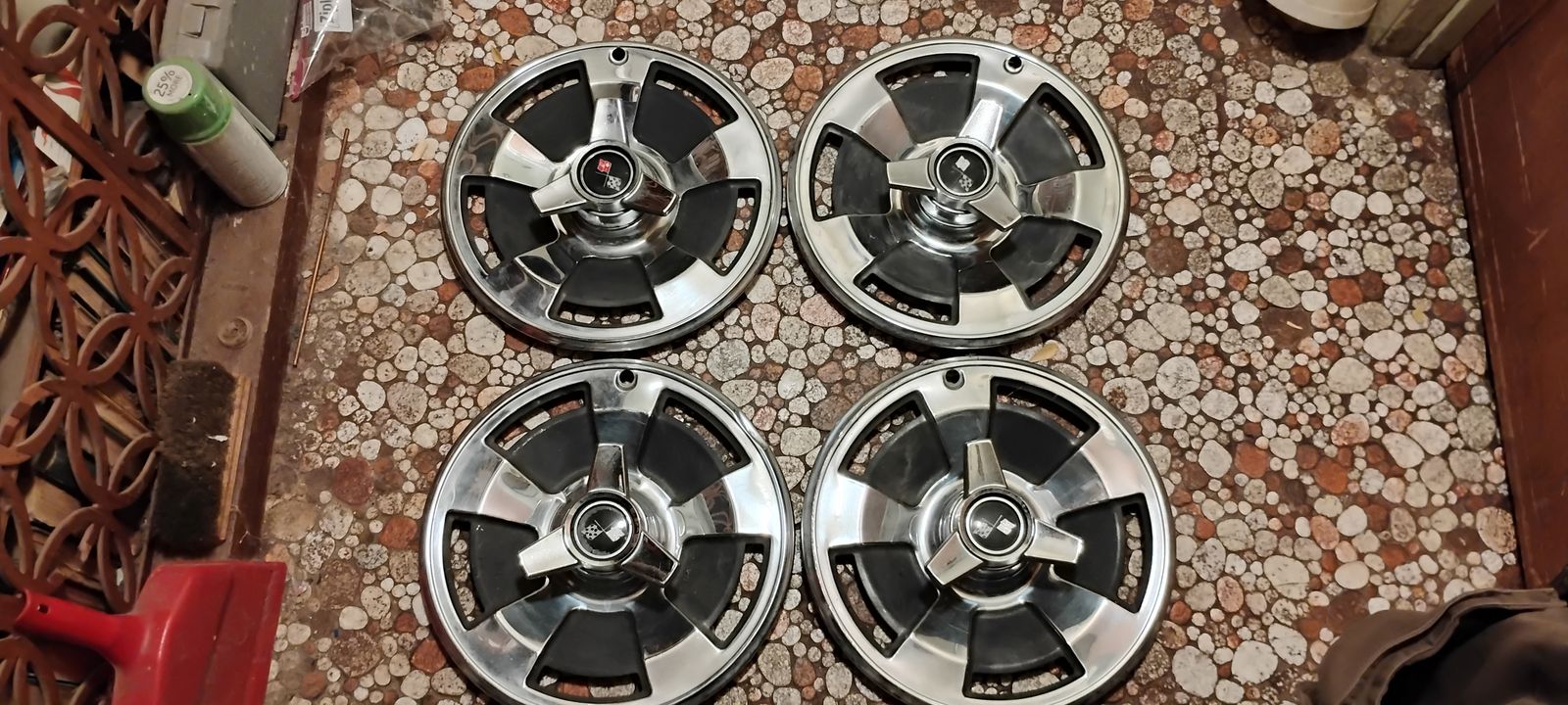 Venmo1960s Corvette hubcaps some people say 65 some people say 66 I do not sure on these there's four of them there they're all pretty nice shape there are 250 dollars or make me an offer on them