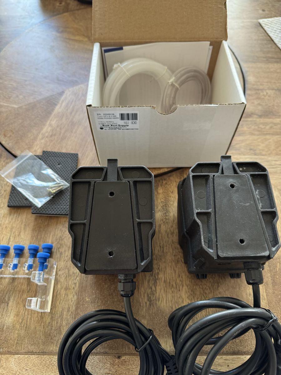 ZelleI’ve had these pumps for a little over a year now, and they run great. Used both for kalkwasser dosing in two different aquariums. While they run great, here’s the catch: one of them runs quietly (I don’t even hear it kick on and off), and the other one clicks while it runs. They’re both 100% functional, but honestly, the clicking on the second one is annoying to me. That’s why I’m selling them for $70 total (normally $72 each), or $40 for the quiet one, and $30 for the clicker.