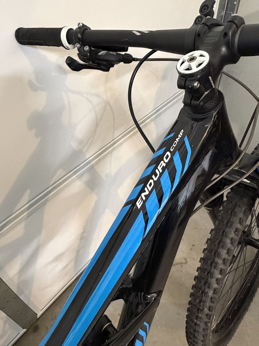ZelleGently used (rarely rode), excellent condition. RockShox Pike fork, Fox Float CTD rear shock. Description: Shred the whole mountain! The all-mountain Specialized Enduro Comp 29 is built to pedal up and absolutely crush it back down. The lightweight yet rugged M5-aluminum frame features active, efficient FSR rear suspension and is adorned with a whole slew of sweet components. A plush RockShox Pike fork, a Fox Float CTD rear shock with AutoSag, and a 1x10 SRAM drivetrain keeps this rig shredding all over the mountain no matter what the terrain throws at you, while the 29-inch Roval Fattie wheels make short work of even the rockiest trails. What's more, the Comp is spec'd with wide Specialized bars and sure-stopping Shimano discs. Top it all off with Specialized's renowned Body Geometry saddle and tubeless-ready tires for more singletrack-railing goodness.