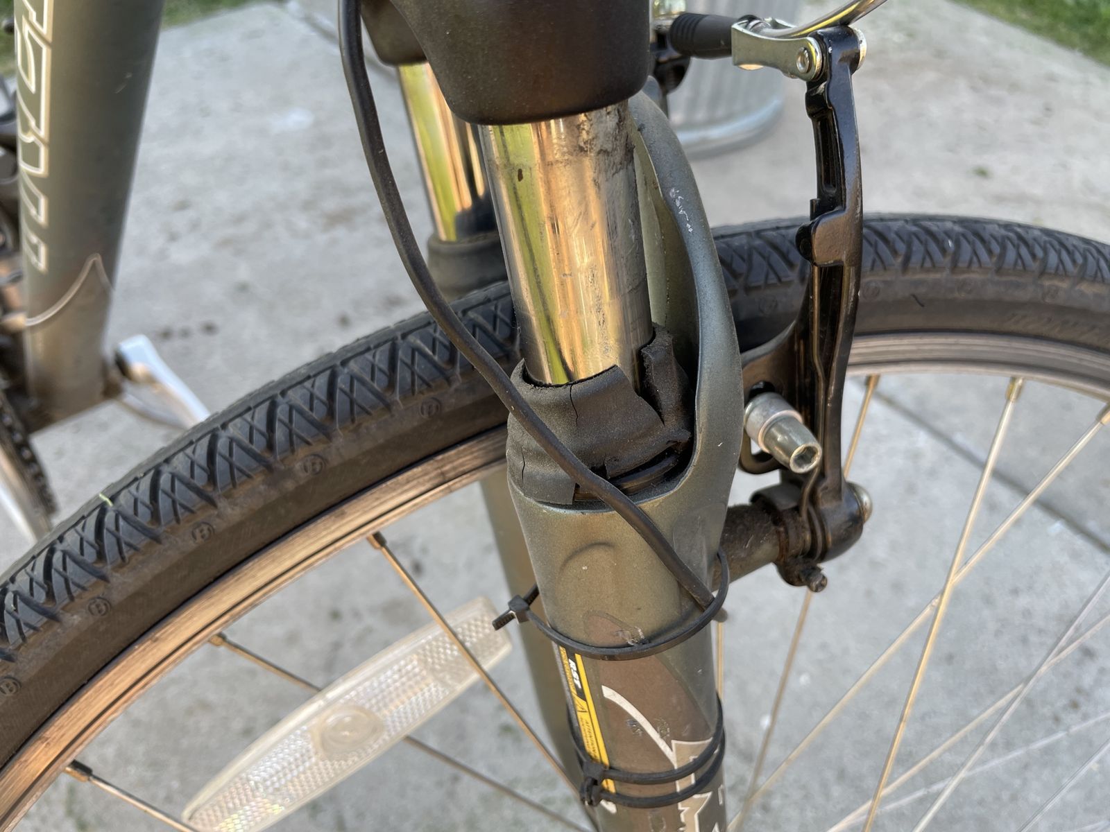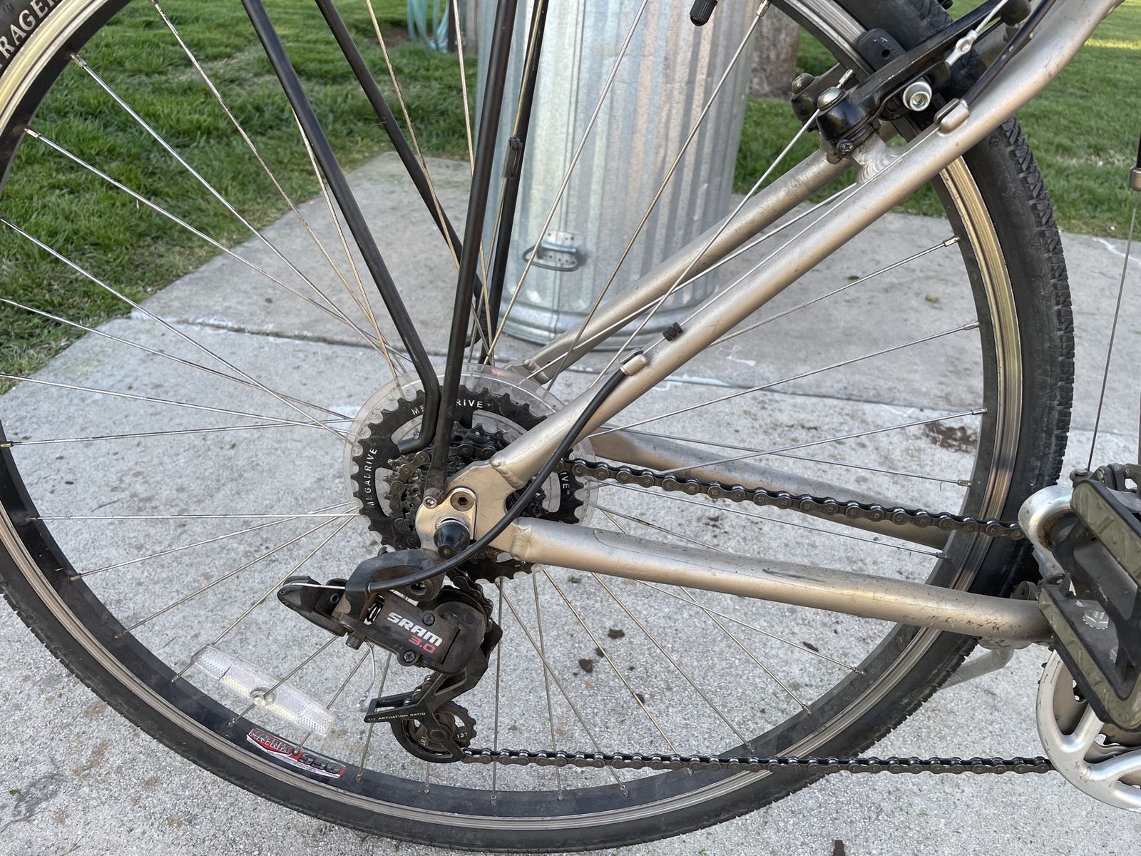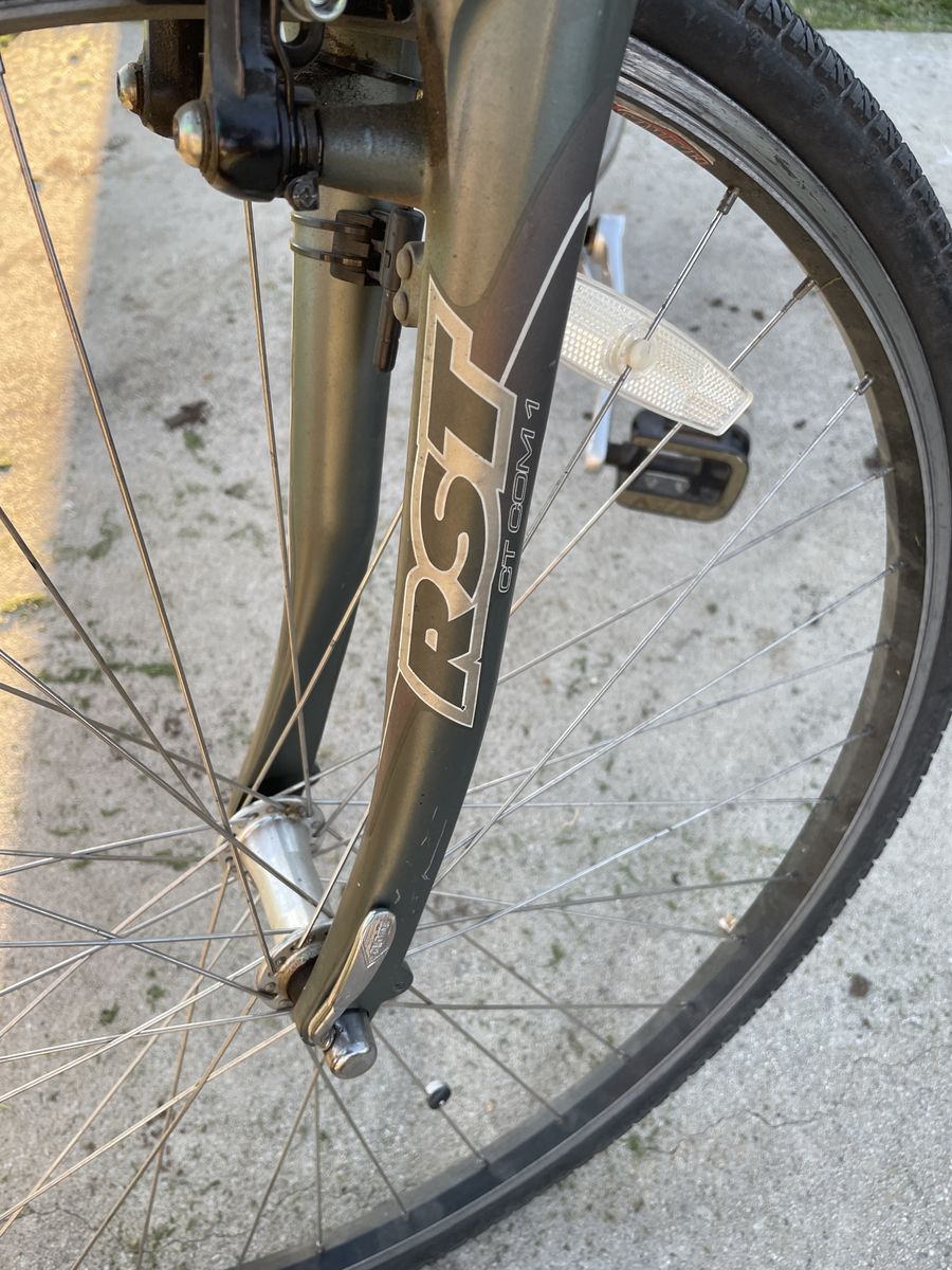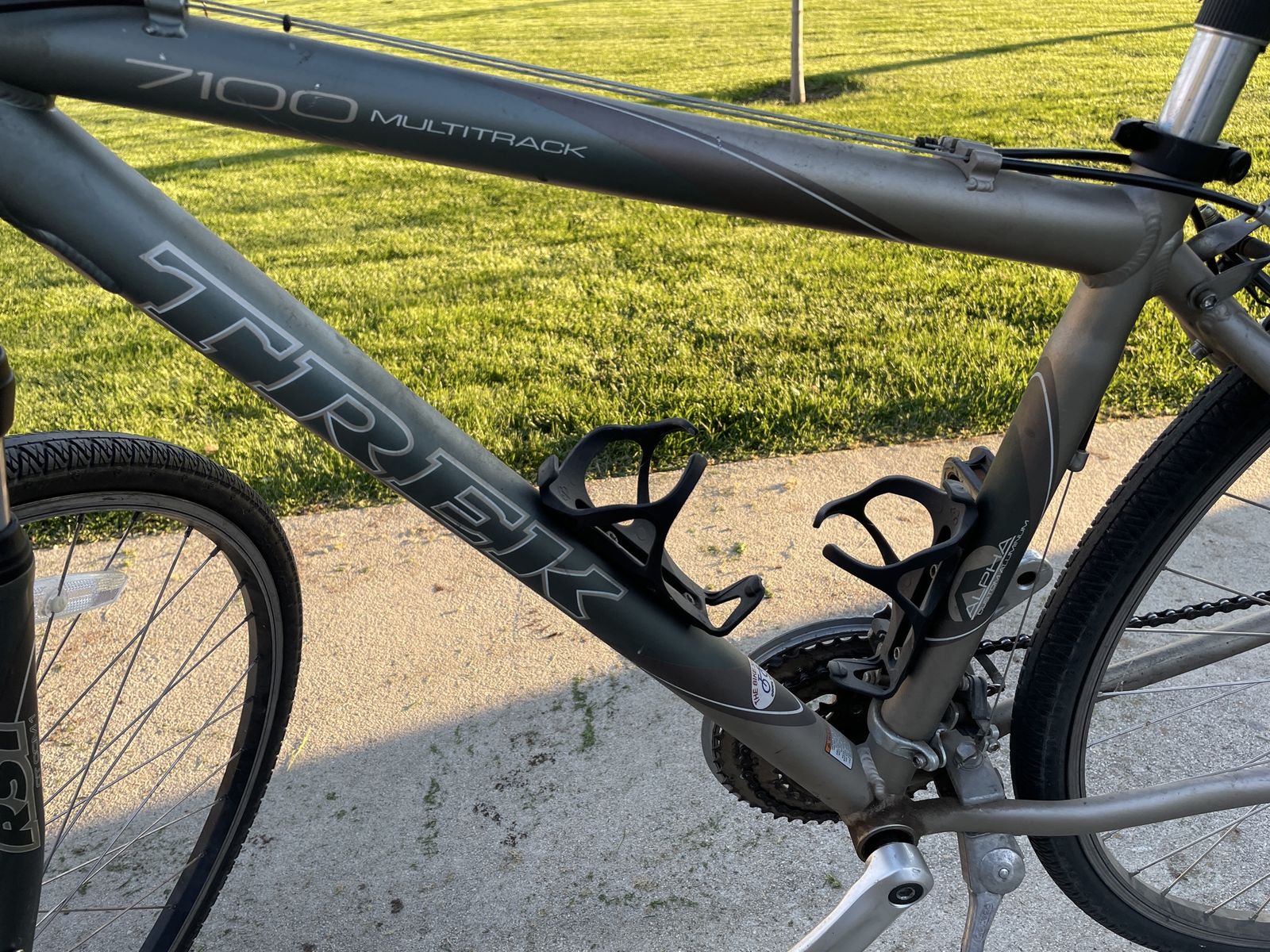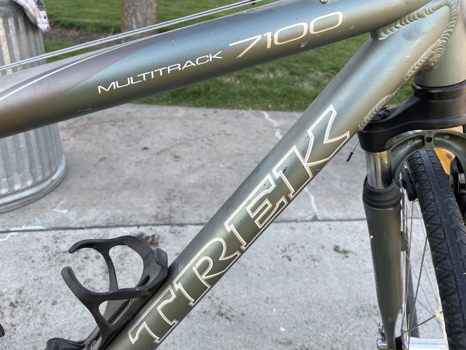 Up for sale is a Trek MultiTrack 7100 17.5, I bought it brand new about 18 years ago. I still have the original manuals for it, and it has the original tires. I used to ride it to work, then stopped riding when I hurt my knee. It has been stored inside it's entire life. Has been ridden very rarely the past 8 years. There are scratches on it, a tear in the seat and sticky/deteriorating grips and the rubber boots on the shocks are cracked. Thanks for looking.