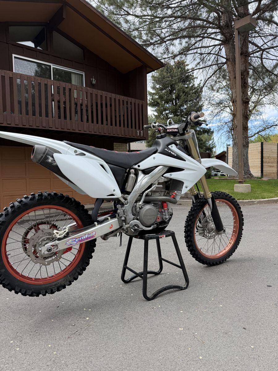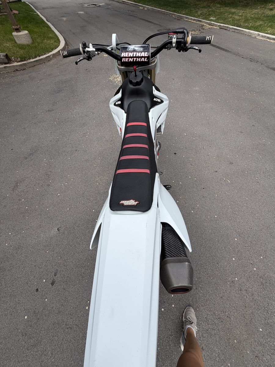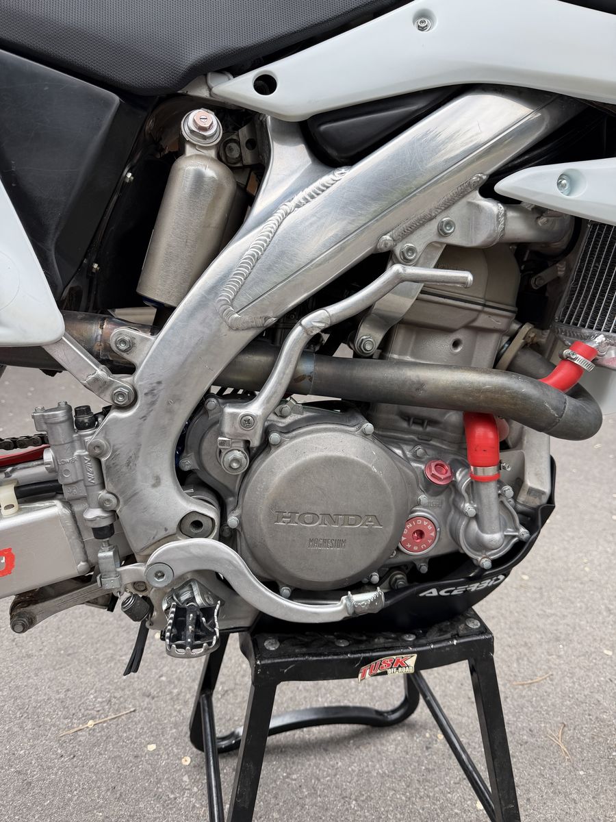 Modifications/upgrades include: Rekluse clutch Z- Start Pro Auto clutch. Race tech suspension set up by Skull Valley 3.2 gallon desert tank (will include stock tank) Oversized radiators with high pressure cap. Brand new Hot Rods water pump shaft, bearing, and gasket. New plastics Moto Seat Renthal bars (will include taller Renthal bars too) Asv clutch and brake levers Odi emig grips Aftermarket exhaust Fork seals and rear shock seal recently replaced Recently had the carb refreshed by Alpine XC Tm design chain guide and slide. Supersprox stealth rear sprocket. Red excel wheels.