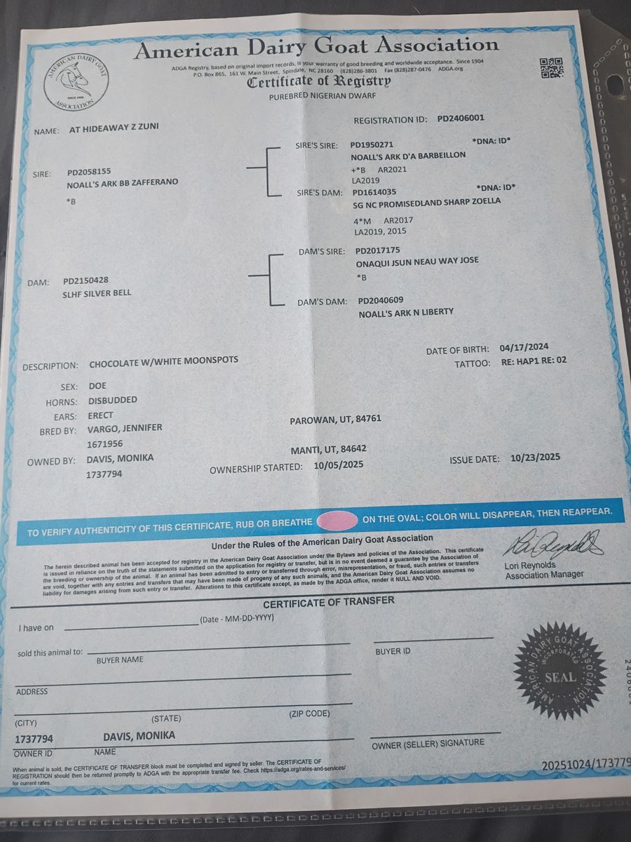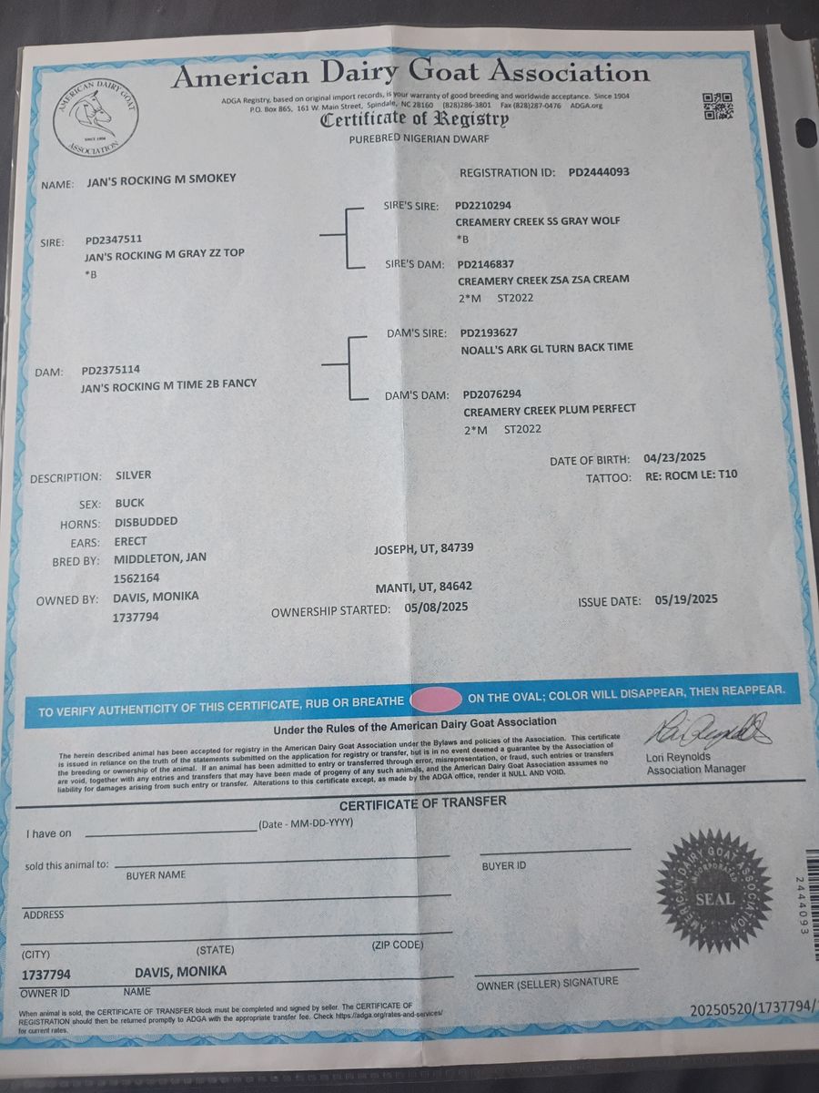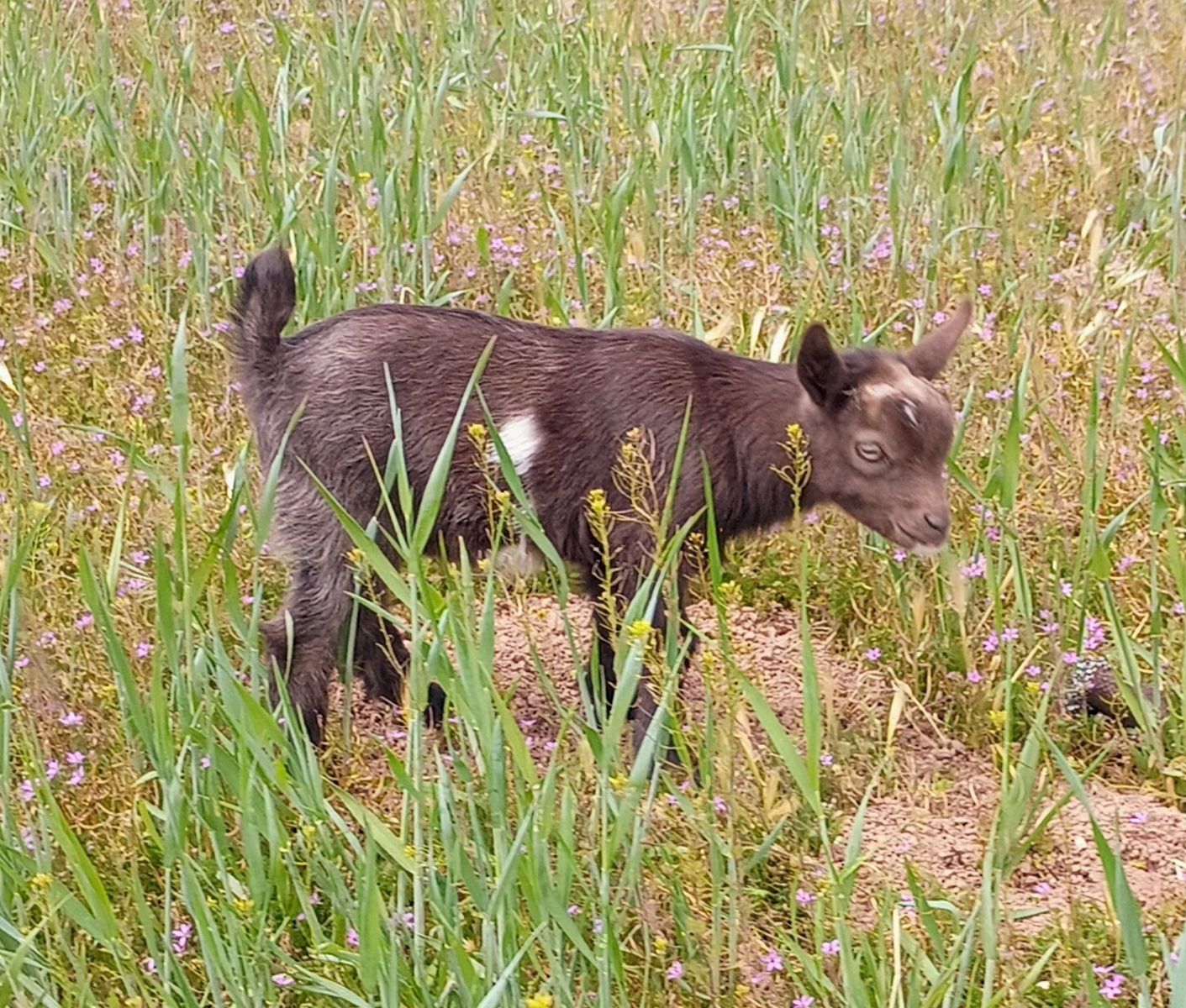 ADGA registerable Nigerian Dwarf buckling from high production lines. Born 4/3/26, super cute and very friendly. He is currently being bottle fed and doing great. He's been disbudded and comes from a clean tested herd.