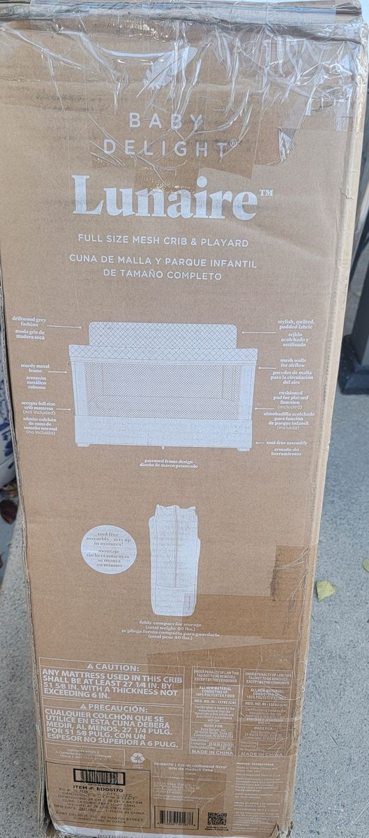 New in Box Baby Delight Lunaire Full Size Mesh Baby Crib & Playard, Driftwood Grey.