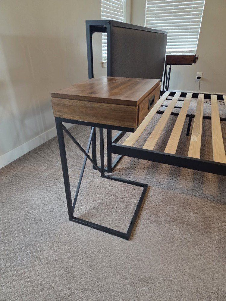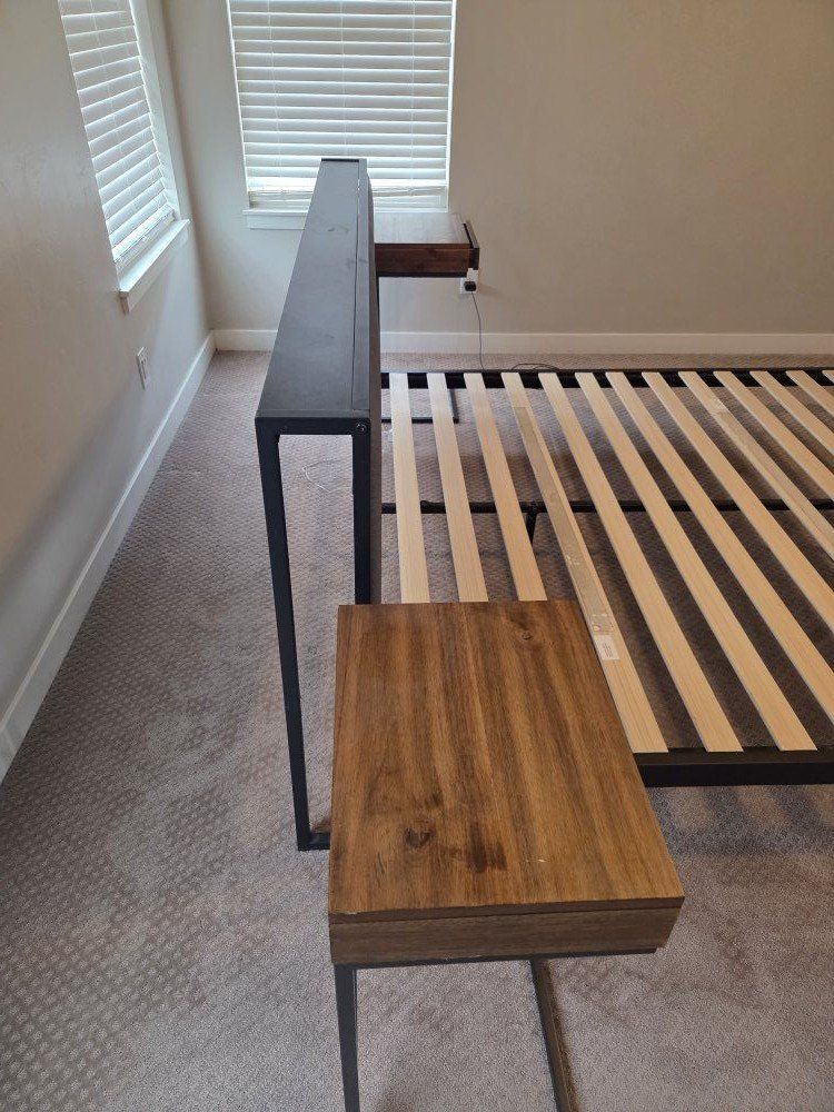 ZelleKing bedroom set for sale. Platform bed and two nightstands. Can help move into truck.