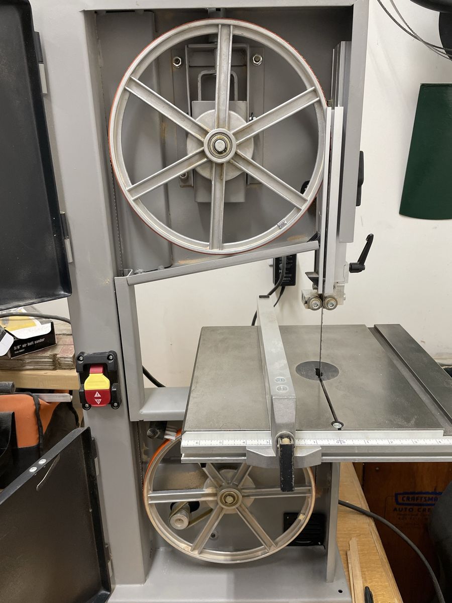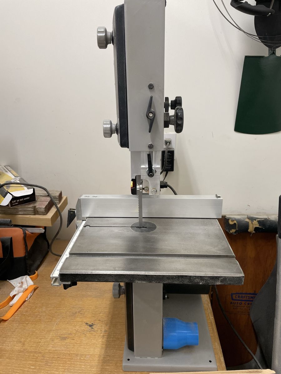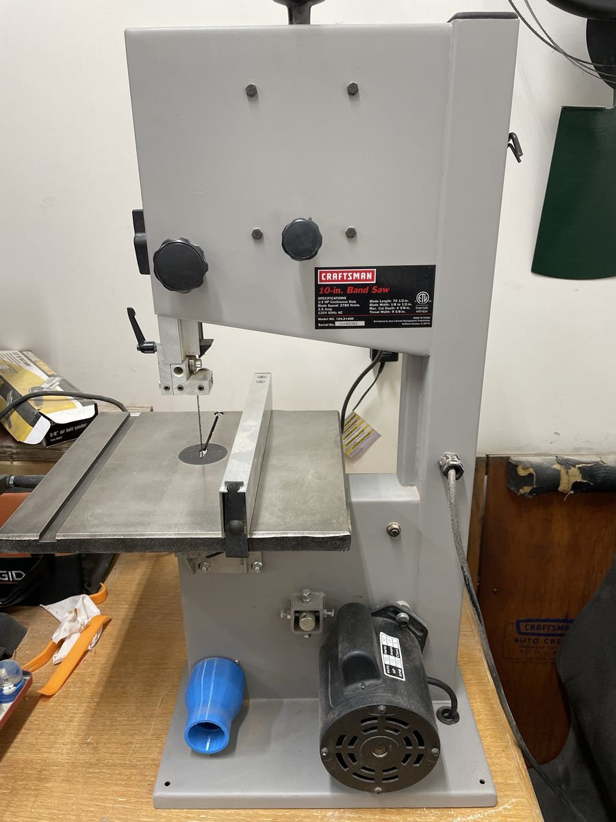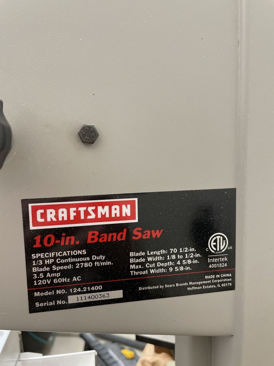 Up for sale is a Craftsman band saw with new urethane tires and a couple different blades. Also included is a hose adapter to hook it up to a vacuum. Comes with 1/8”, 1/4”, 3/8” Craftsman blades and two 3/16” Timber Wolf blades. Thanks for looking.
