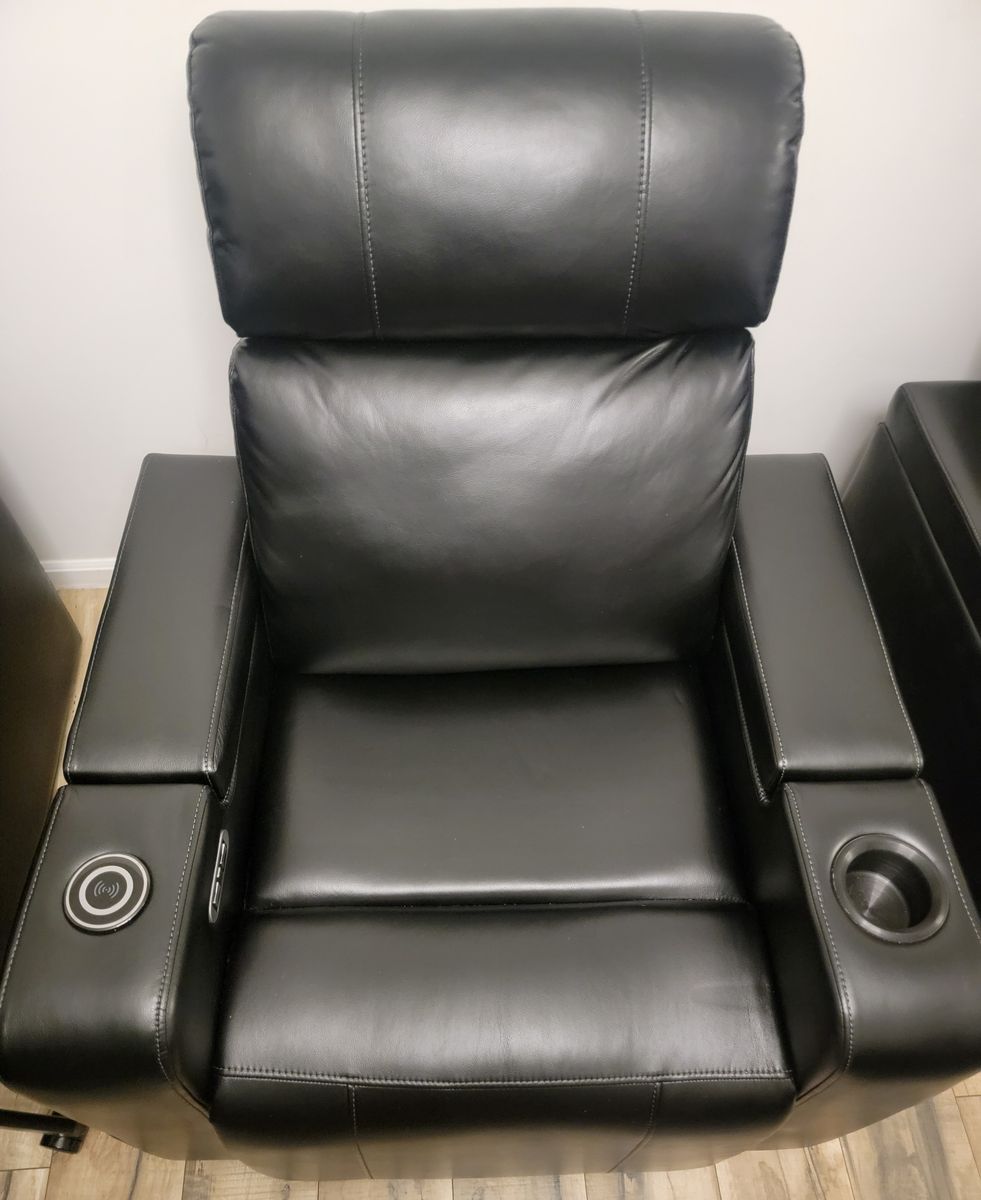 Included: Member’s Mark Power Recliner (37”W x 39.5”D x 44.25”H), Remote, Wireless Charging Pad, LED lighting strip, and USB ports Auto power reclining mechanism with power adjustable headrest Sleek black faux leather upholstery with multicolor LED lighting Standard delivery to address provided at checkout Works Perfect. $400