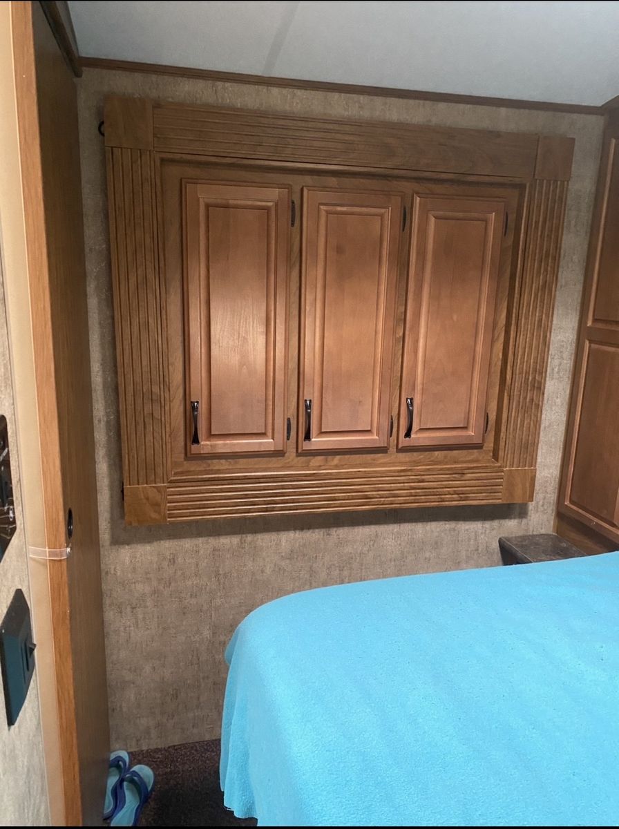 Excellent condition, always covered and winterized properly. Includes: Cover (on it now), equalizer hitch, extra jacks, and a tool box on the back. It has a new awning, newer tires (14 ply), 6-volt batteries, 80 gallons fresh water and many extras. This is the best insulated trailer with “thermapain” windows. It is immaculately clean.