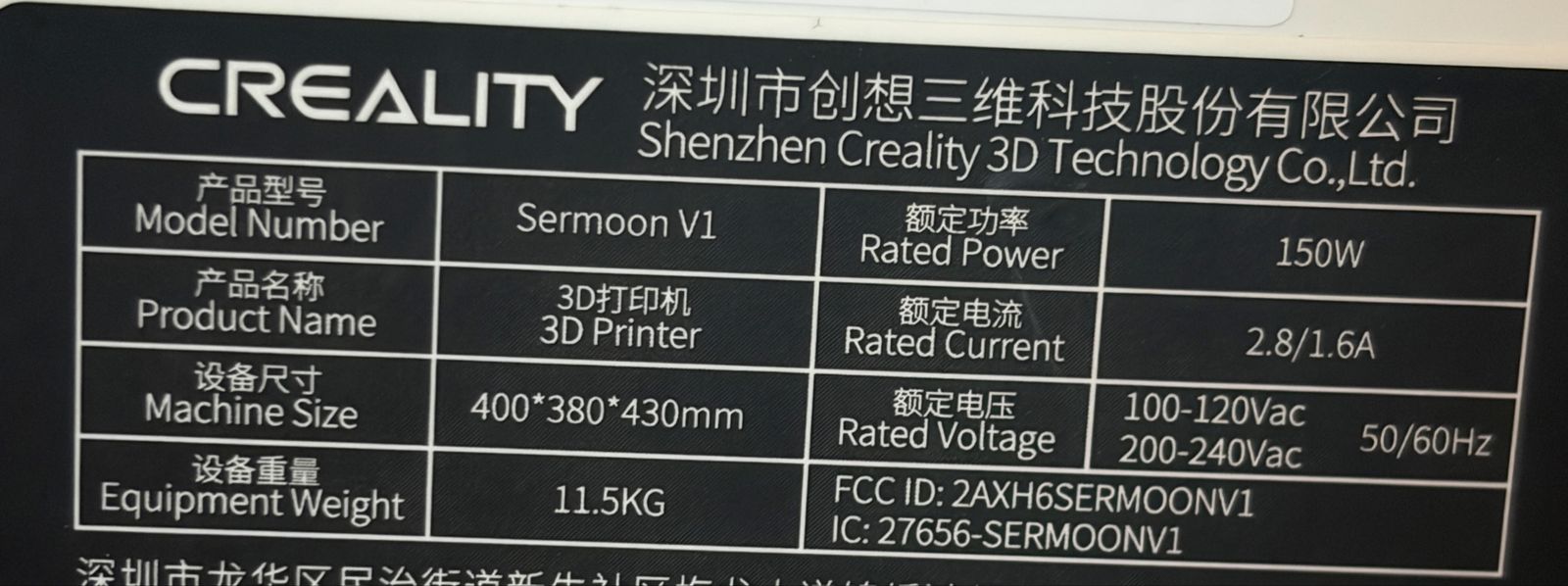 Creality Sermoon V1 3D Printer for sale in good working condition. Fully enclosed design helps with safer, quieter printing and more consistent results. Great beginner-friendly printer. Features Wi-Fi connectivity, touchscreen controls, heated bed, and direct drive extruder. Print size is 175 × 175 × 165 mm.