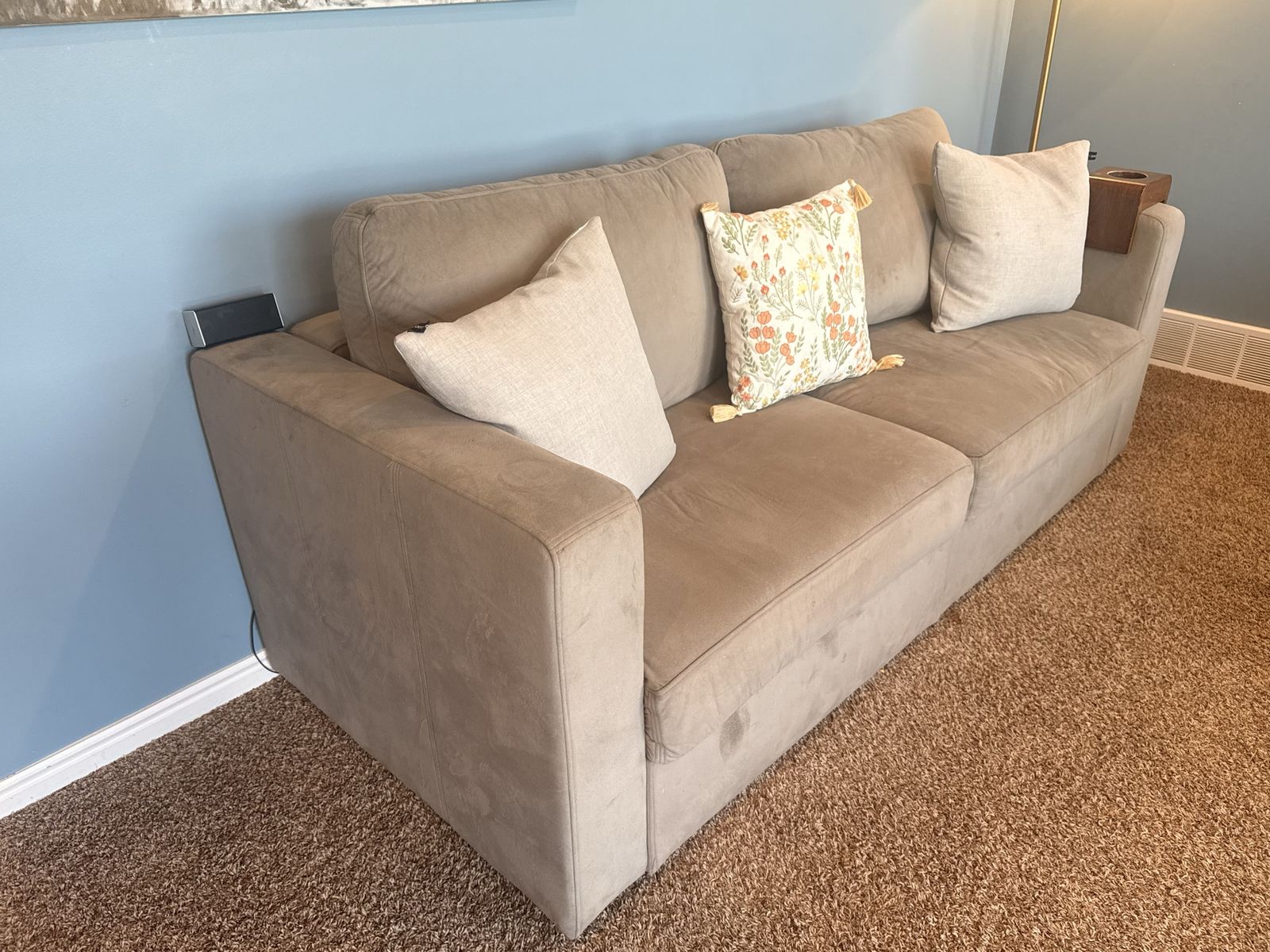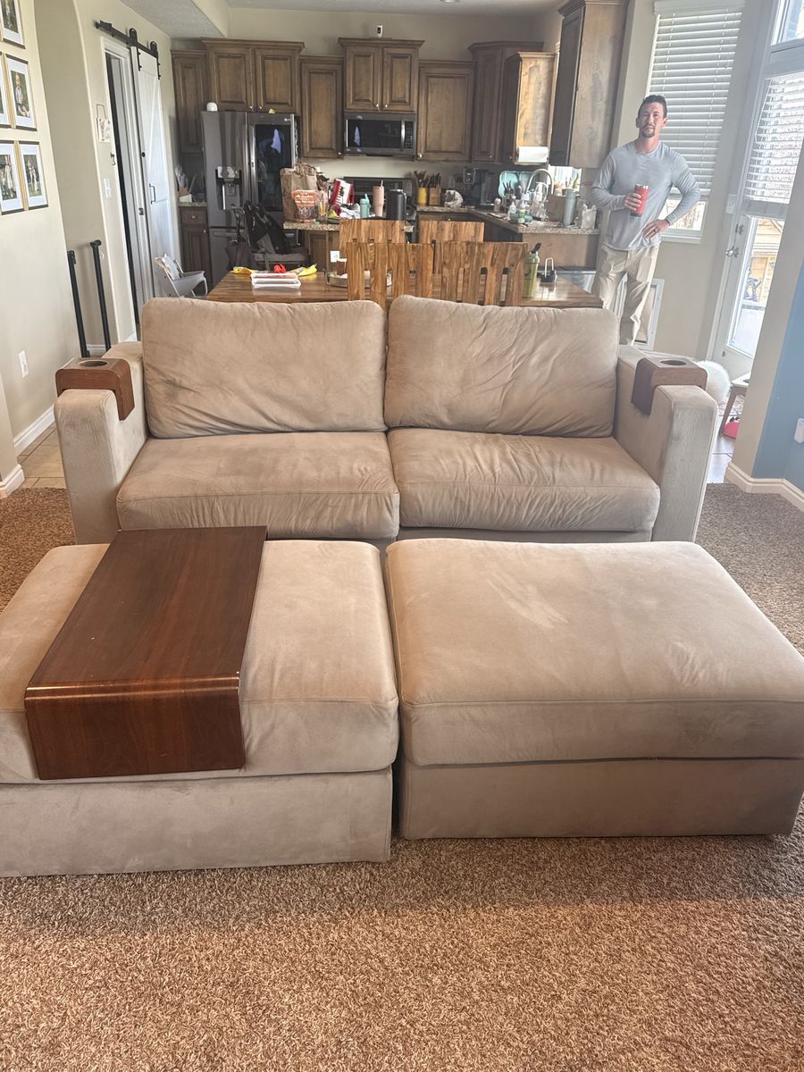ApplePaySelling our Lovesac Modular couch and matching beanbag. Super comfortable and perfect for a family room or basement! The modular design lets you rearrange the couch however you want or need. You can rearrange it into different layouts (L-shape, U-shape, or separate seating). It’s great for kids, movie nights, and entertaining.