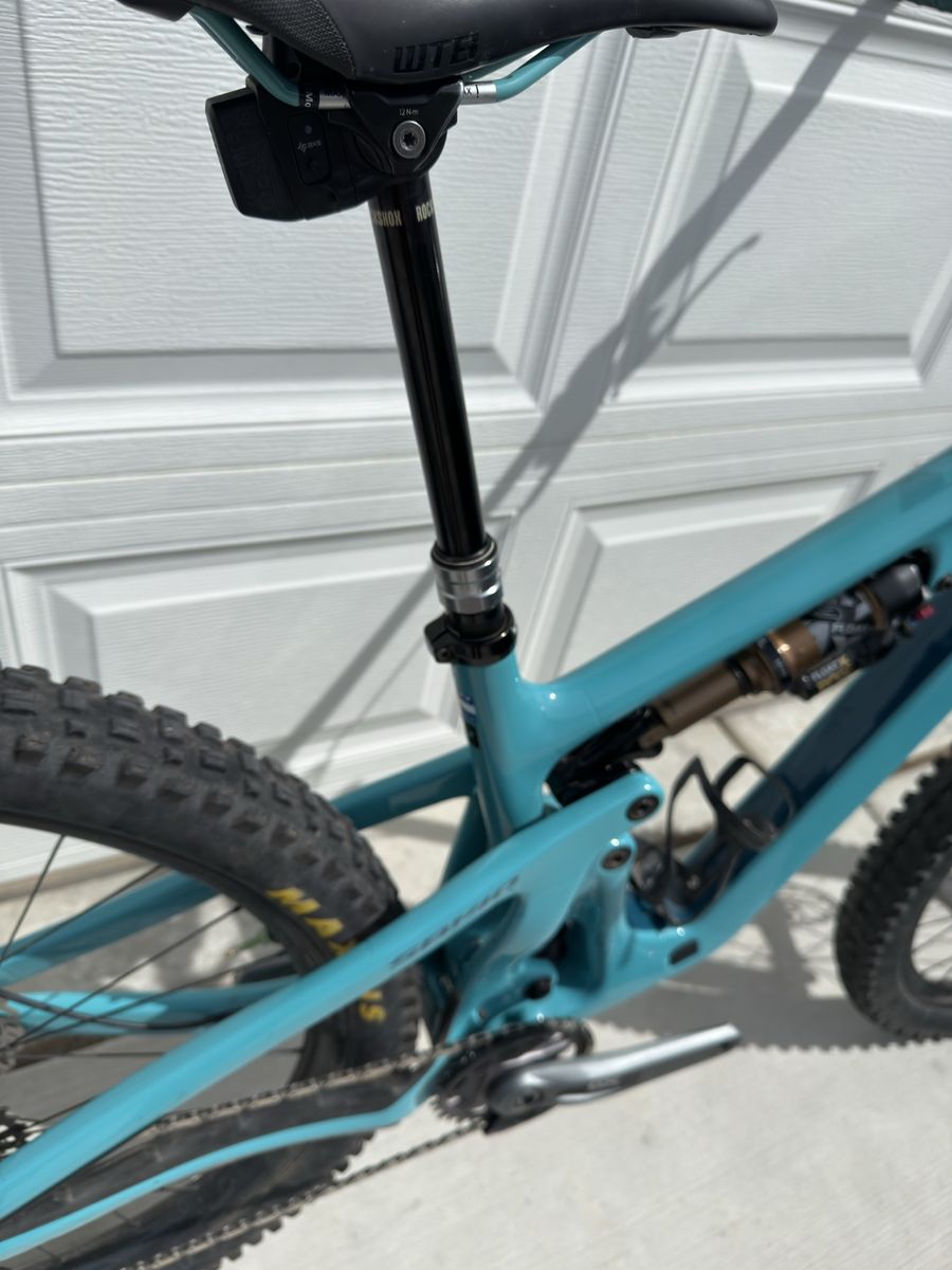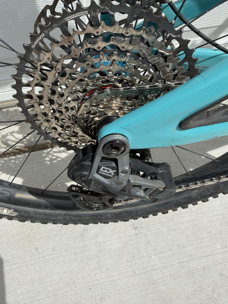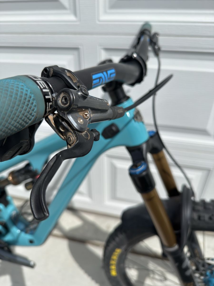 VenmoTurq Carbon size Medium Raceface Arc 36 Carbon rims industry 9 hubs XTR four-piston brakes 203mm rotors Maxxis tires Fox Float X shock Fox 36 Grip2 Reverb AXS wireless dropper Eagle GX AXS Wireless drivetrain Enve M7 carbon bar Race face turbine stem Diety Mega Paw grips
