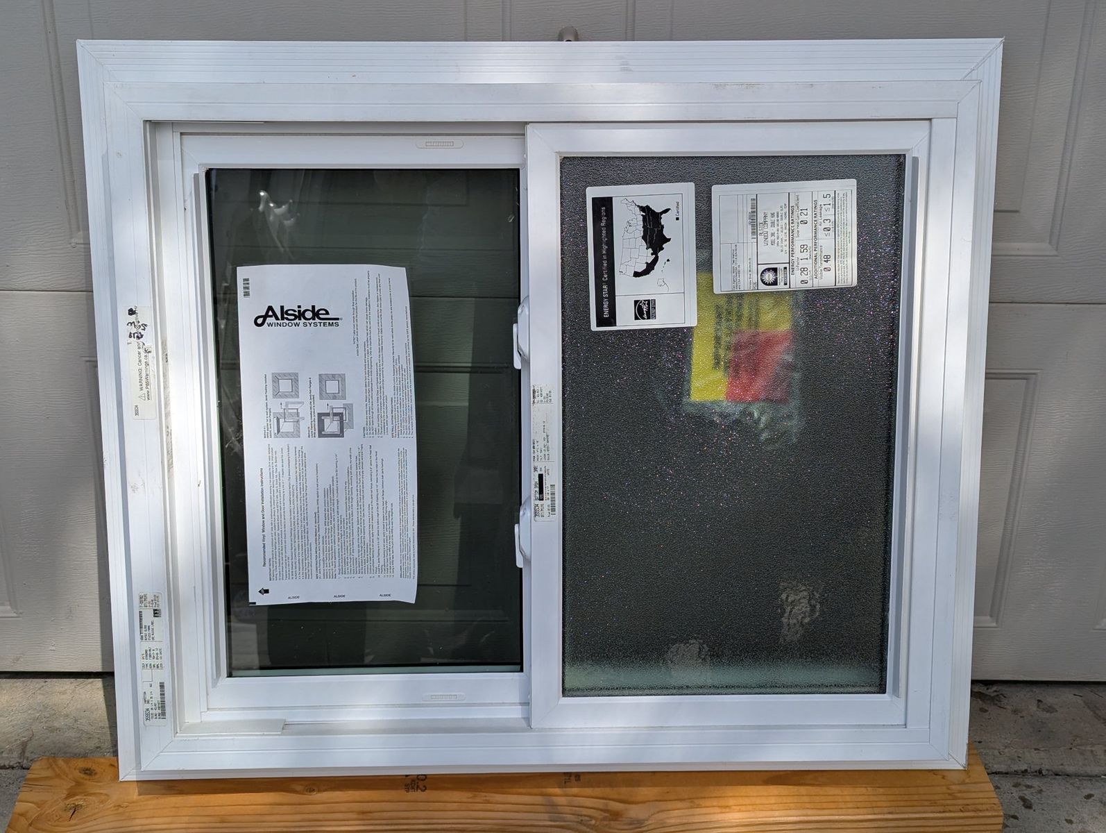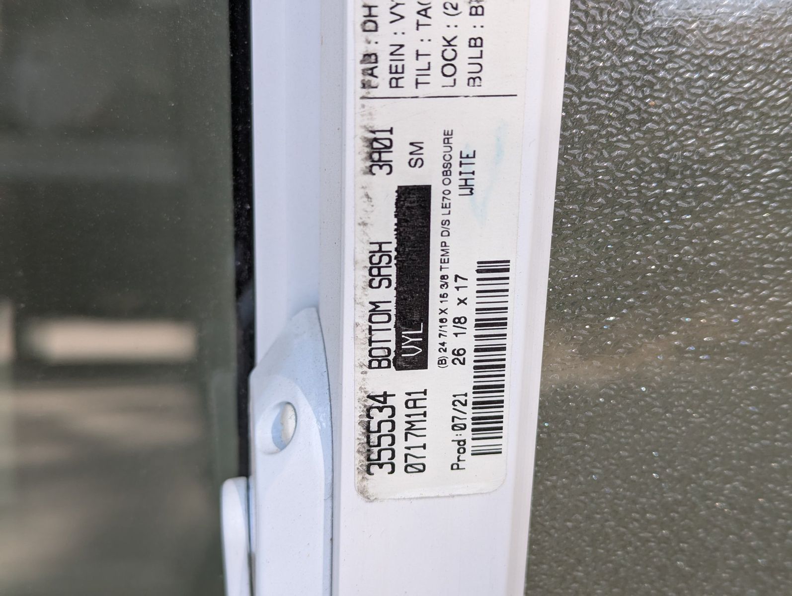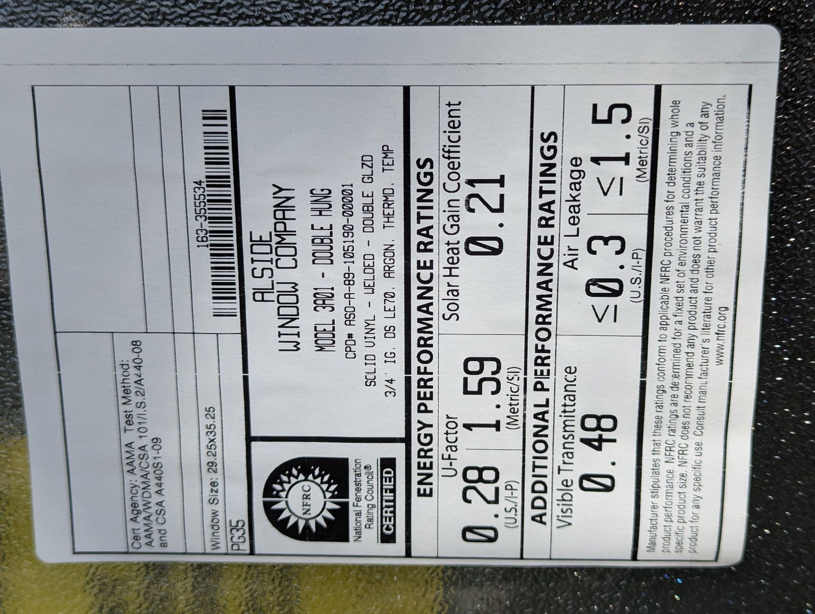 GooglePayThis Alside double hung window features a white vinyl finish and was manufactured in July 2021. It is identified as model 3A01. The unit includes original installation instructions and NFRC energy performance labels.