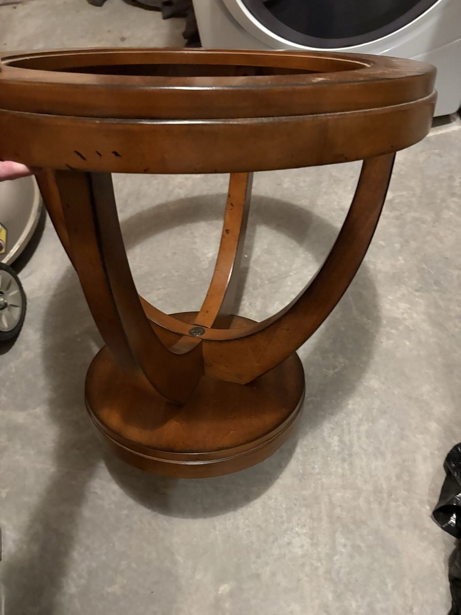 Venmo2 Round Wood and glass end tables 2’2”W x 2’T excellent shape, $100 ea or $175 set