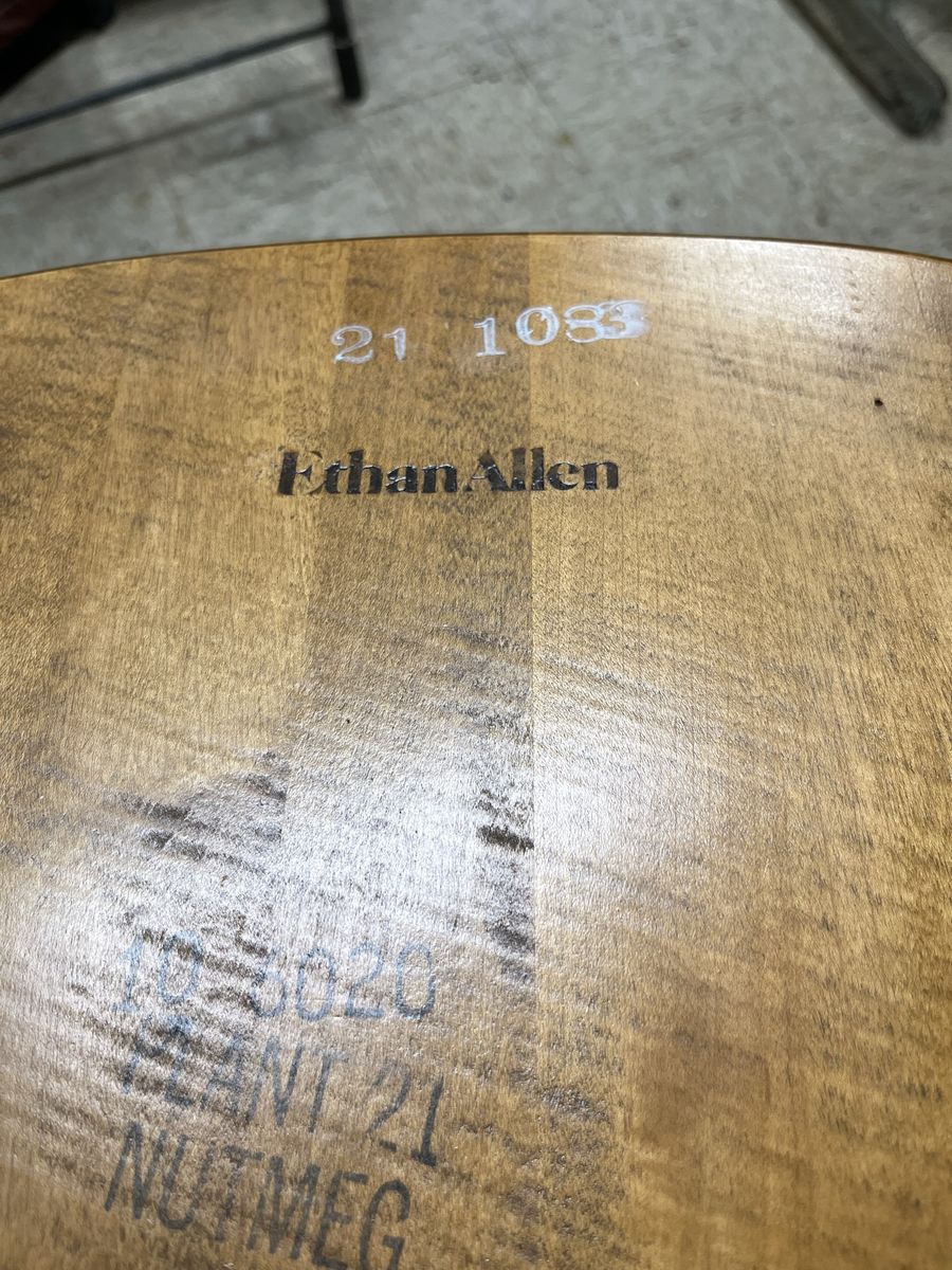 Beautiful Ethan Allen furniture table six chairs two leaves and corner hutch