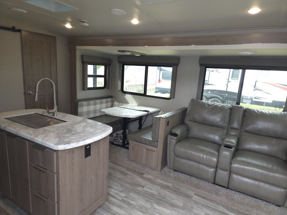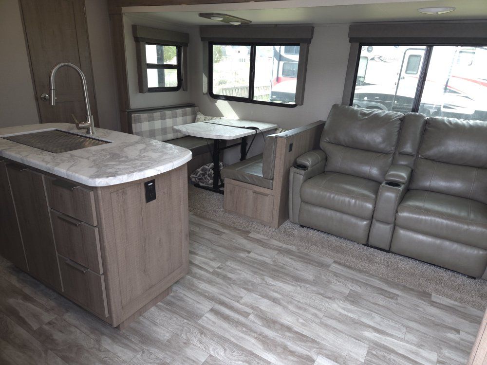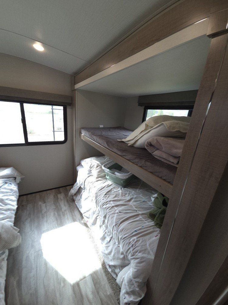 Great Trailer with alot of comfortable space for Family & Friends~ This bunkhouse travel trailer features a private master bedroom, a rear bunkhouse with four bunks, and a convertible sofa and dinette to maximize sleeping capacity. Xtra's m~Island sink,heated vibrating seats, fireplace, Blu-ray DVD, Roku tv, 2 entrance's(M Bedroom/ bathroom+Mainroom)Exterior stove nook w/cabinets & Fridge. Kids have grown so we're downsizing to smaller Trailer. Definitely another Grand Design!! Well kept and ready for a New Family and New Adventures!!! If you want space for Family & Friends, come see as pictures don't do justice