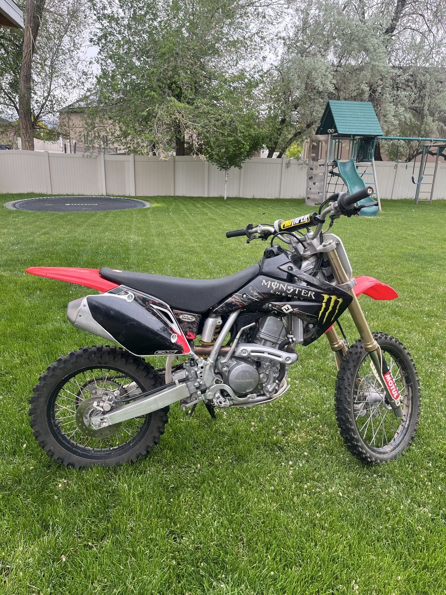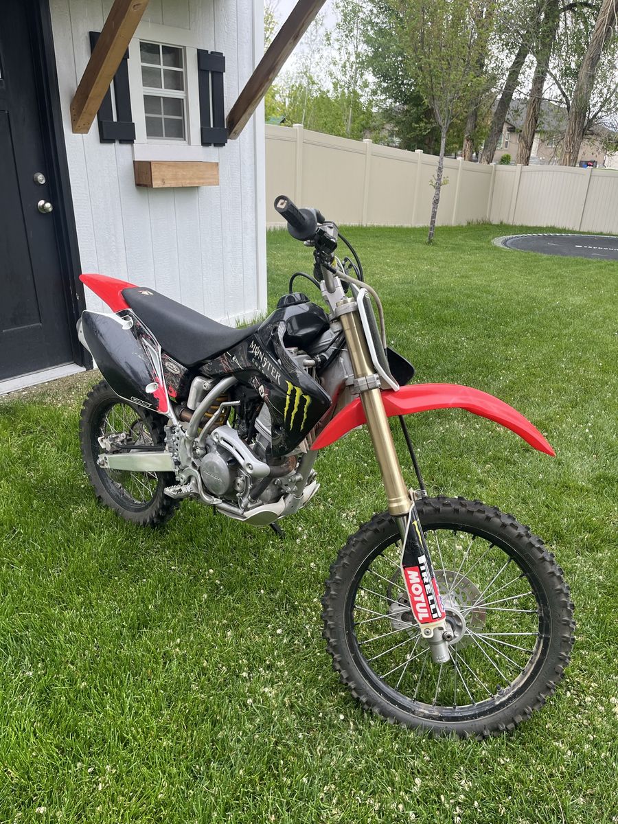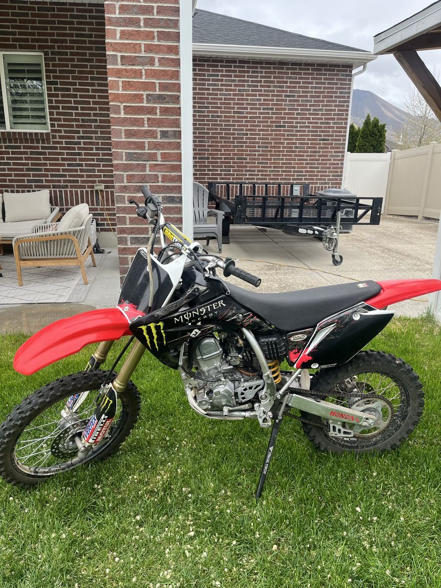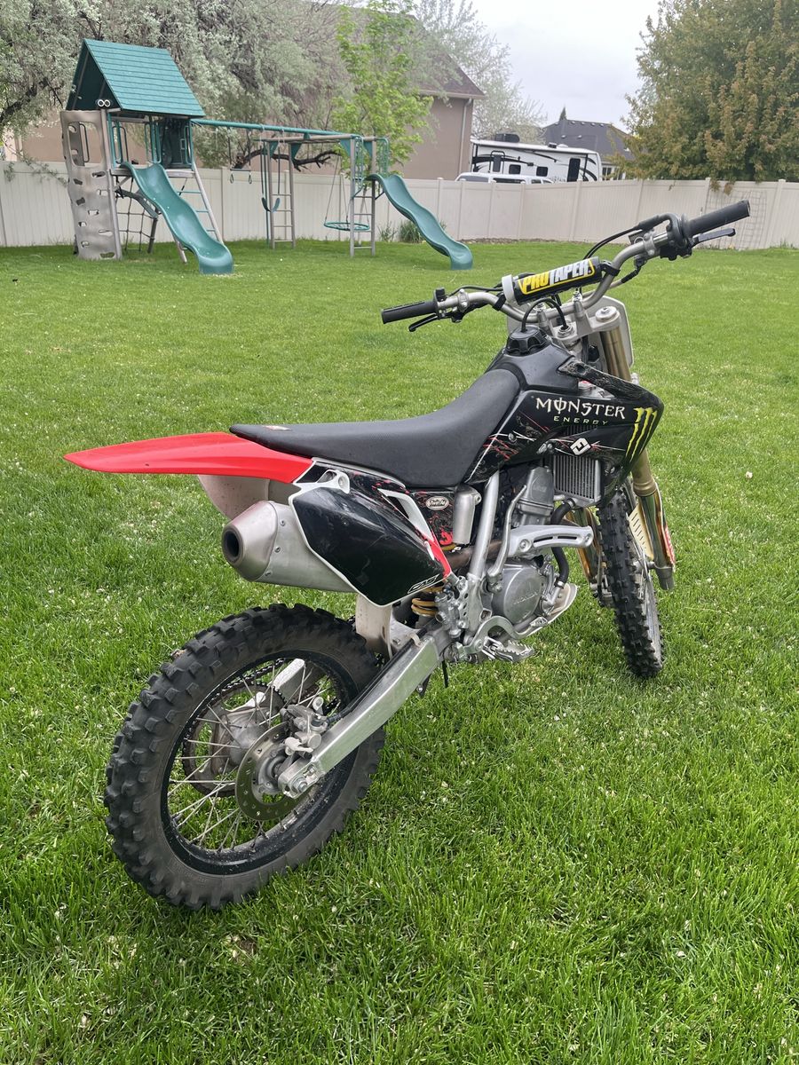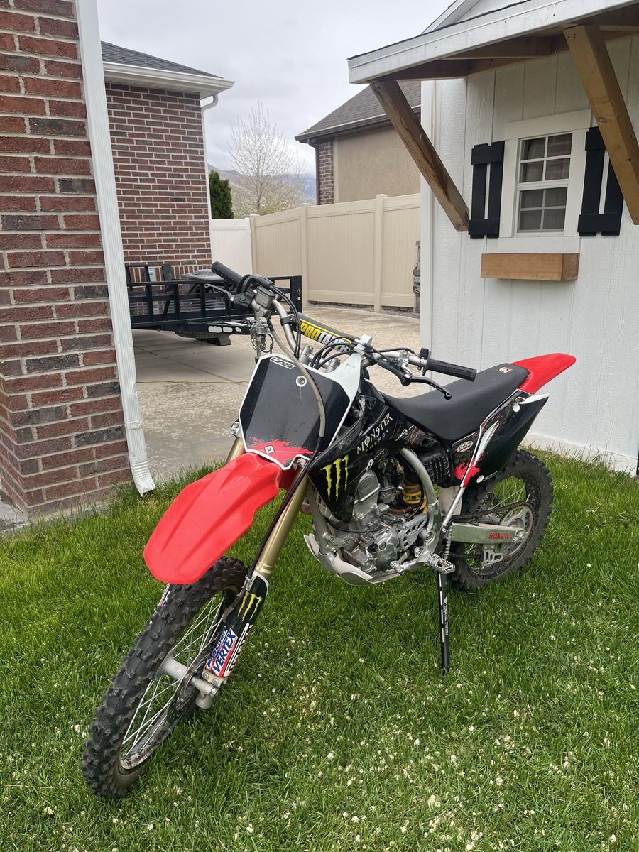 This bike is in good condition. Carb and suspension have both recently been professionally rebuilt this year. It has had little use and never been raced and just ridden easy on trails. A nice kickstand has been added for convenience and easy parking. It has new breakaway clutch and front brake levers. This bike has had a heavier flywheel installed to make trail riding more manageable and for easier starting and less stalling. This could be removed easily if desired to hop the bike up a little more for racing or more aggressive riding. This 150 R has a ton of power and really goes. Clean title in hand. Come give it a try. Call or text with any questions. Thanks for looking and have a great day!
