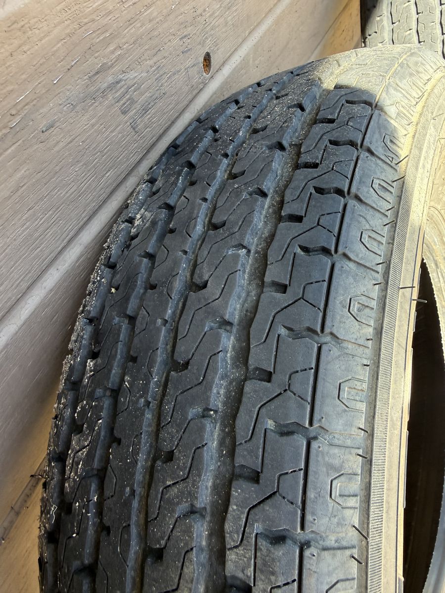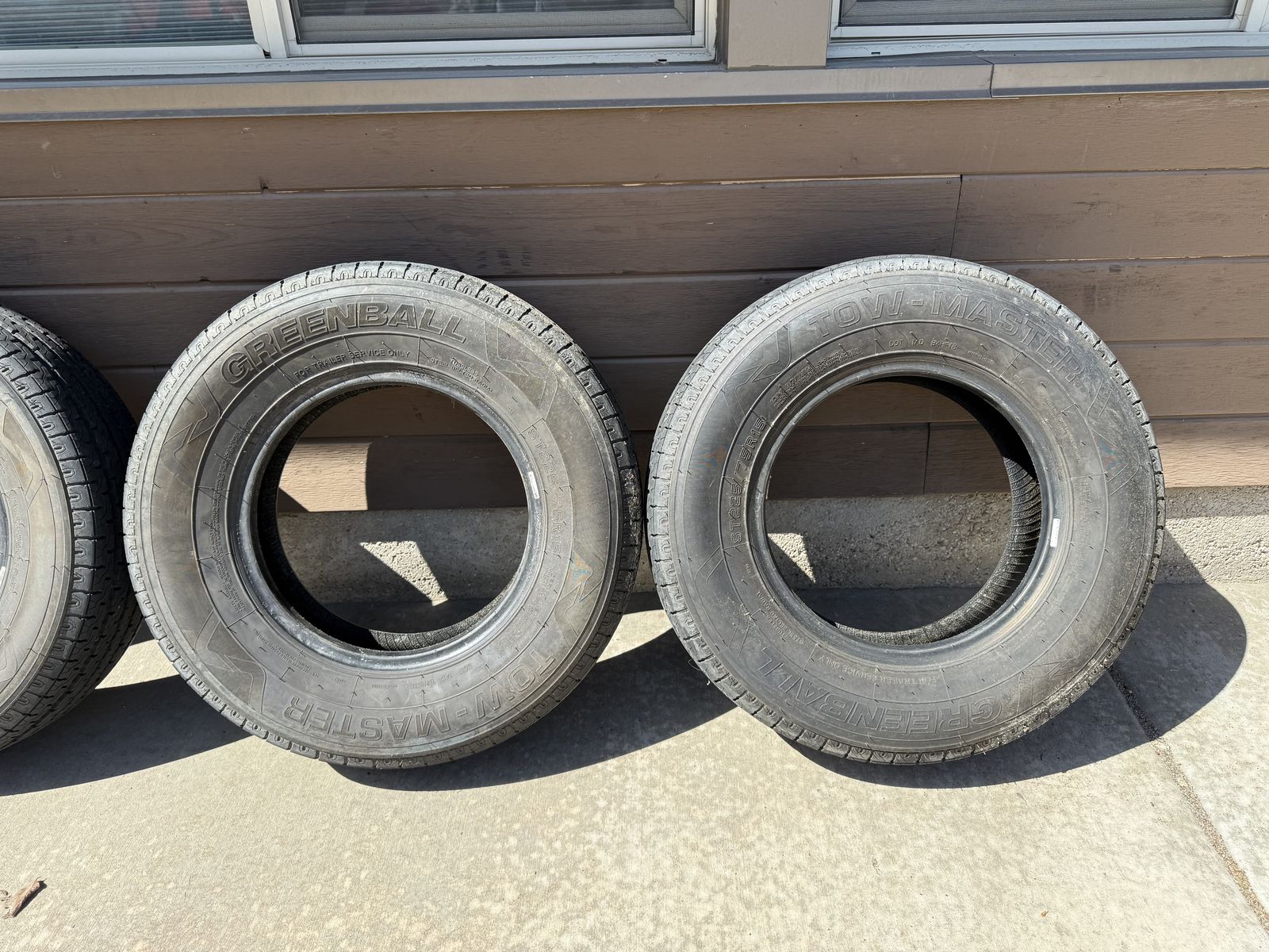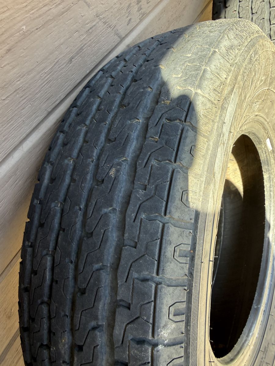 Used set of 4 Greenball Towmaster trailer tires, load range E.