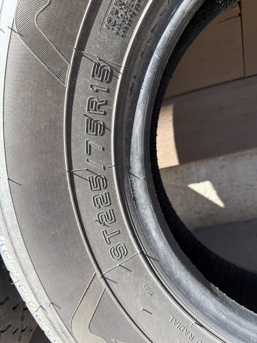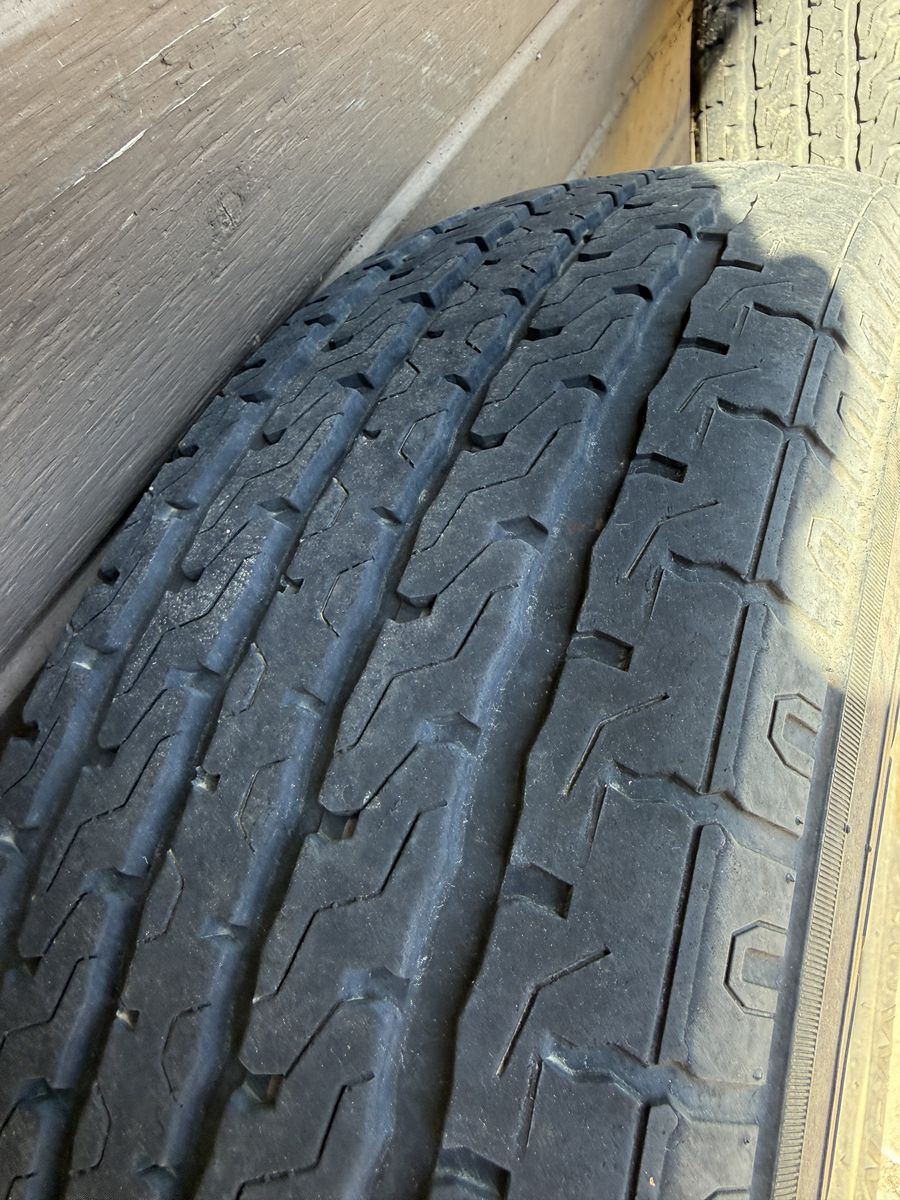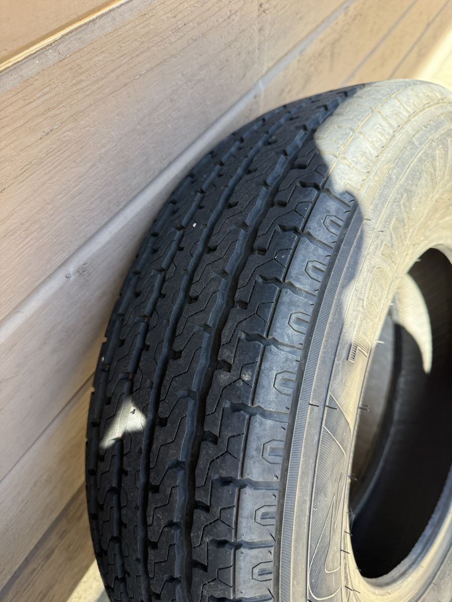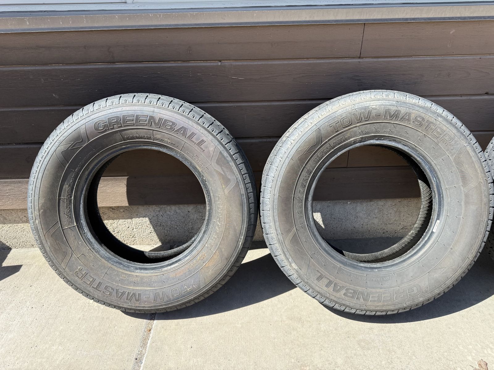Used set of 4 Greenball Towmaster trailer tires, load range E.