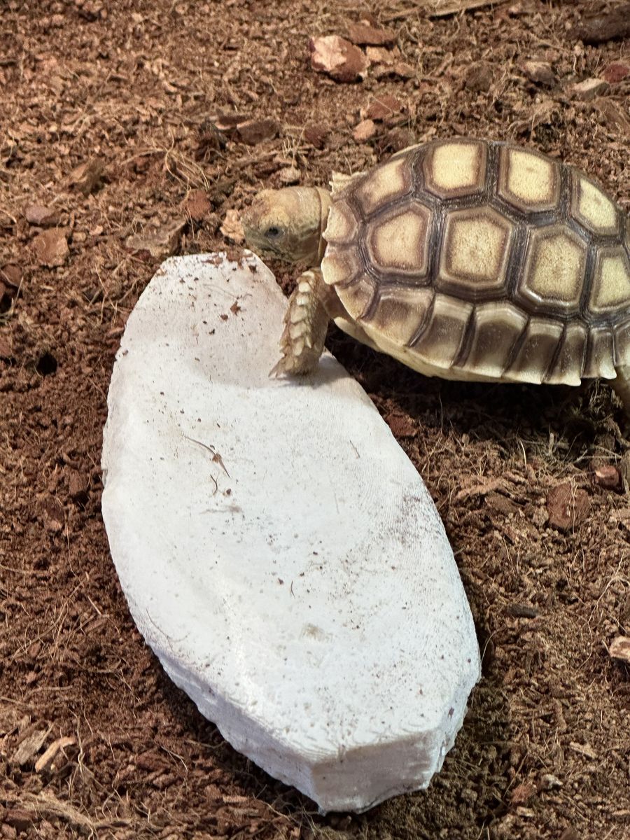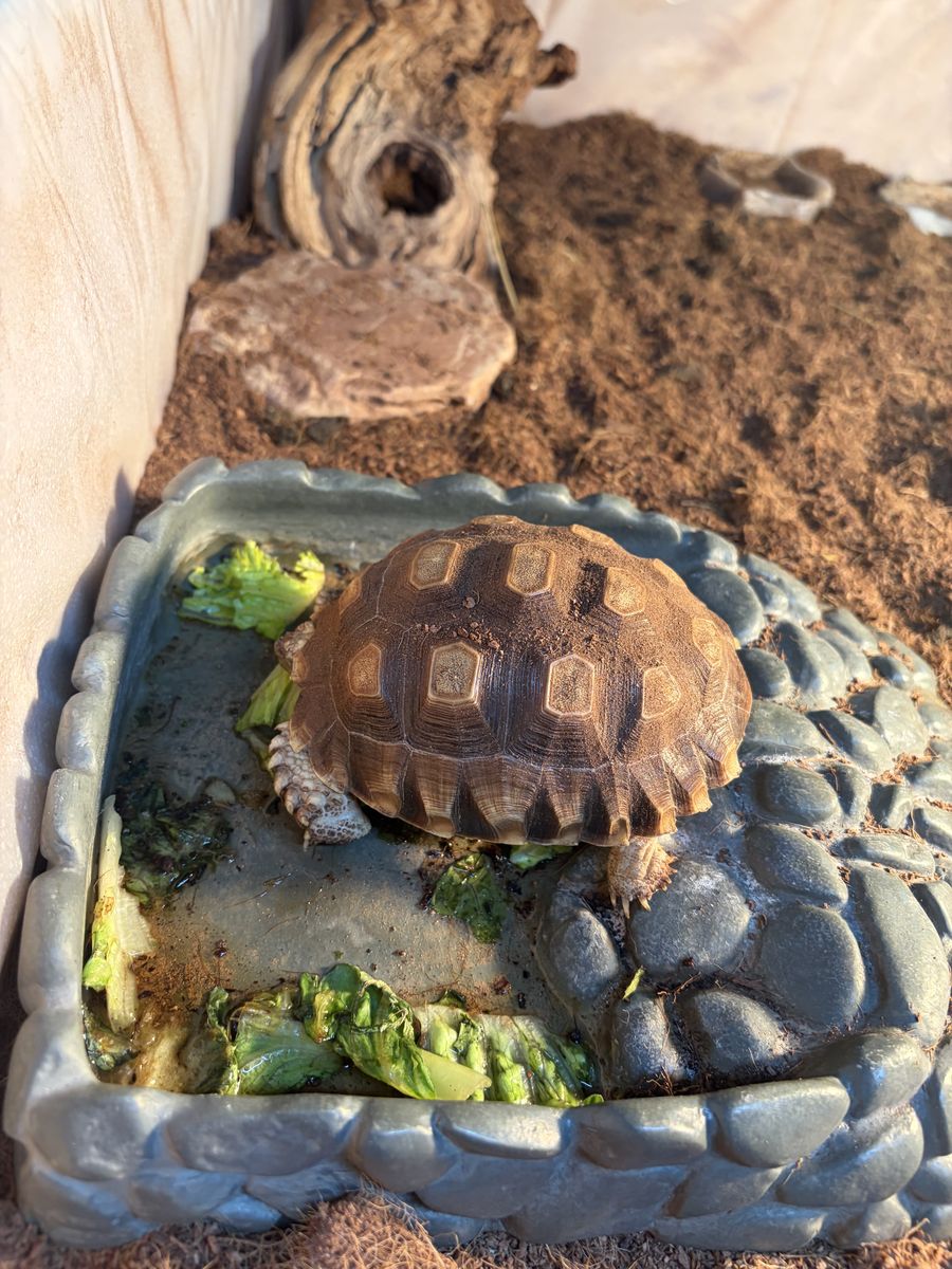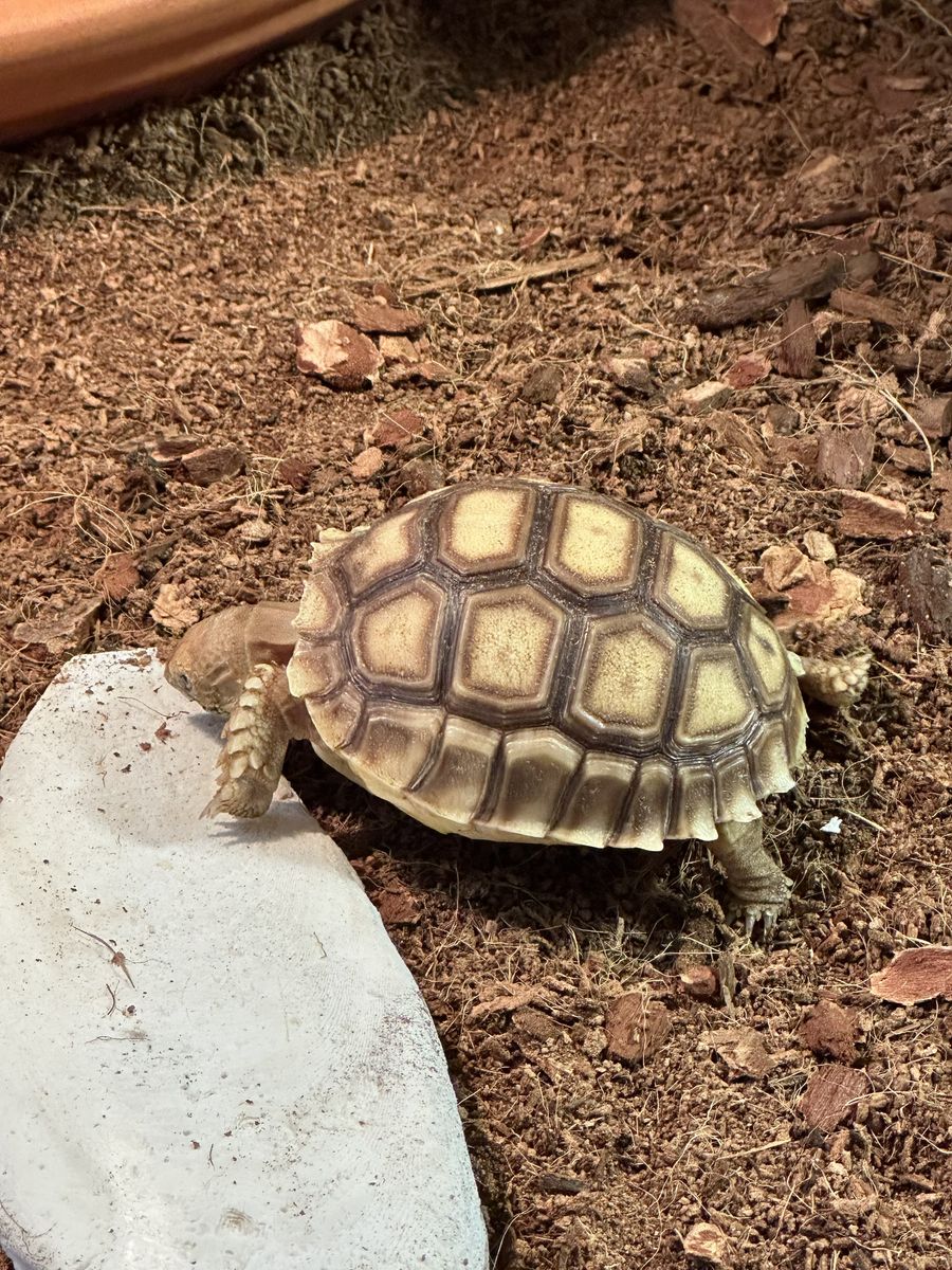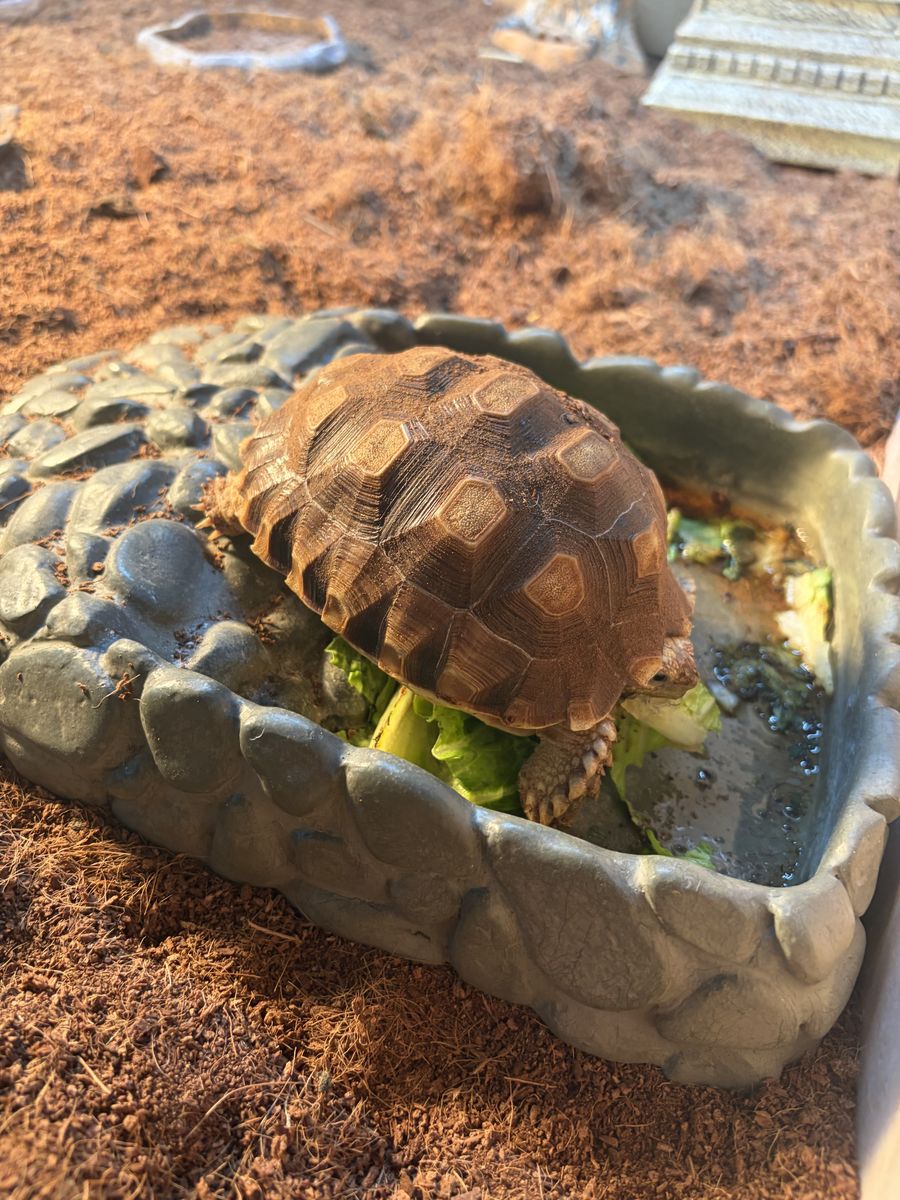 Selling my sulcata tortoise he is around 2 years old comes with basking lamp and UV lamp. 250$ text 8017023233