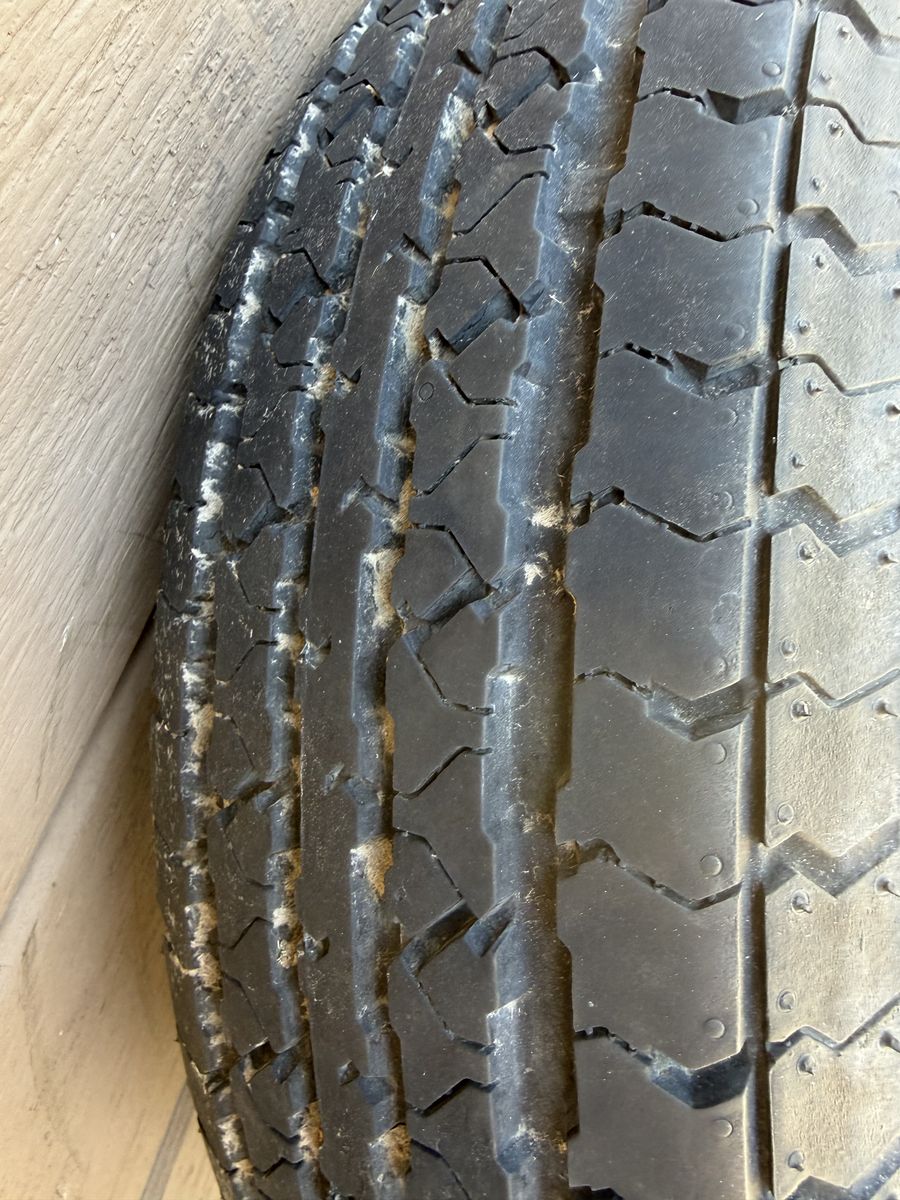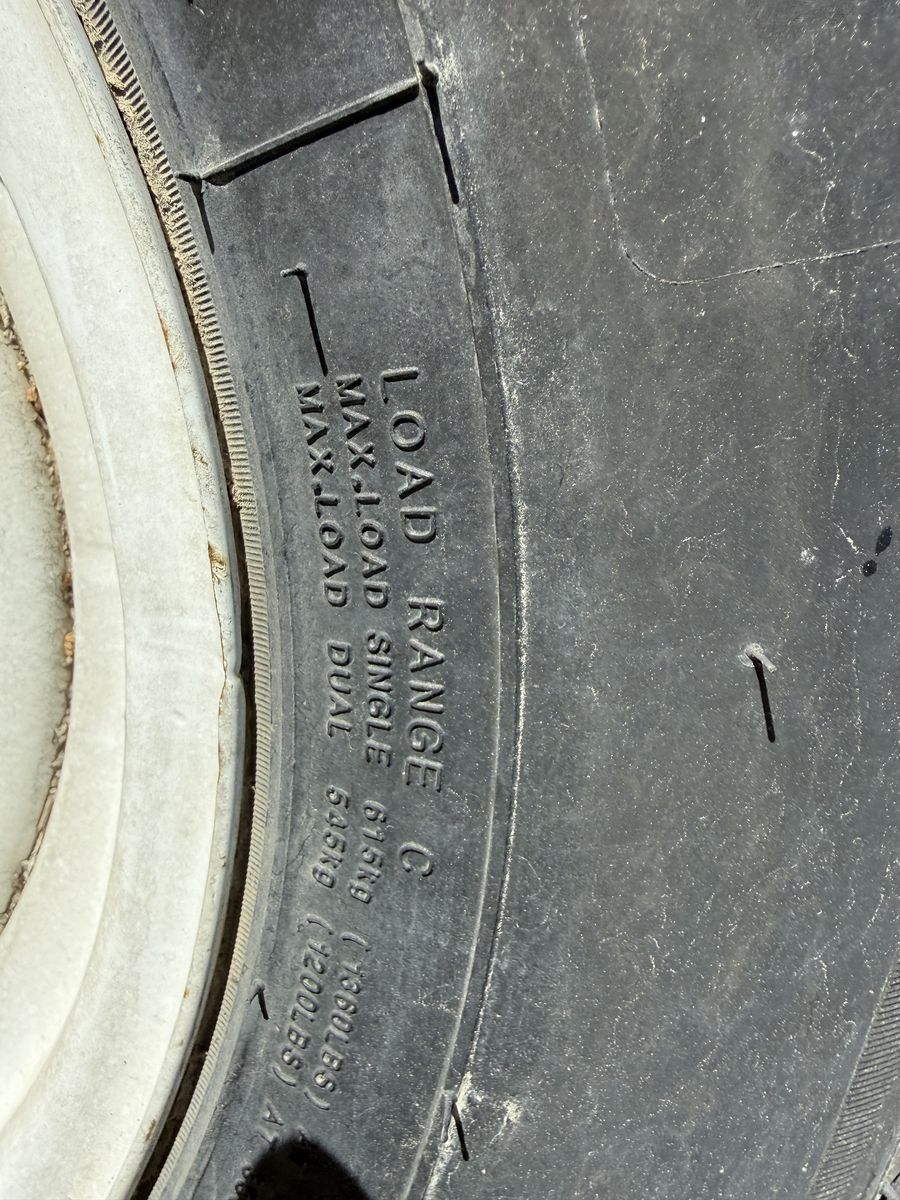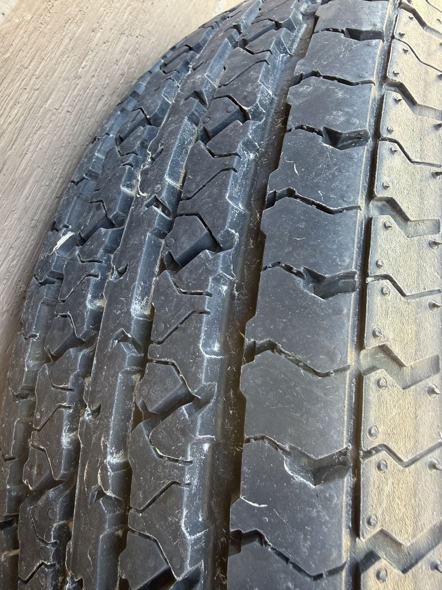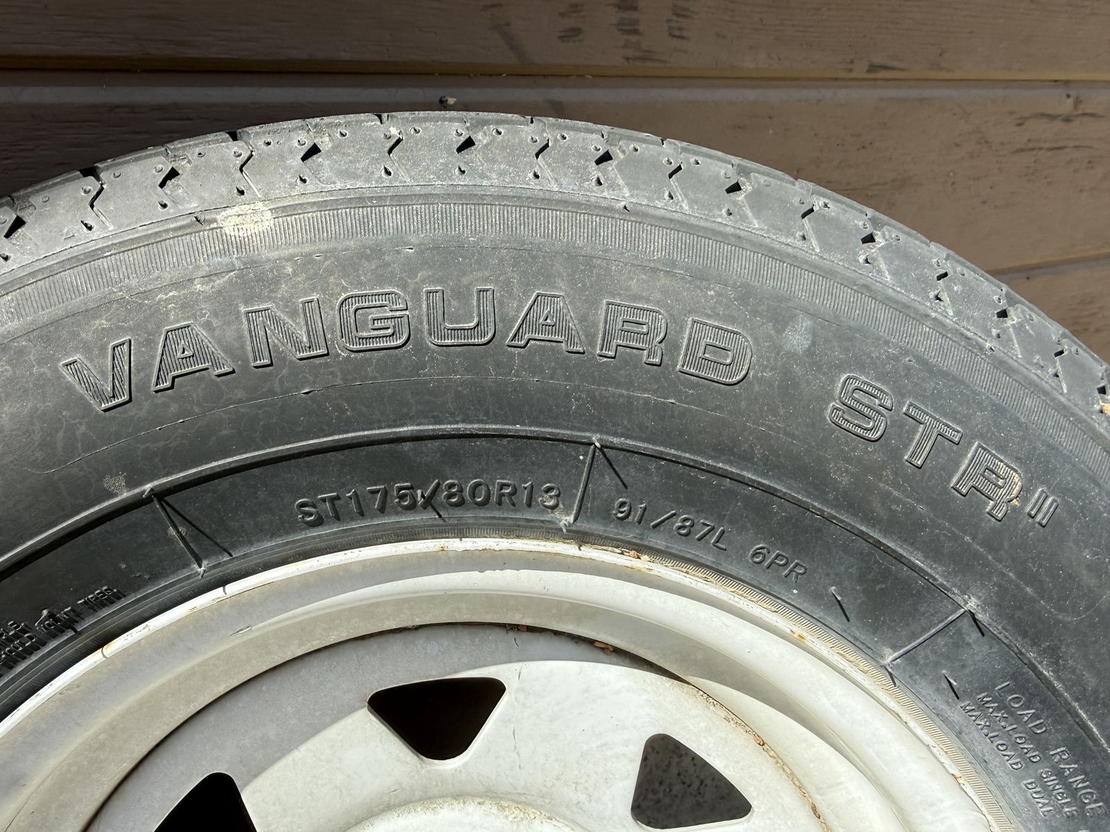 Used set of 2 Vanguard Power King Premium trailer tires and 5 x 4.5 lug rims, load range C.