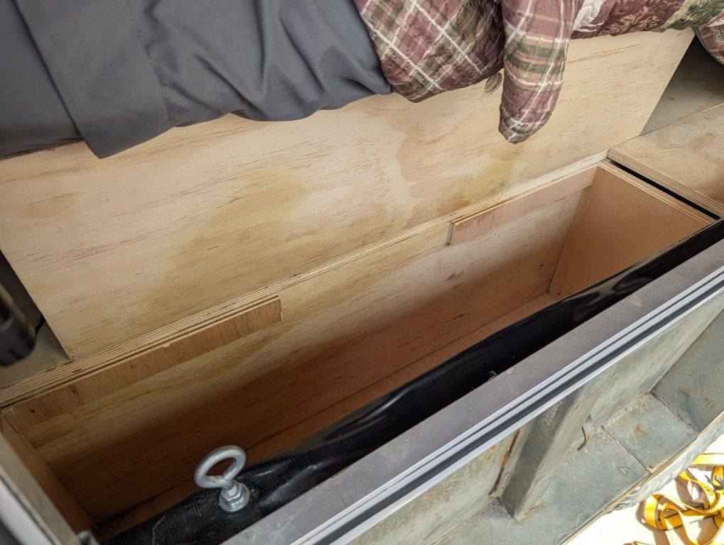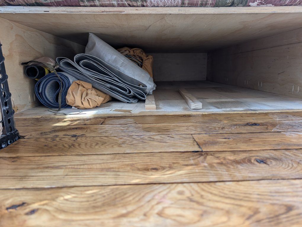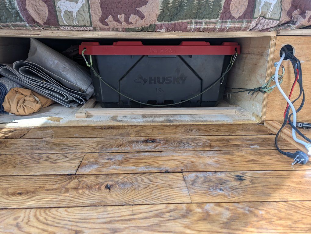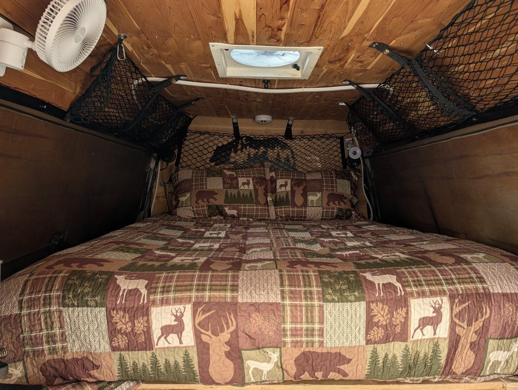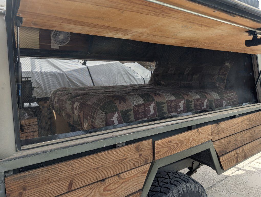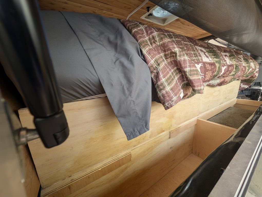 Storage: Innovative under-bed system with three sliding bins and deep side channel for long items (fishing poles, ground tents, etc.). Overhead netting for gear, clothing, and sleep items.