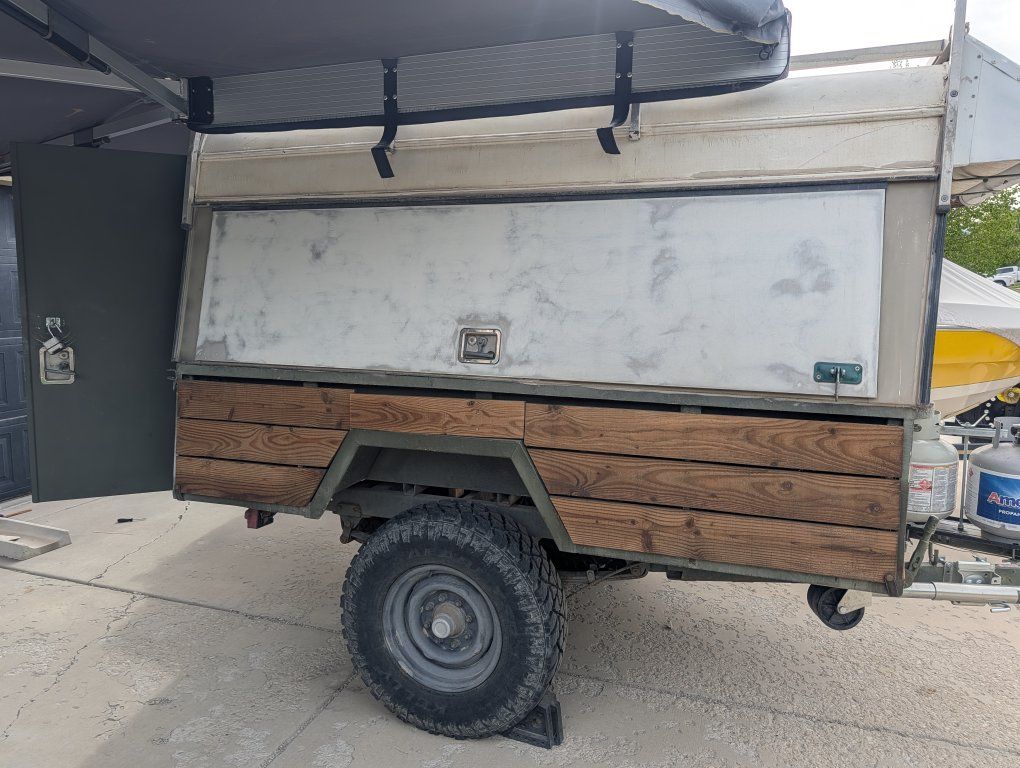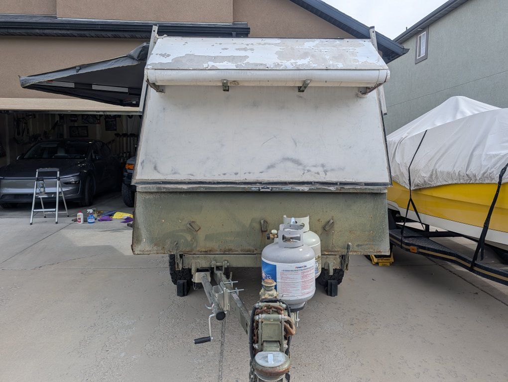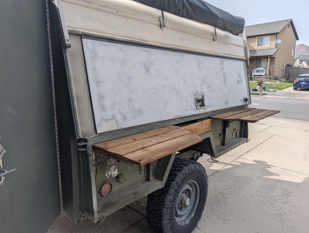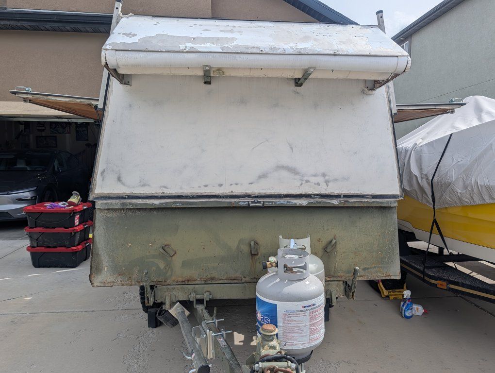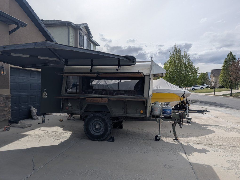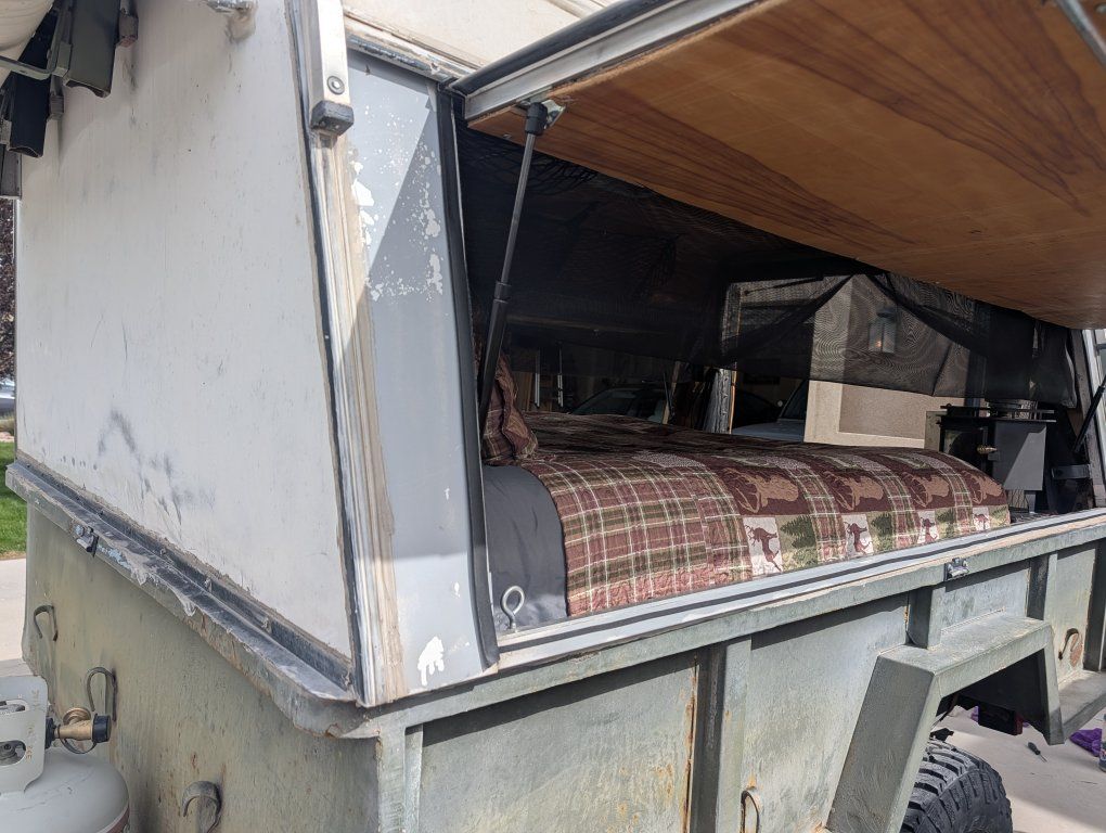 Details: The trailer has a clean title in hand. It features dual propane mounts and a heavy-duty jack with a custom drill attachment for rapid leveling. It is structurally sound and dry. The exterior is a bit ugly but ready for a fresh coat of paint; I can provide the specific military green spray paint color used on the rear doors if you want to finish the look.