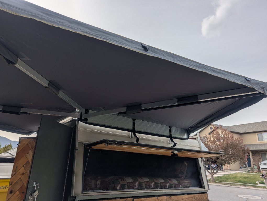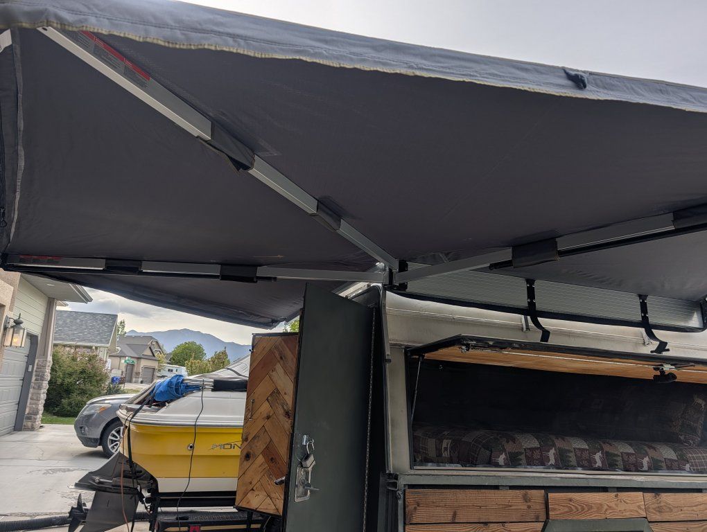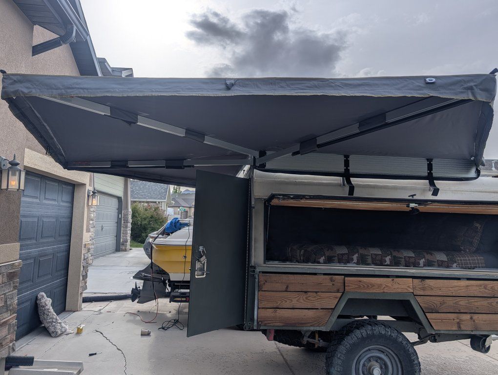 Exterior: Aluminum roof rack featuring an Overland Vehicle Systems 270-degree awning.