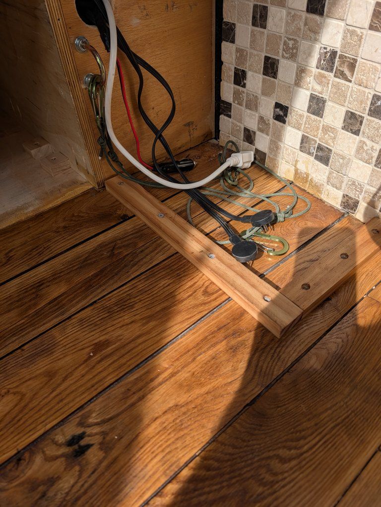 Sleeping: New, high-comfort Camping Queen mattress. Interior is pre-wired for a Jackery/Anker setup with LEDs and phone chargers on both sides.