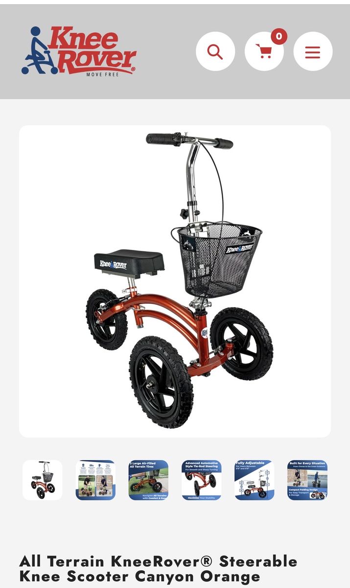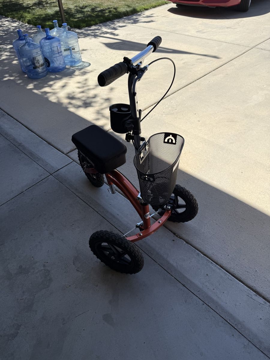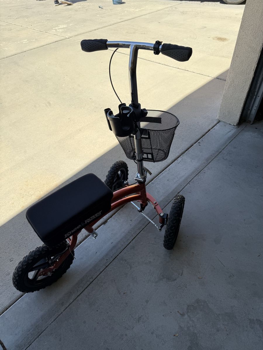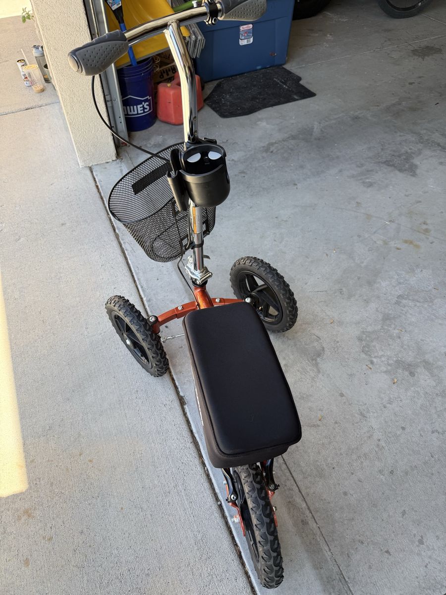 An alternative to crutches while you recover from a lower leg injury or surgery. I used this after Achilles Tendon Surgery, and it was life-changing. It's in my favorite color, orange and is the “off-road” model. It's practically new and has the gel knee pad. It's got the basket from Knee Rover plus a super cool drink and cell phone holder. Cash only please. Call or text. Thanks for looking.