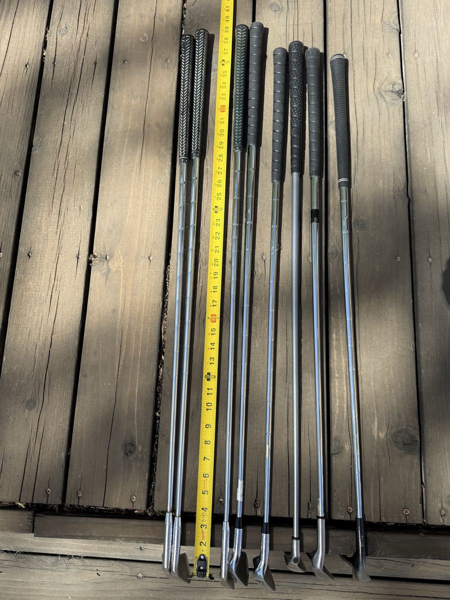 $50 irons golf clubs, all included in pictures. Clubs are 3, 4, 5, 7, 9, pitching wedge 52, wedge 56.