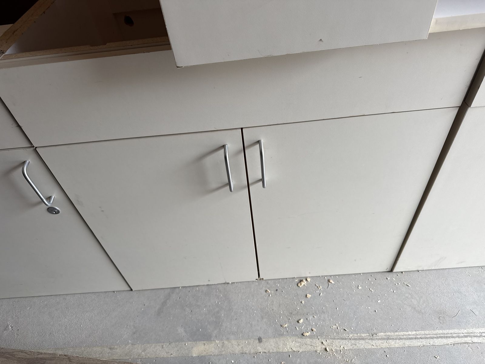 ZelleWhile melamine cabinets for sale. Perfect for shed or garage. $10 each!