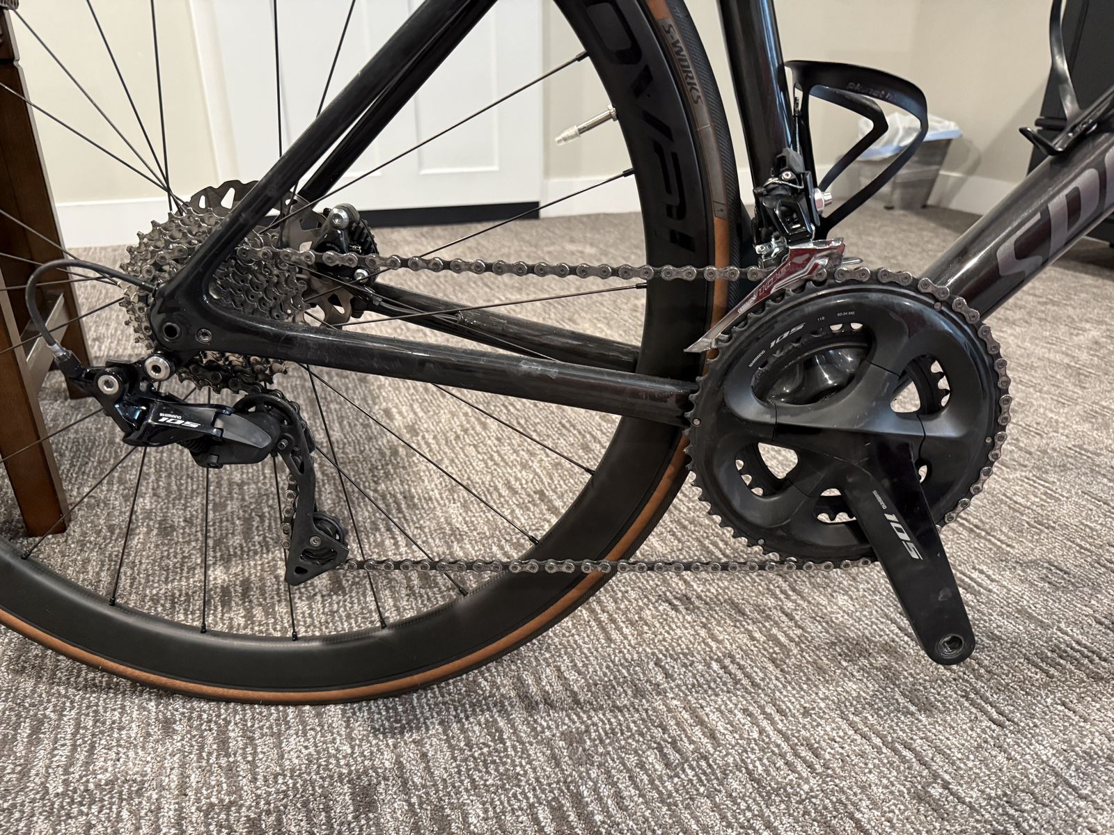 VenmoExcellent condition most of its life on a trainer. Beautiful 9r Carbon Frame Brand new never ridden Roval C38 Carbon Wheels with DT Swiss 370 Ratchet hubs Brand new S-Works 28mm Tires Shimano 105 W/Disc Brakes Included: Water bottle cages 105 pedals Additional Cassette