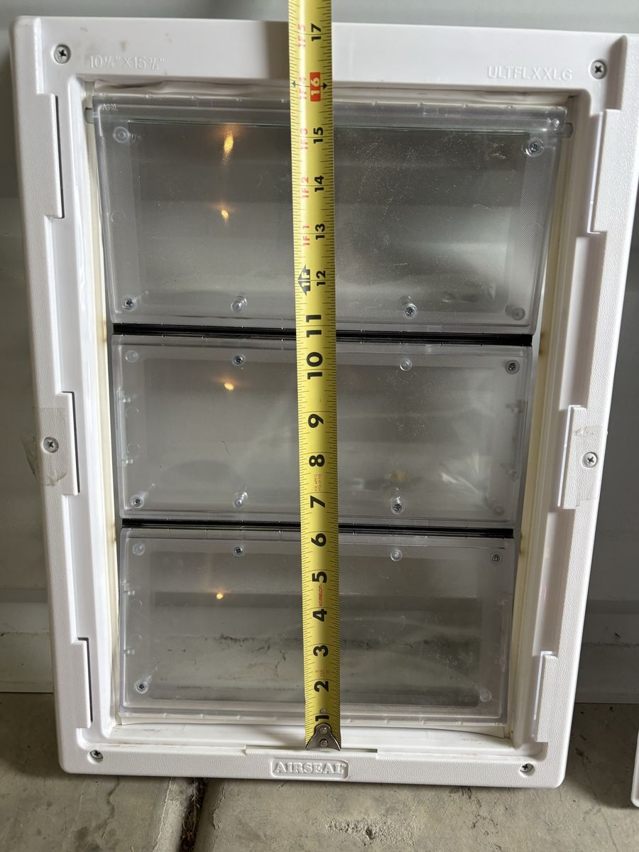 Venmo$25 dog door I believe it sells for $82 on Amazon right now. See pictures for measurements on size. Also see pictures for screenshot of Amazon listing. Still in good shape.