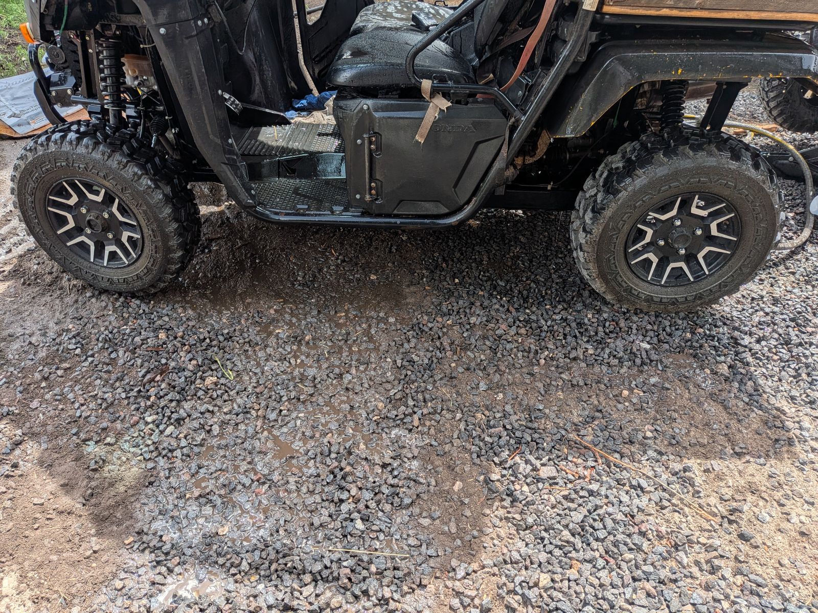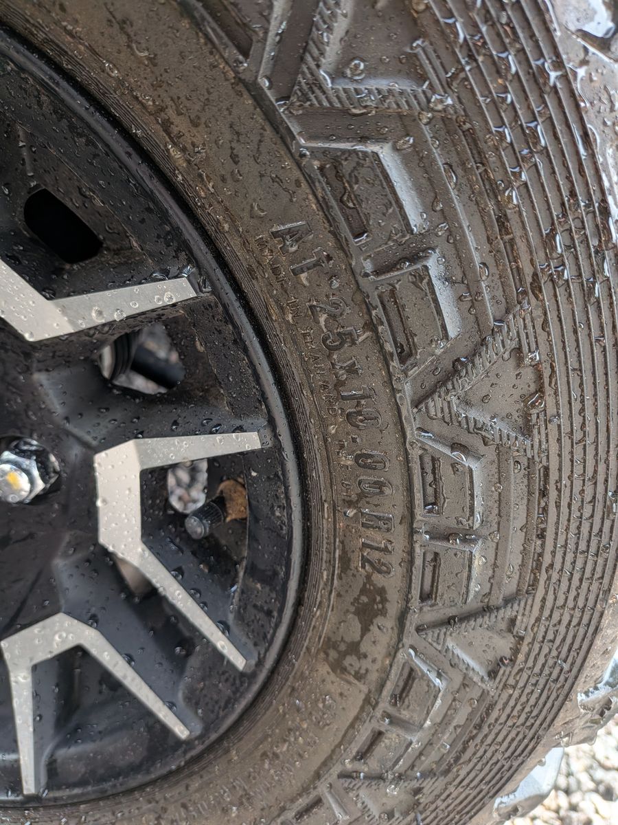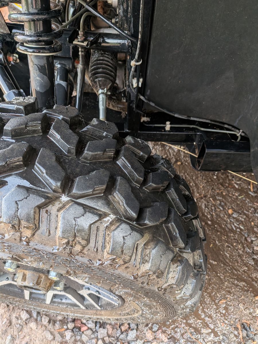 ZellePutting different wheels and tires on, selling these. Very few miles on these, almost new with 90% or more tread left. 4x110mm bolt pattern which fits: • Yamaha: Viking 700, Viking VI, Rhino 450/660/700, Wolverine 350/450/R-Spec (older). Note: 2019+ Yamaha YXZ uses 4x156 and newer Wolverines often use 4x156, check specific year. • Honda: Pioneer 500, Pioneer 520, Pioneer 700, and older Honda UTVs. Note: Pioneer 1000 and Talon use 4x137. • CFMOTO: Select legacy or utility models. • Hisun: Most utility UTV models. • Suzuki: KingQuad models (often used for UTV-style tasks). Tie size is front 25X8.00-12 and rear 25X10.00-12