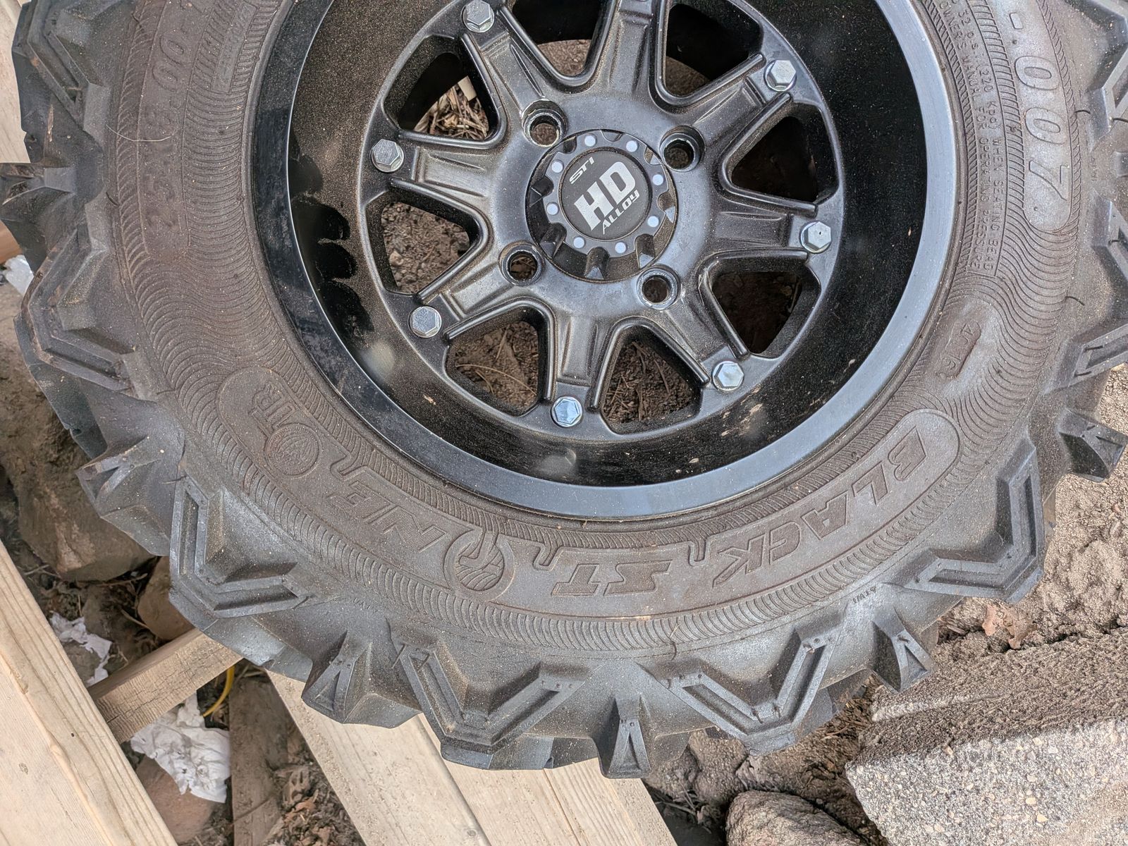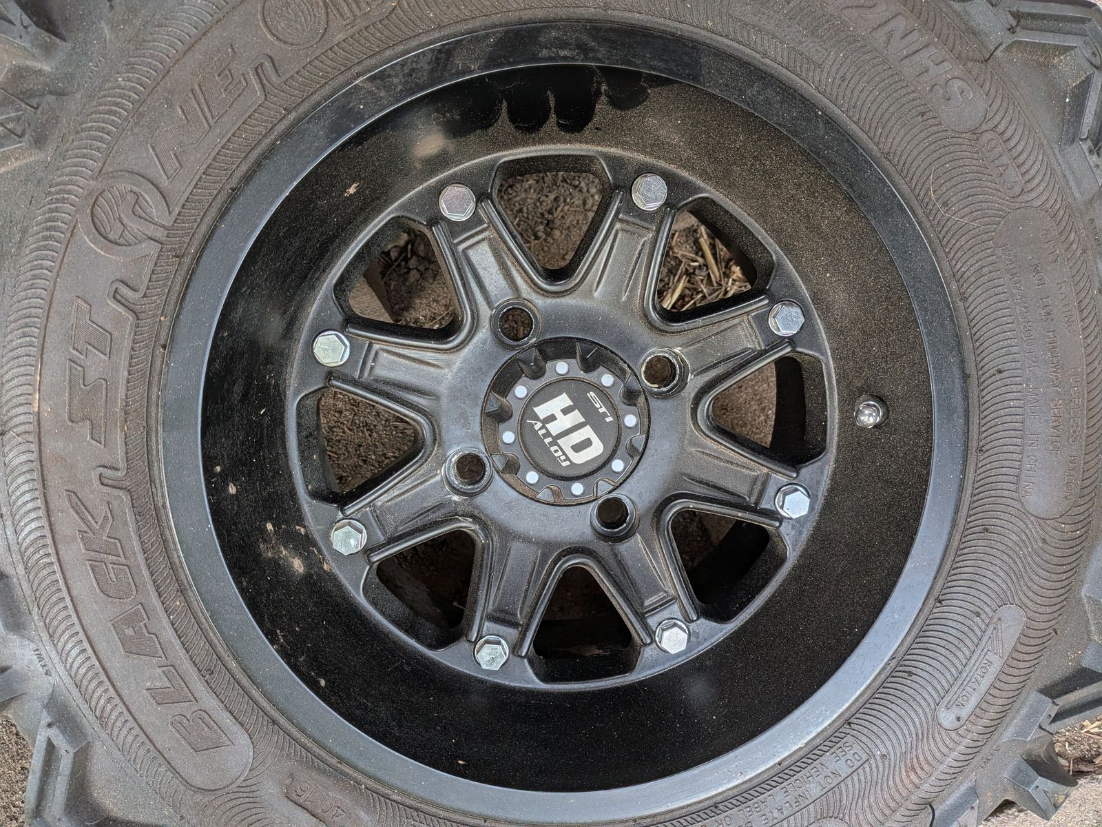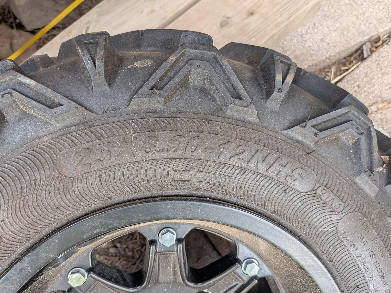 ZelleSold the SxS and don’t need this anymore. Tire is new, never mounted. 4x110mm bolt pattern which fits: • Yamaha: Viking 700, Viking VI, Rhino 450/660/700, Wolverine 350/450/R-Spec (older). Note: 2019+ Yamaha YXZ uses 4x156 and newer Wolverines often use 4x156, check specific year. • Honda: Pioneer 500, Pioneer 520, Pioneer 700, and older Honda UTVs. Note: Pioneer 1000 and Talon use 4x137. • CFMOTO: Select legacy or utility models. • Hisun: Most utility UTV models. • Suzuki: KingQuad models (often used for UTV-style tasks). Tie size is 25X8.00-12