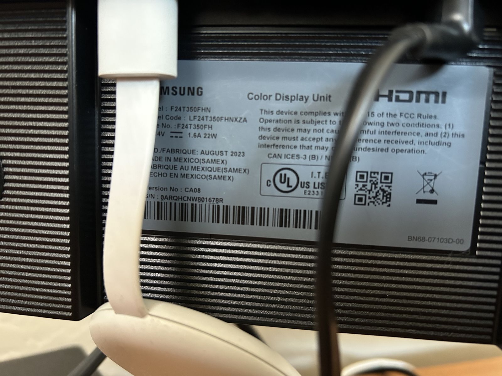 Like new. Seldom used. HDMI and VGA Inputs. Samsung F24T350FHN IPS LED 75 Hz Full HD 1080p. Includes HDMI and VGA cables.