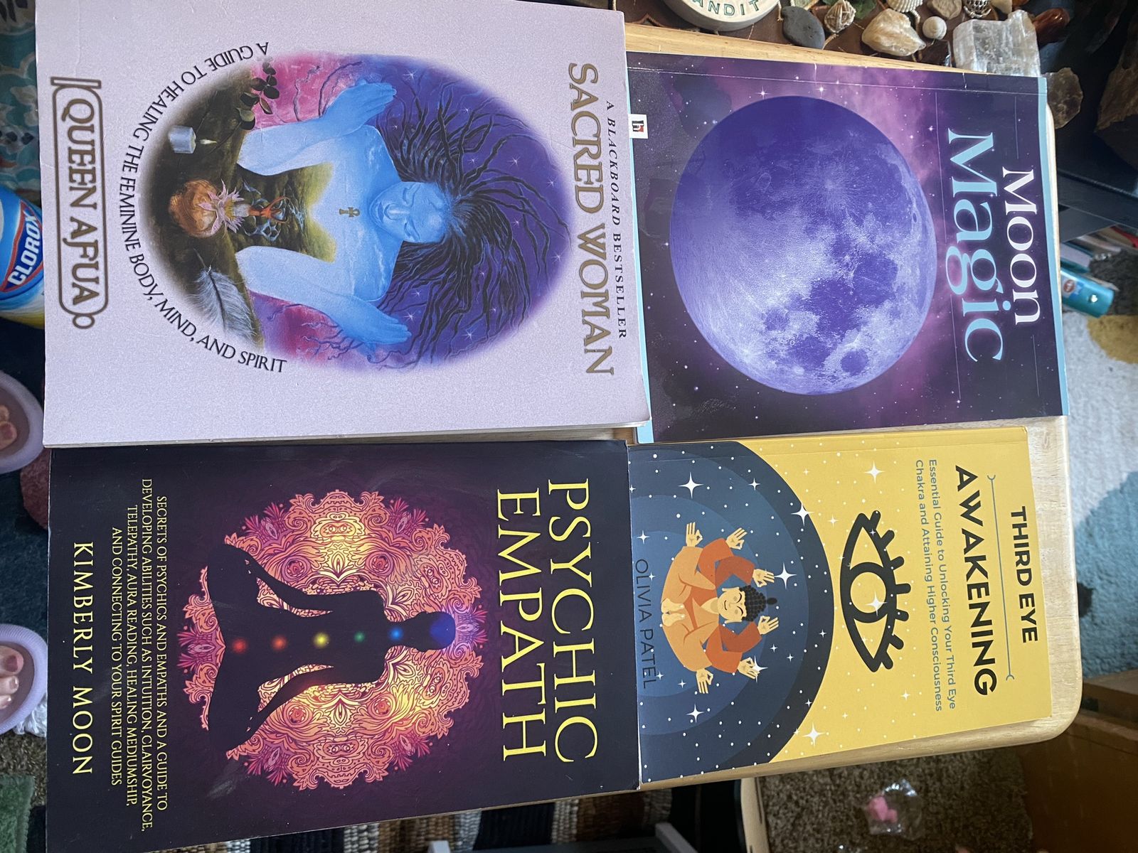 Chakra healing $5 Wicca crystal magic $5 Wicca candle magic $5 Crystals for beginners $5 Moon magic $2 Third eye awakening $3 Sacred woman $5 Psychic empath $5