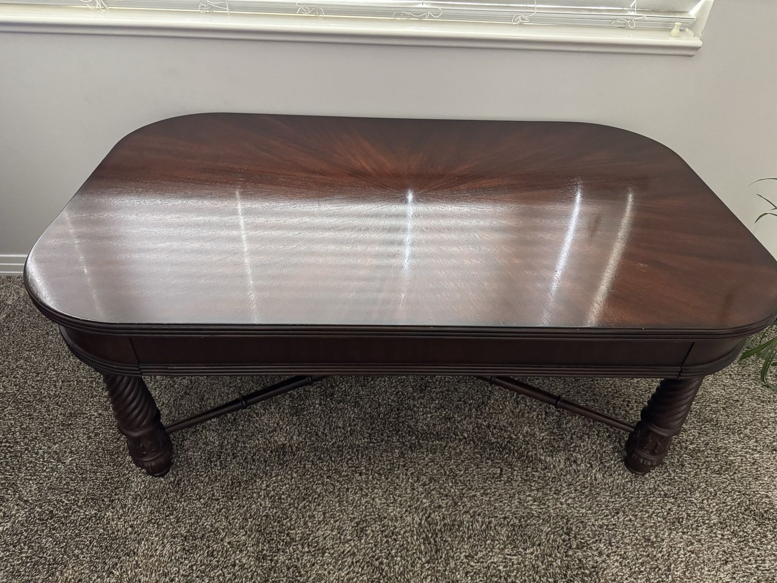 For sale. Beautiful broyhill table. Table is in good condition. Has some dings from my son, but very solid! Still looks very nice. This table was very expensive years ago and has served us well. Dings in pictures.