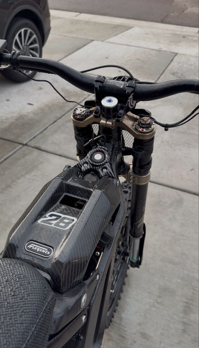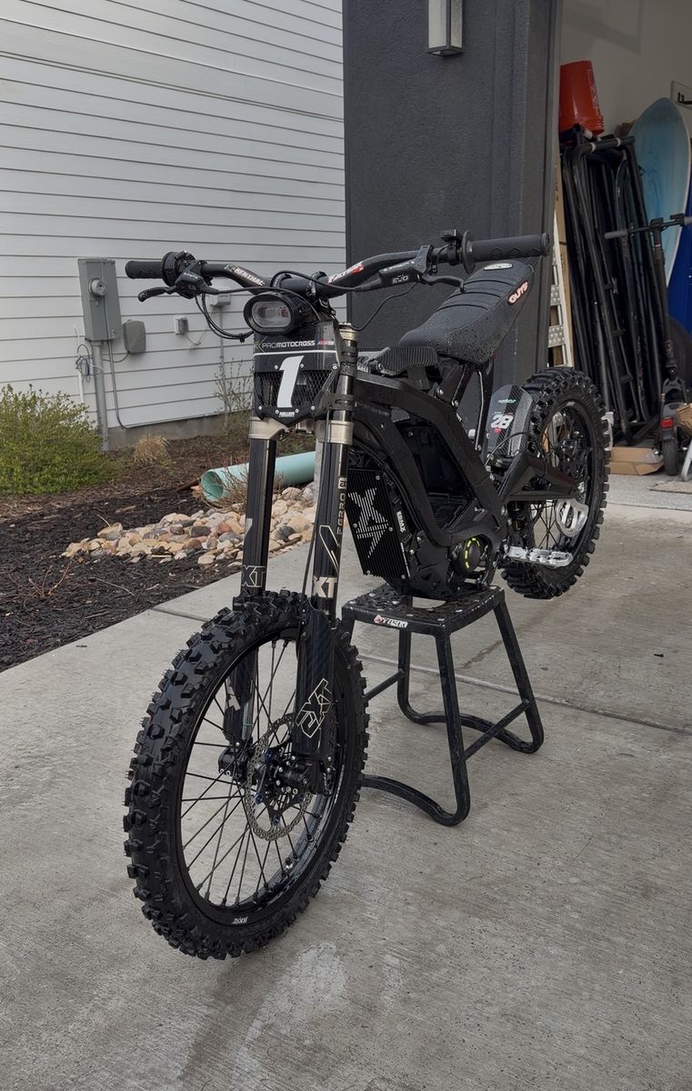 PayPalBuilt out surron under 300 miles EXT forks and shock EBMX controller Rental fat bars Prickly pegs and triangle KKE rims Guts seat Carbon plastics TRP brakes